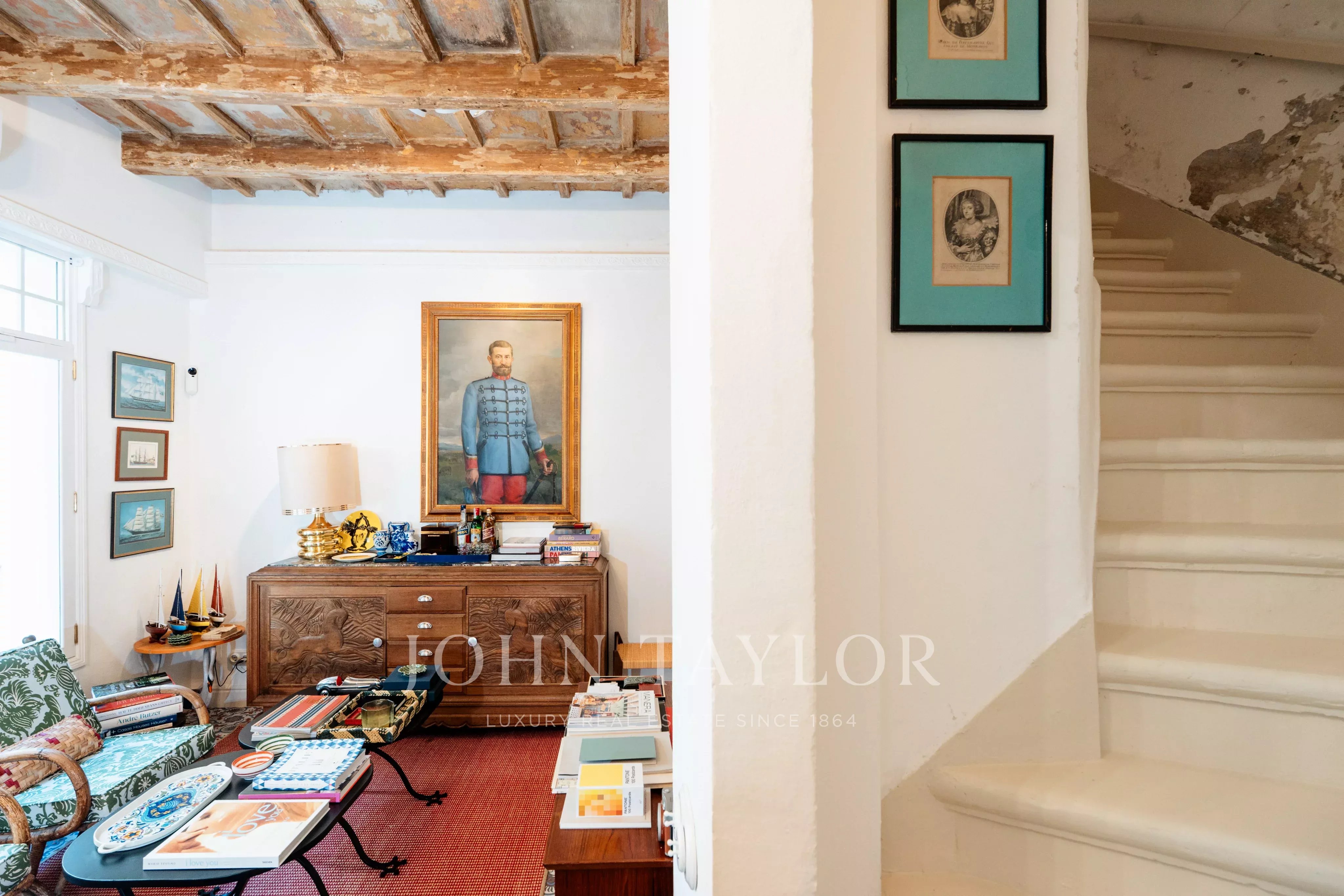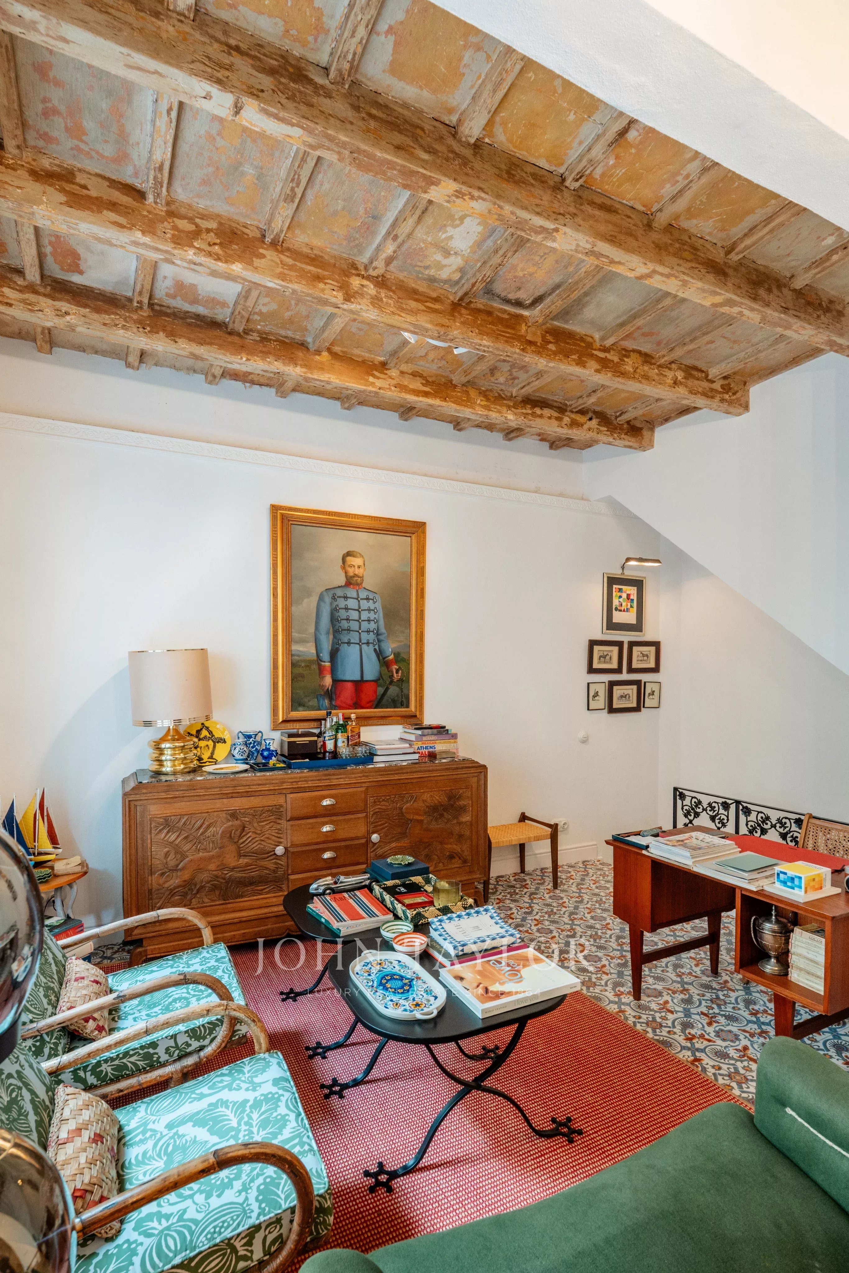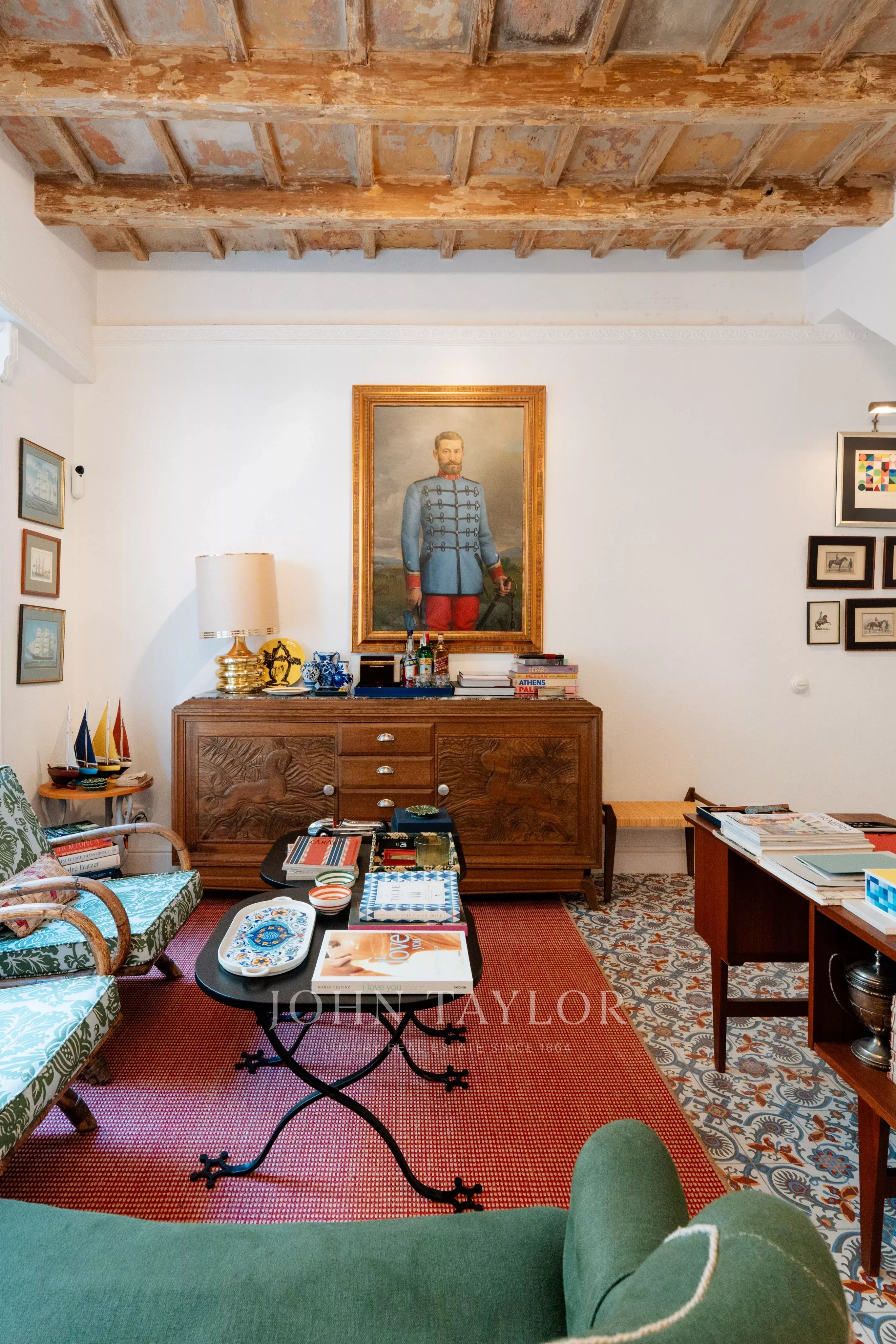 The house has been carefully restored by architect and interior designer Jean Porsche, maintaining the original character and combining it with a refined personal style. Antiques coexist harmoniously with modern furnishings and selected art pieces, while books, magazines and personal objects add warmth and authenticity. Each space balances comfort, functionality and aesthetics, with exceptional attention to detail.