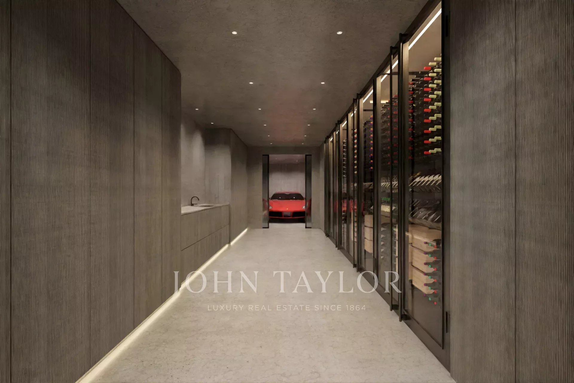 The basement, with approximately 320 m², includes a garage for three cars, a pantry, and a wine cellar. This ample space can be adapted to different needs: from a wellness area or a private cinema room, to a sixth bedroom with en suite bathroom.