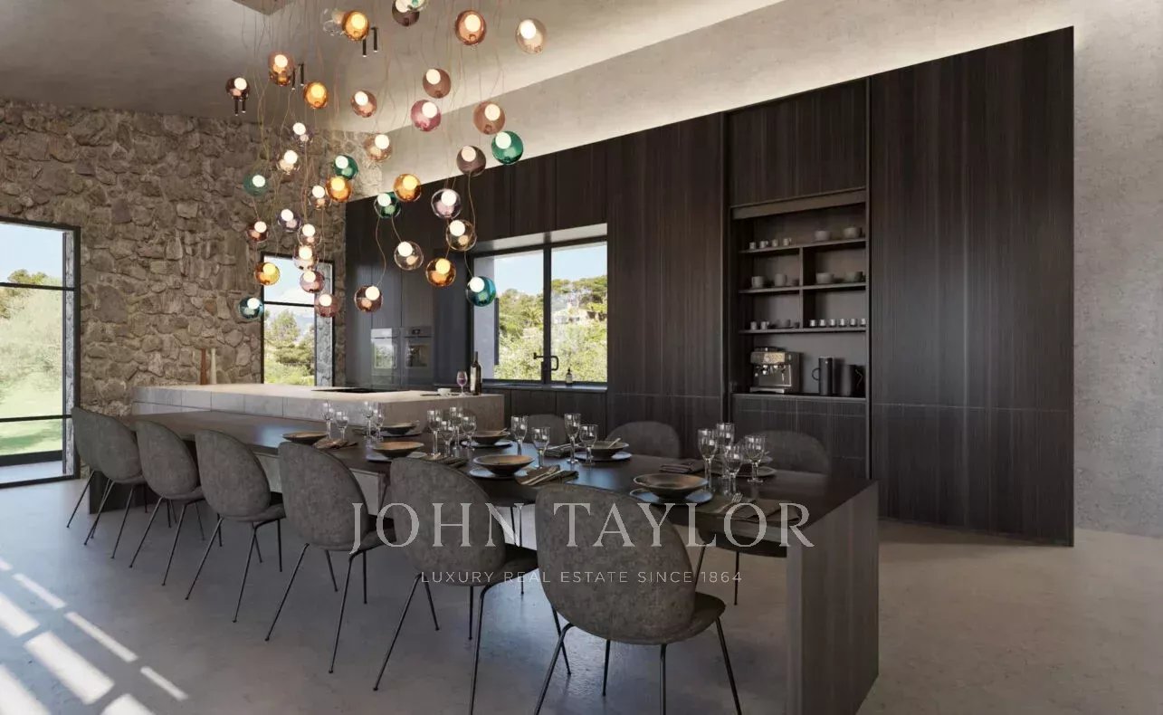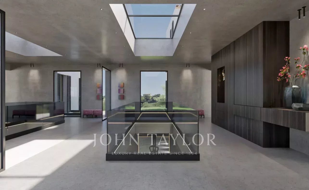 From the first step into the elegant entrance hall, an architectural design that perfectly integrates the indoor and outdoor spaces is revealed. The open concept layout connects the main living room, kitchen and dining room with various covered terraces, ideal for al fresco dining, along with a fully equipped outdoor kitchen. The exterior is also home to a large swimming pool, a true heaven of peace framed by panoramic views of the surrounding landscape.