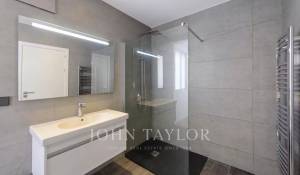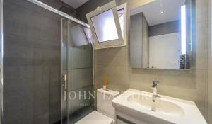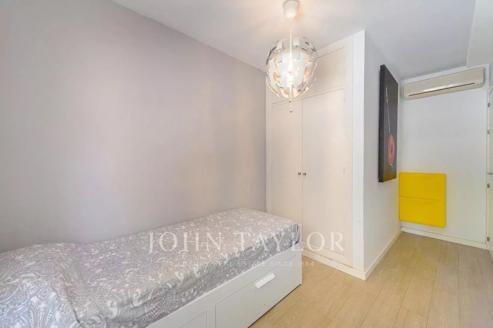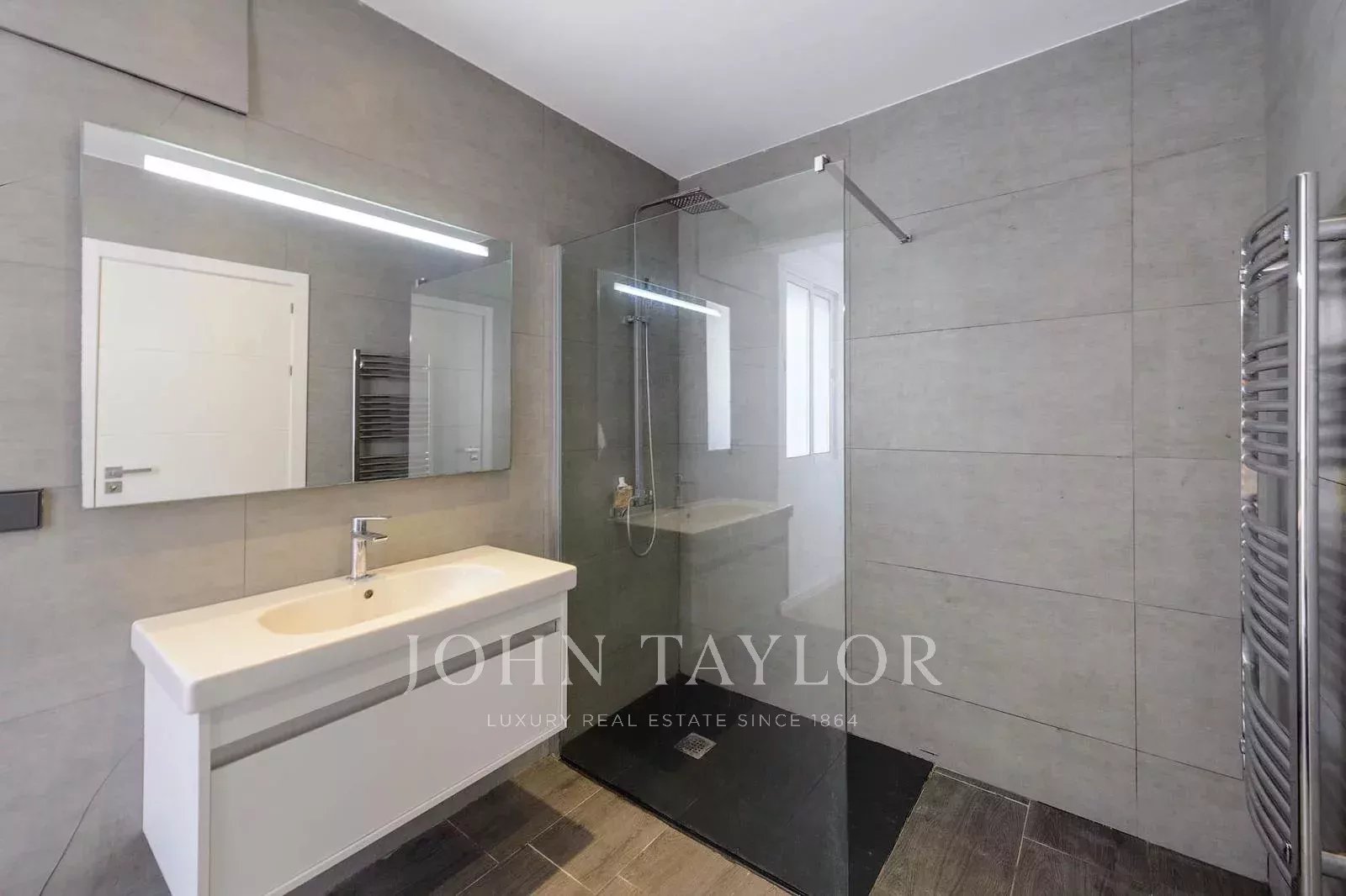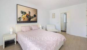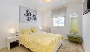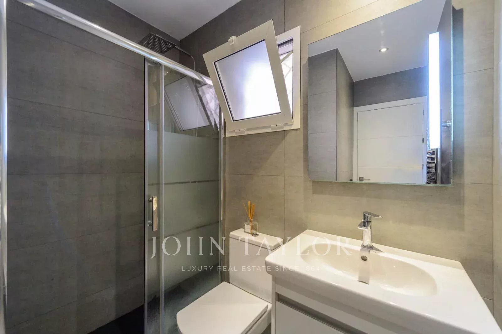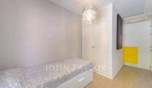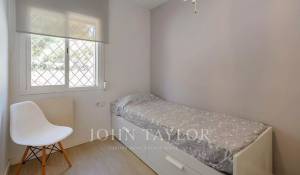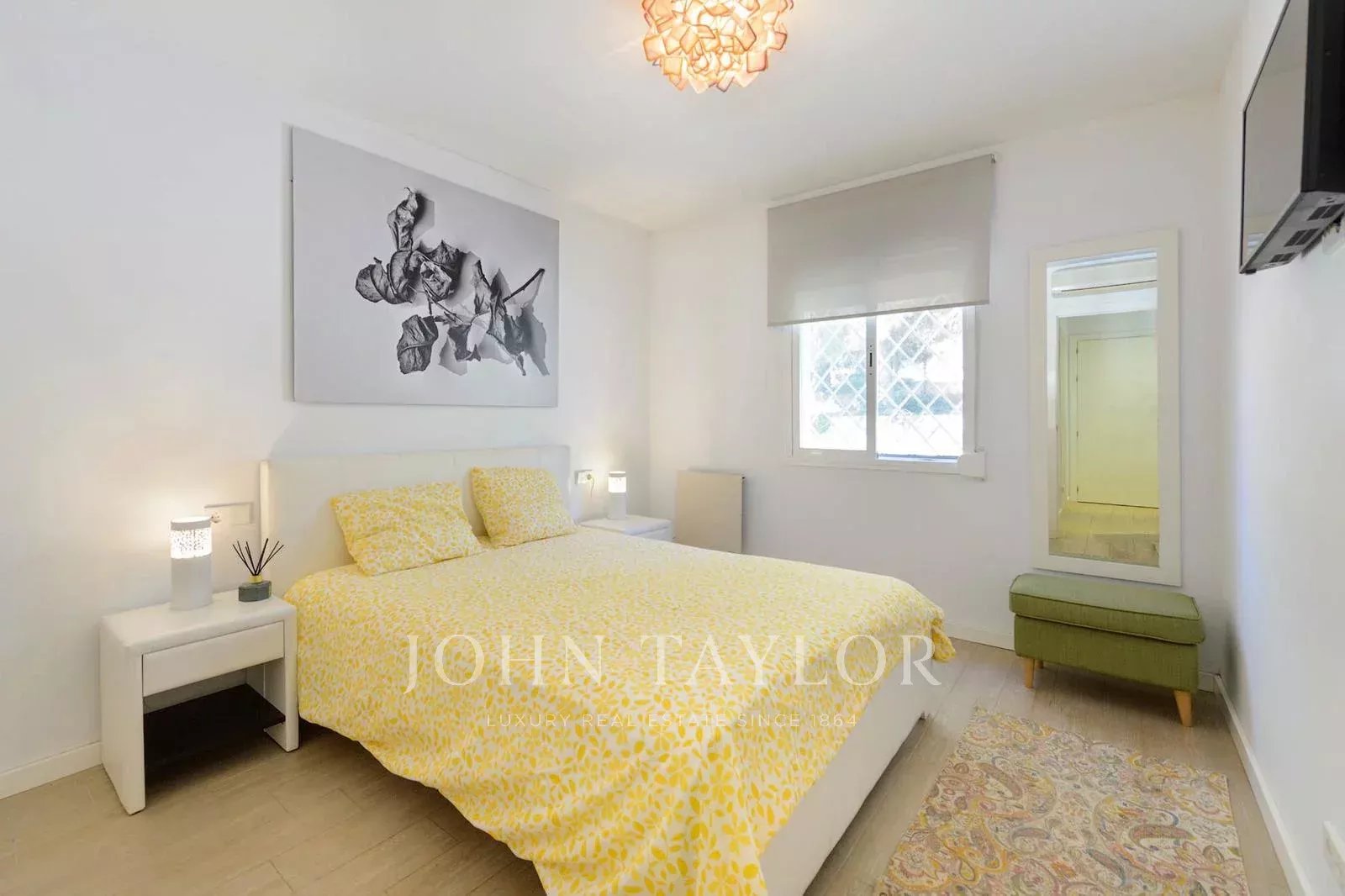 The large master bedroom features an en-suite bathroom and a generous closet area. It offers direct access to a terrace with breathtaking views of the golf course, allowing you to start your day with a refreshing view. The second spacious double room is separated from the master bedroom by a corridor, ensuring privacy. The third individual room features a single bed that can be transformed into a double bed, making it versatile for different needs. These two bedrooms share a common bathroom, conveniently located between them.