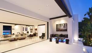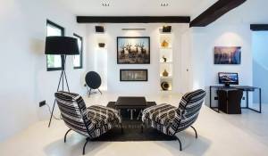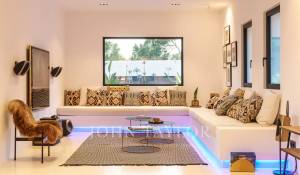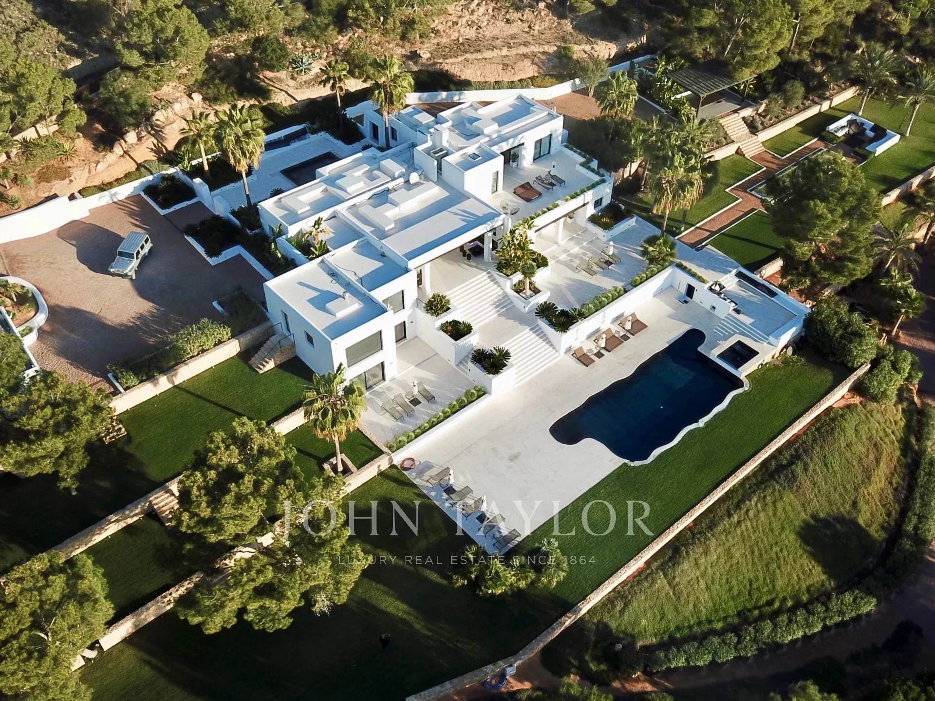 This magnificient villa is a modern design masterpiece featuring six bedroom suites and a separate staff apartment, set on expansive acres of lush green gardens. Situated in the exclusive area of Cap Martinet, it offers majestic sweeping sea views extending to Formentera and Dalt Vila, with easy access to Ibiza Town and other desirable locations, just 450 meters from the sea.