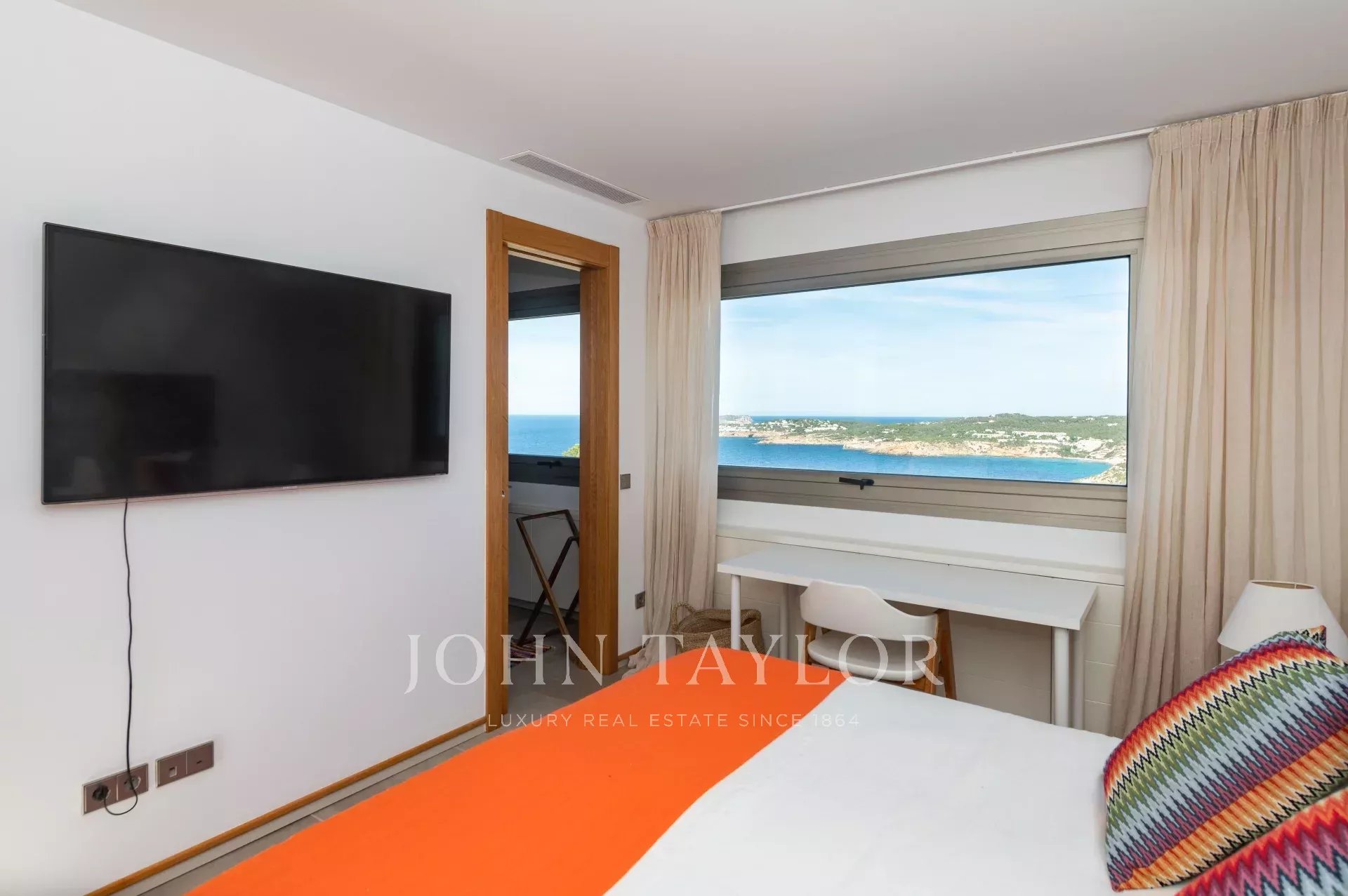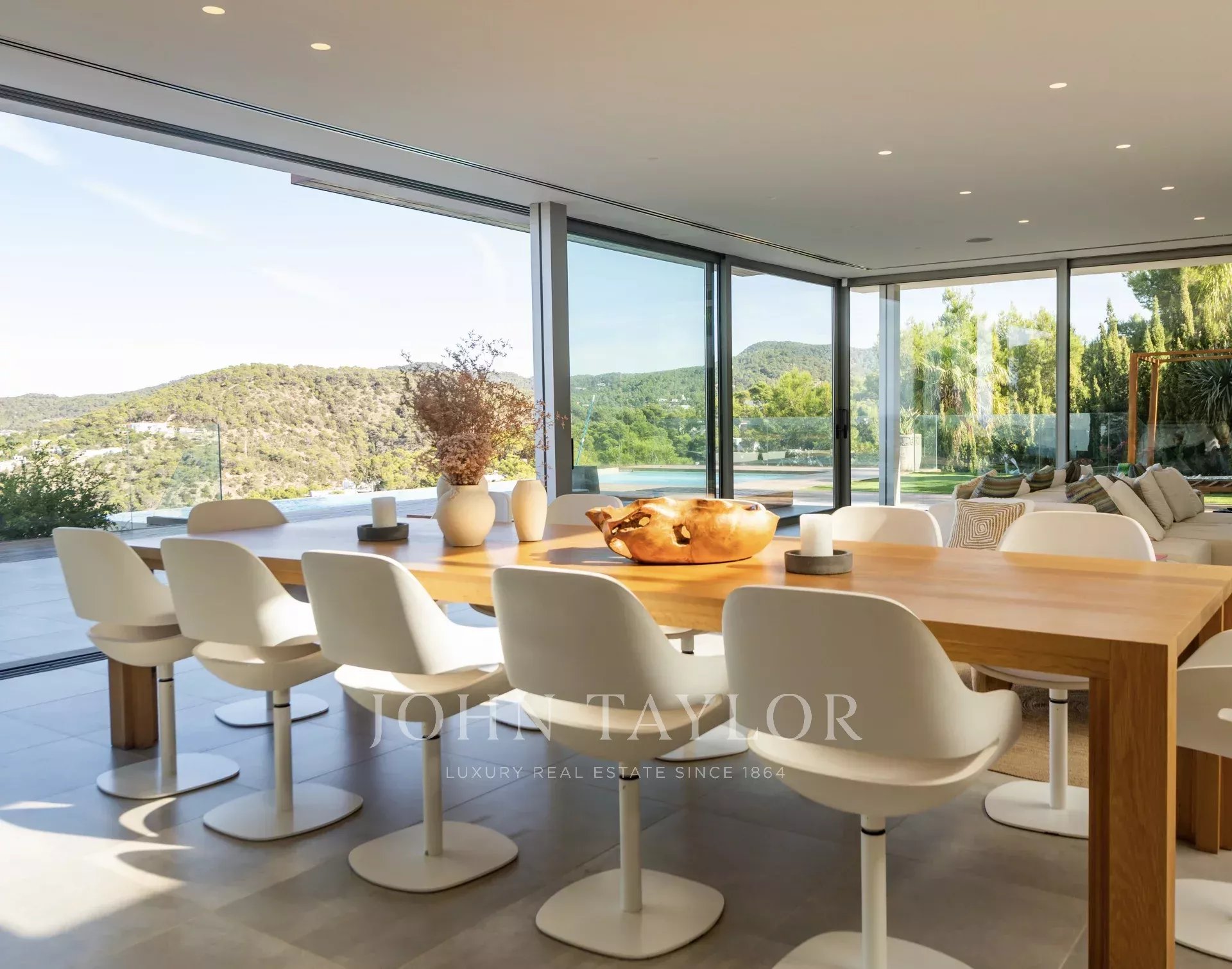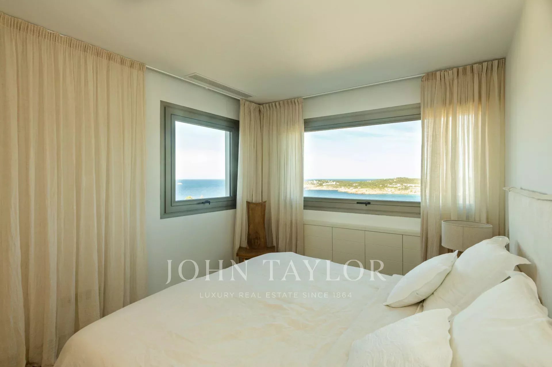 Fantastic five bedroom villa located on the heights of Cala Moli, in the southwestern part of the island. The house has a panoramic view of the sea and the mountains, which makes it a perfect place to be in contact with nature.