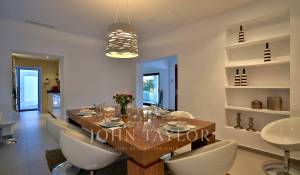The exterior is a true paradise, where you will find a spectacular infinity pool measuring 10 x 6 meters, perfect for refreshing yourself and soaking up the sun. The shallow area is ideal for children, and the cozy chill-out areas invite you to relax and enjoy the magical Ibizan sunsets. The outdoor dining area, equipped with a barbecue and a table for twelve, is perfect for sharing unforgettable meals al fresco.