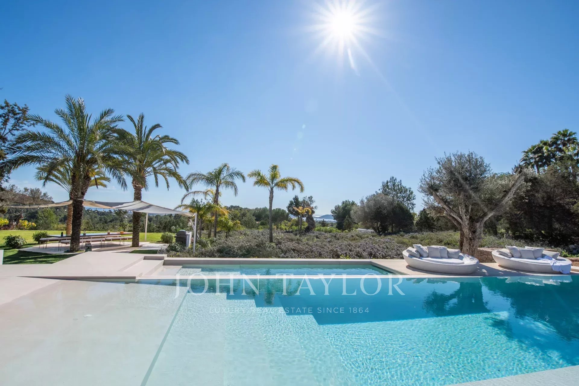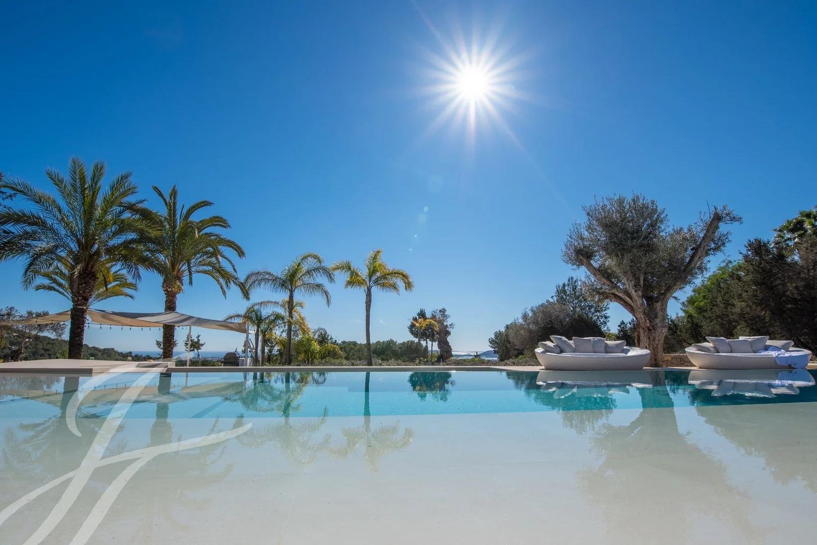 This magnificent villa, located just 4 km from the vibrant city of Ibiza, invites you to enjoy unparalleled panoramic views of the salt flats of Ibiza, Cap Falco, Playa den Bossa and the island of Formentera. With six exquisitely decorated suites and a staff room, this heavenly retreat combines modernity and sophistication, promising an unforgettable experience at any time of the year. Immerse yourself in an atmosphere of serenity and luxury, where every sunrise and sunset becomes a spectacle for your senses.