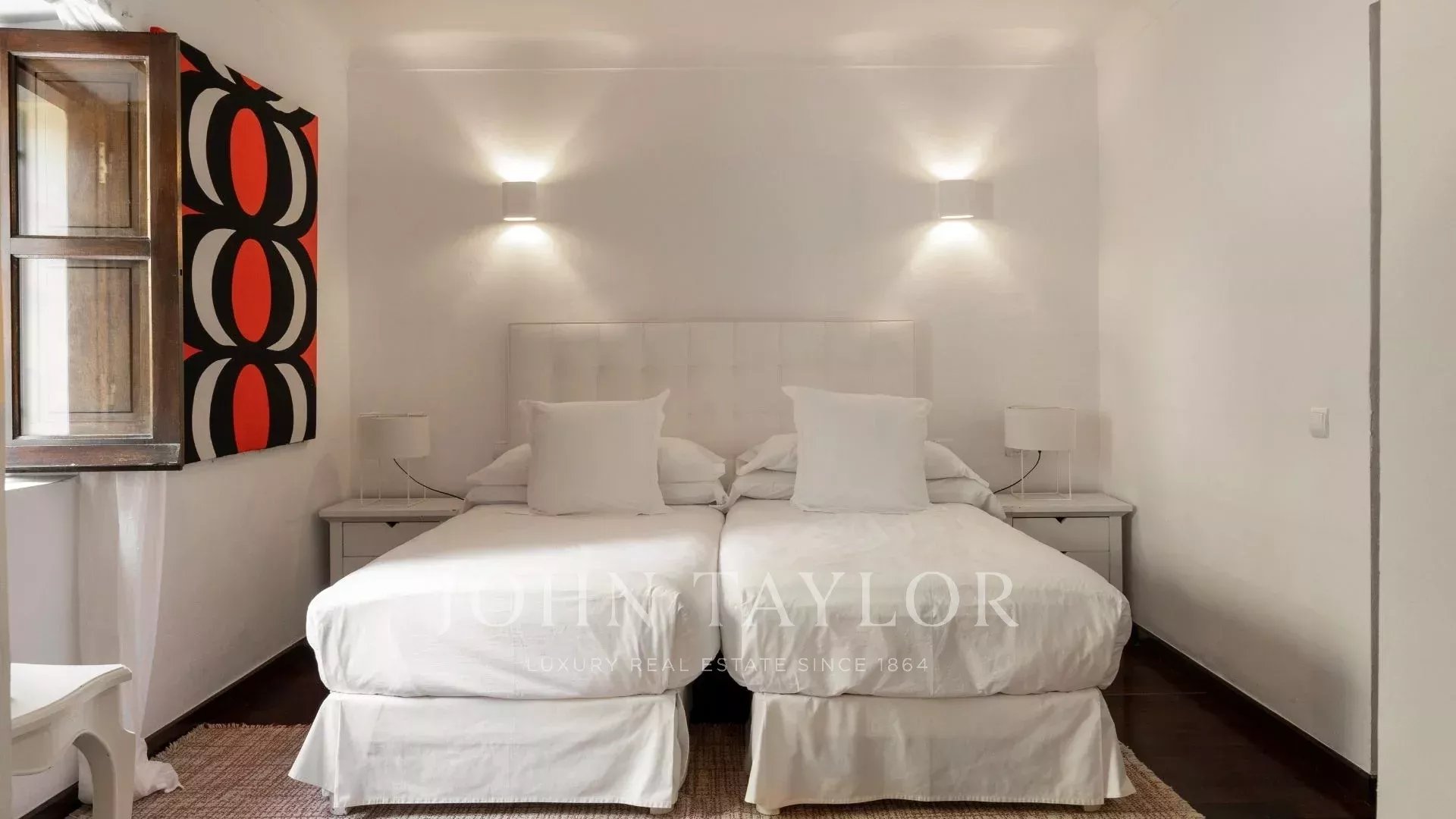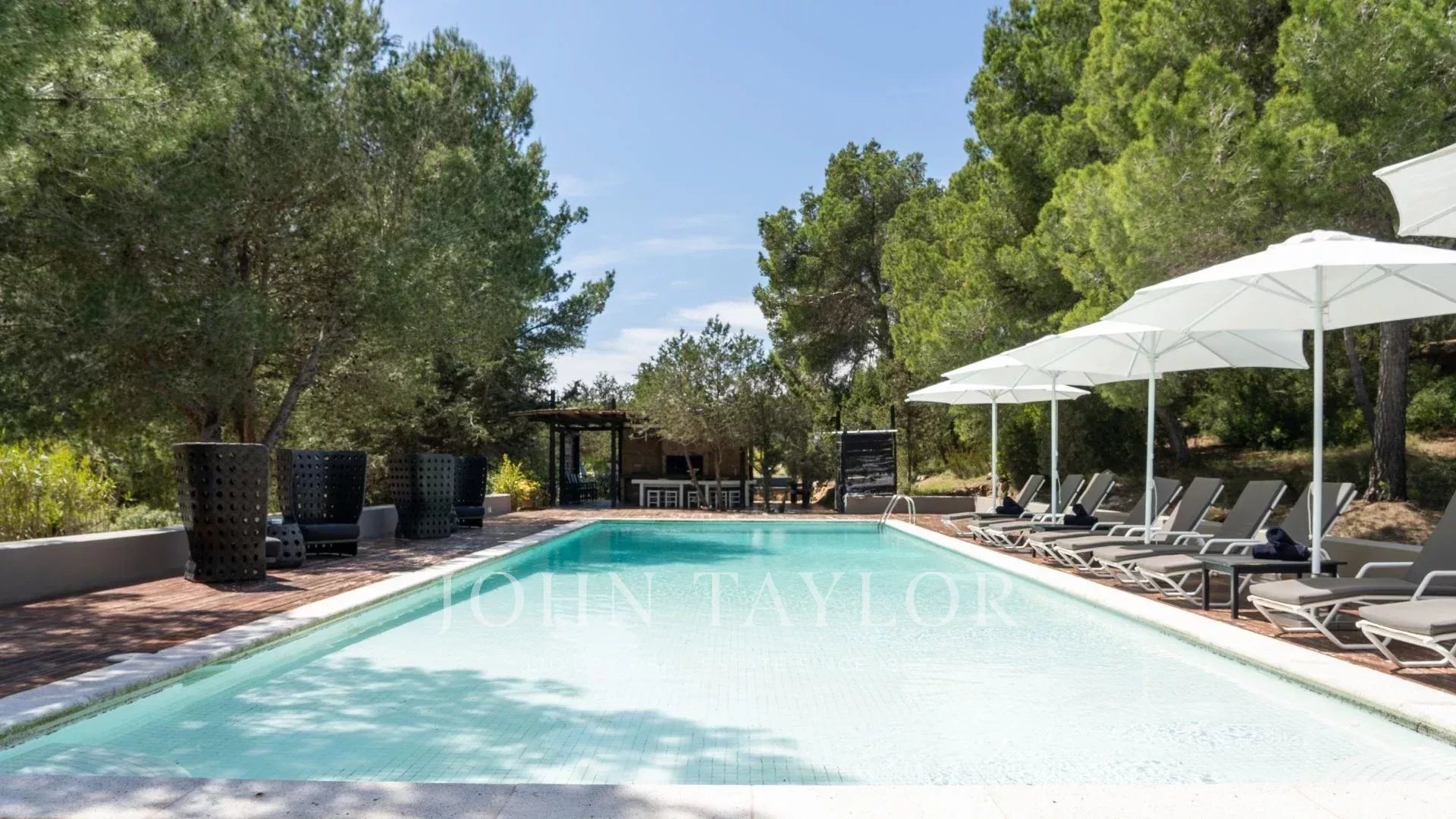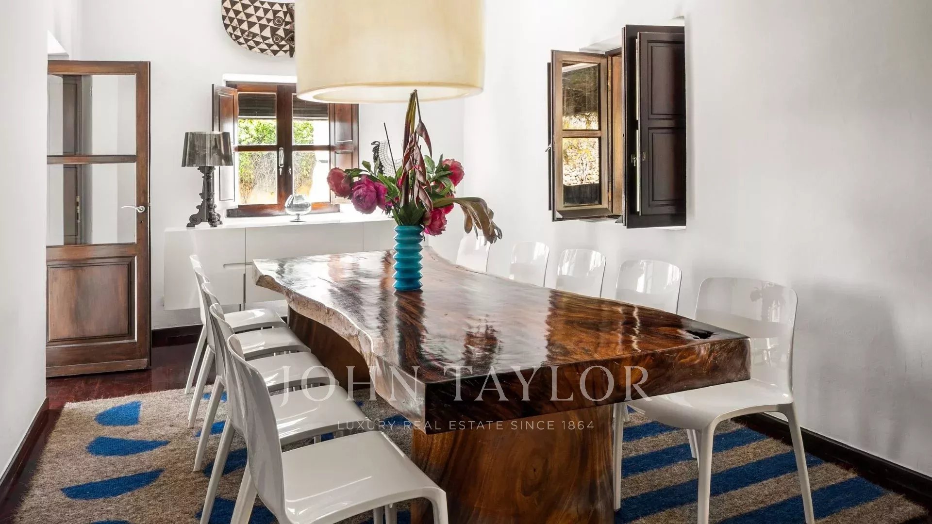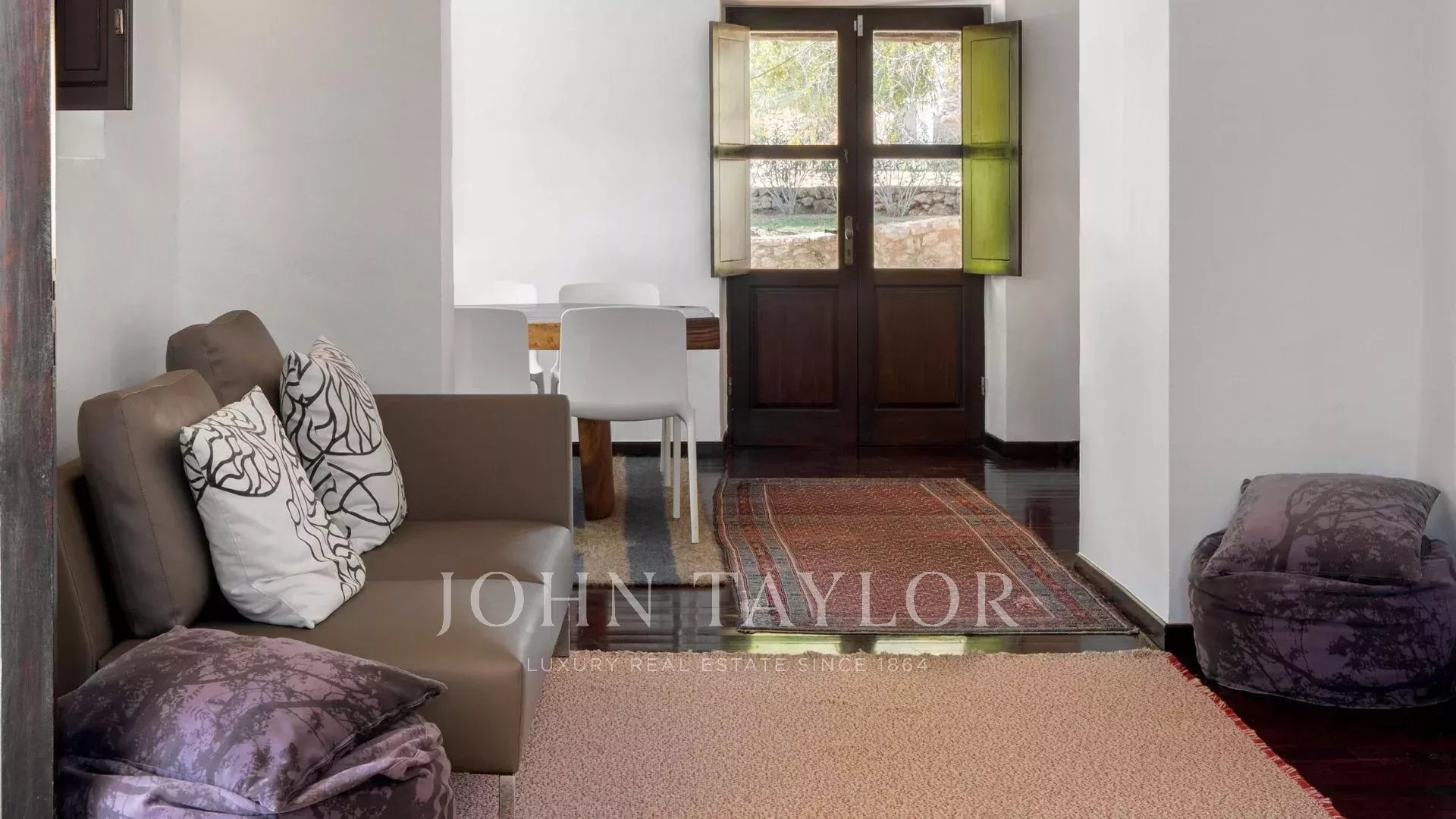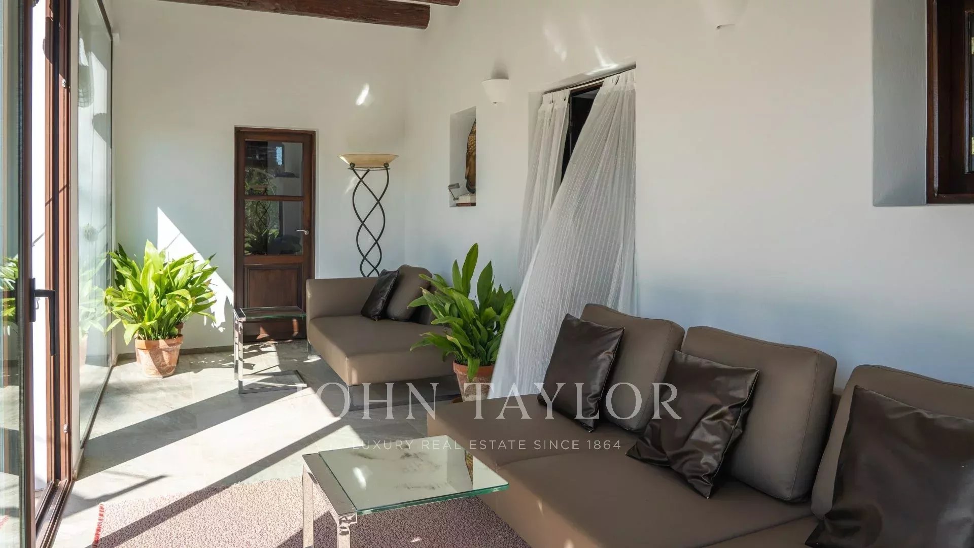 Magnificent traditional finca with typical Ibiza stone walls mixed with high design elements.