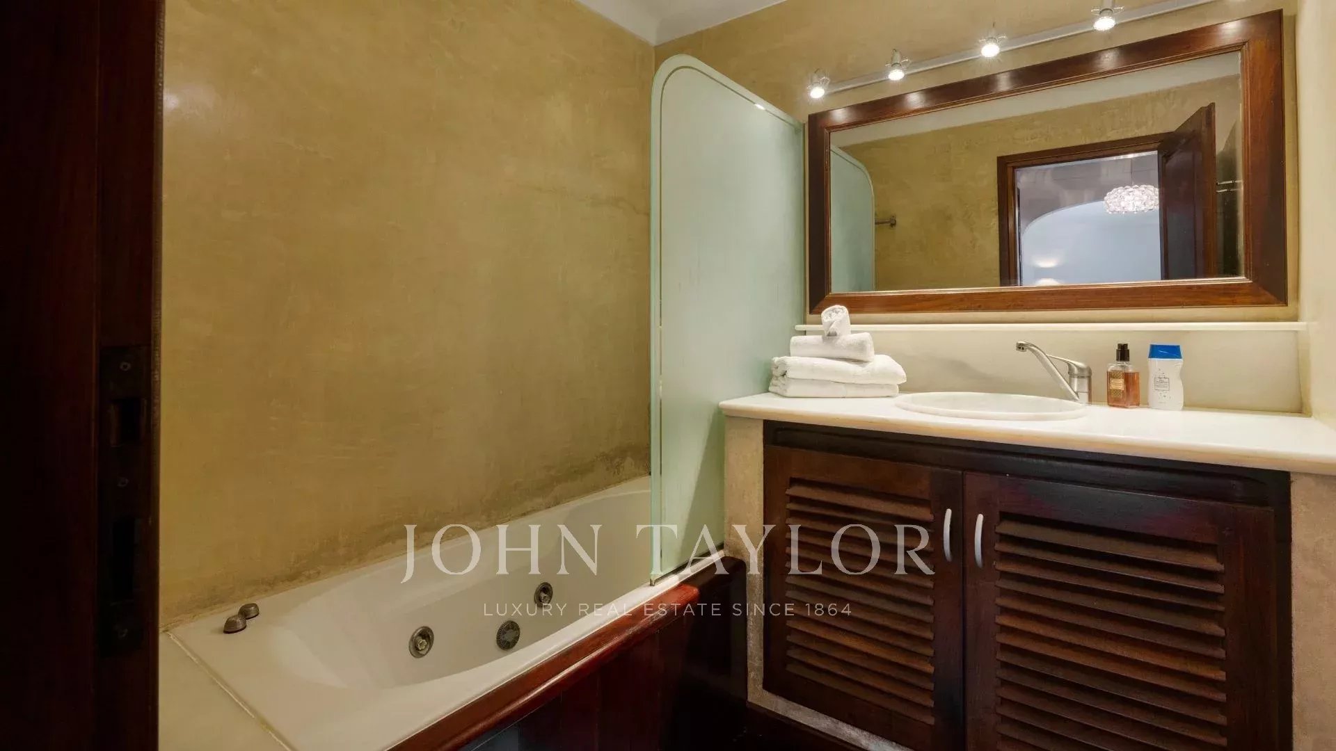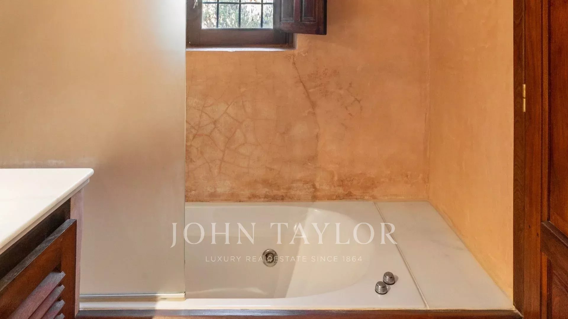The finca has a villa of 460m2 in which we find a living room with access to a fantastic garden area, a living-dining room and a fully equipped open plan kitchen. There are also six double bedrooms with en suite bathrooms and a guest toilet. Two of the bedrooms are not located in the main house, but in outbuildings.