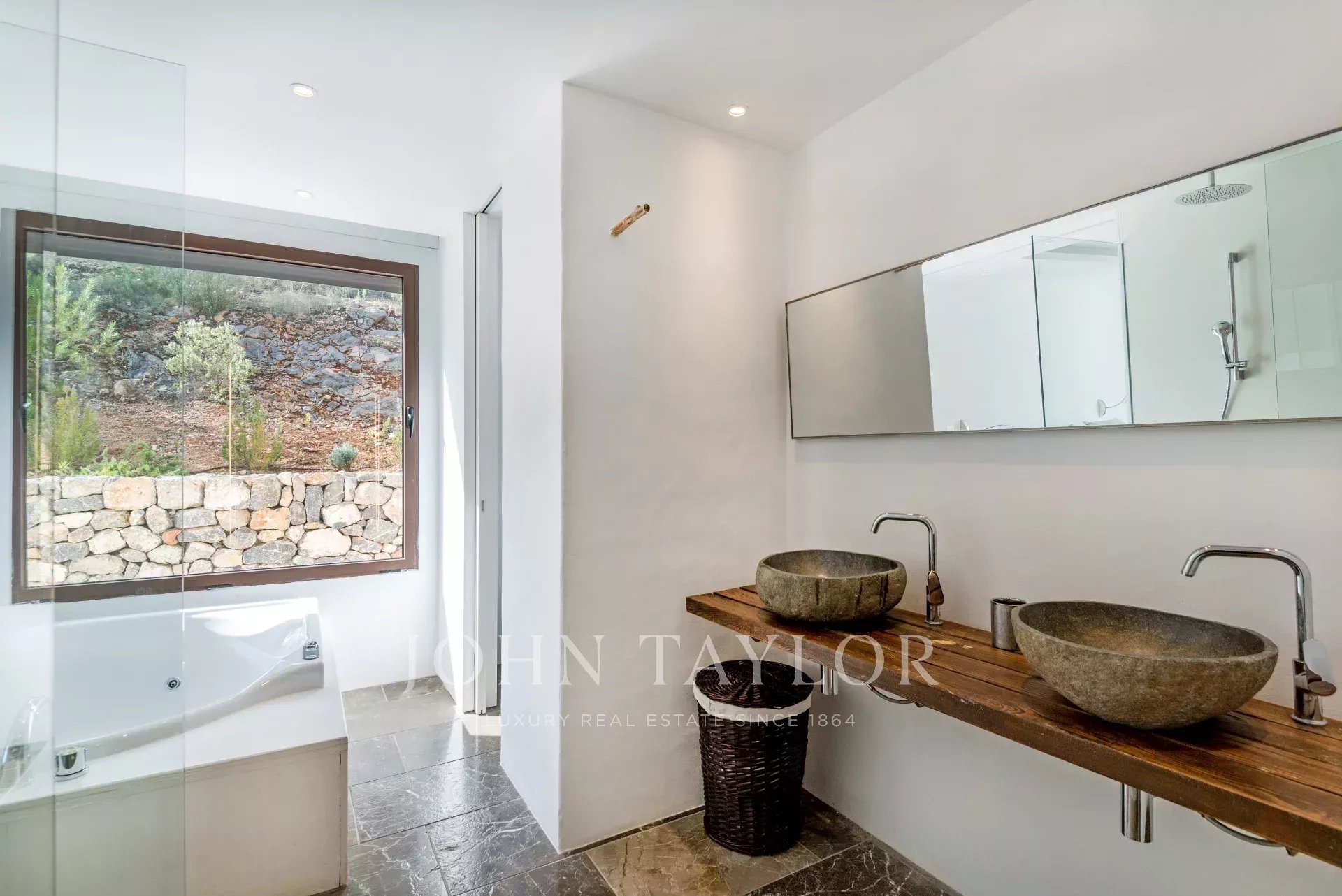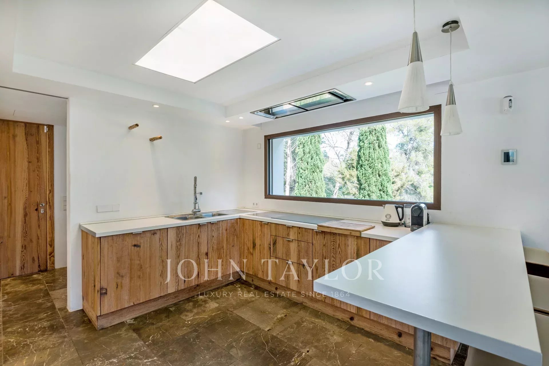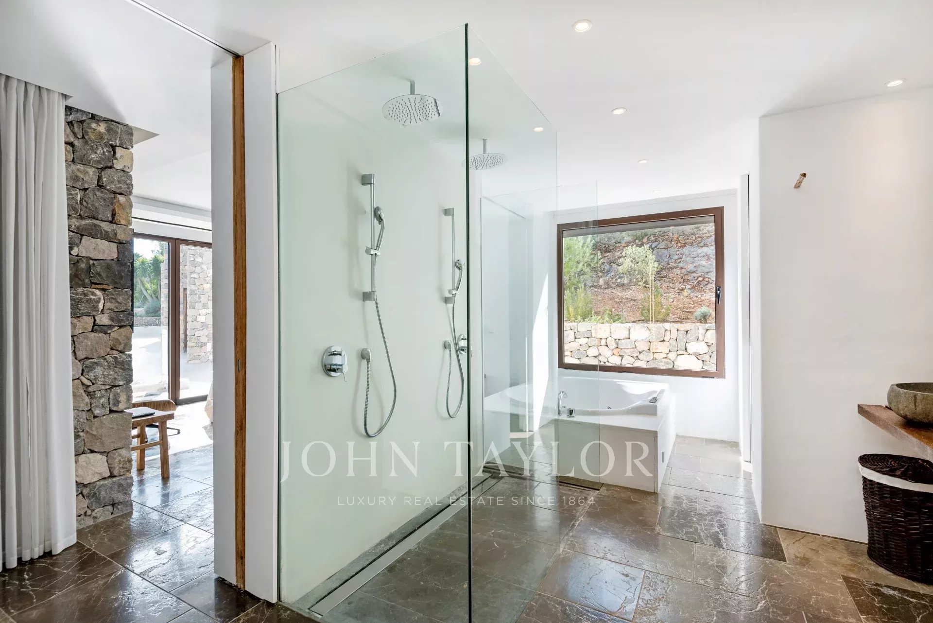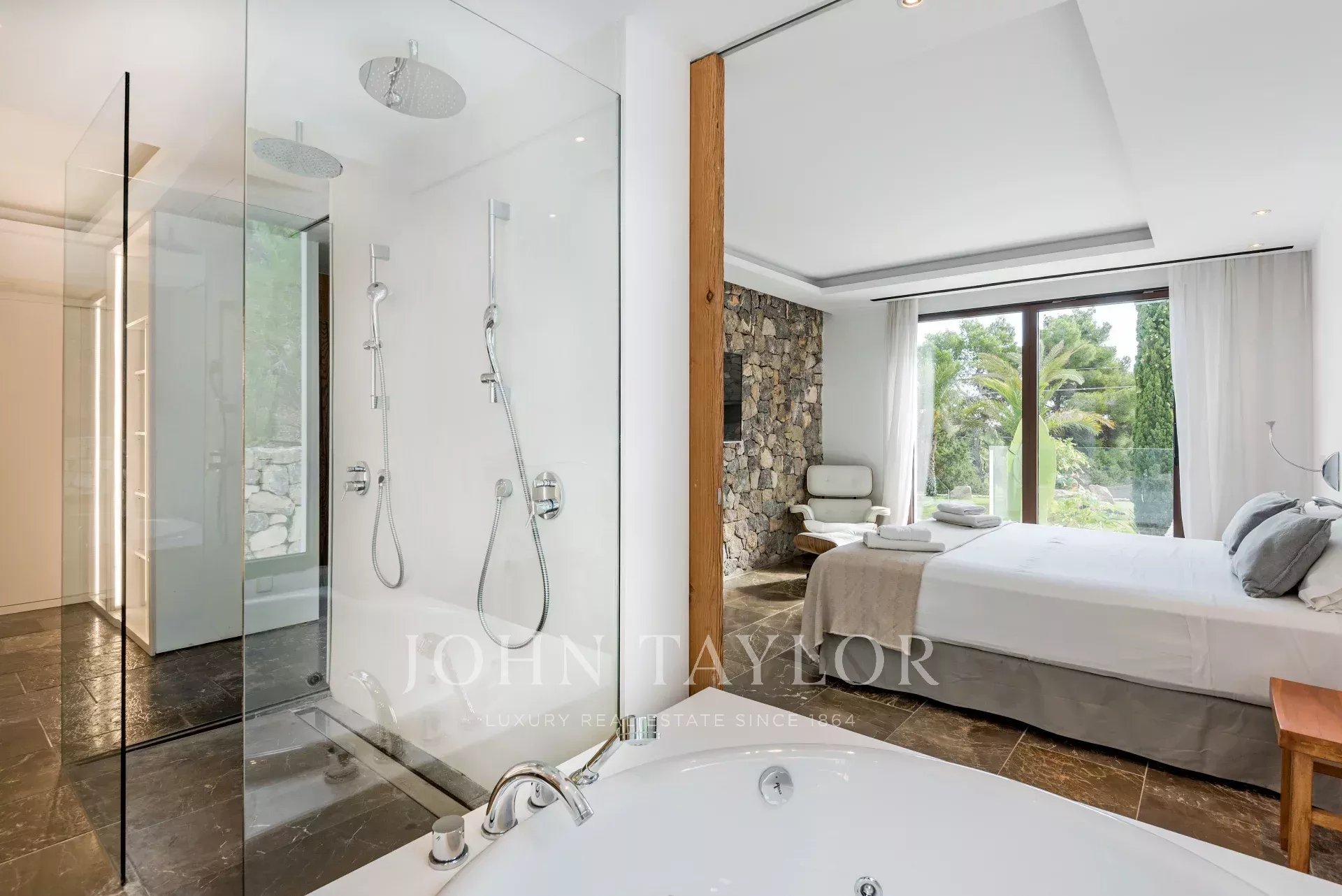 The pool house has an en-suite bedroom with kitchenette and living area. It also has a private terrace.