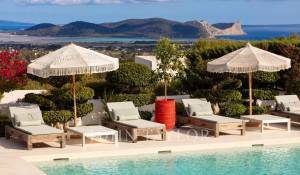 Nestled in the area between Sant Josep village and Ibiza Town, this exquisite estate in Sant Jordi offers an unmatched blend of luxury, comfort, and spectacular natural beauty. Set amid sprawling, meticulously landscaped gardens, the south-oriented property enjoys unobstructed views over lush farmlands, the tranquil Ses Salines Natural Park, and the distant shores of Formentera.