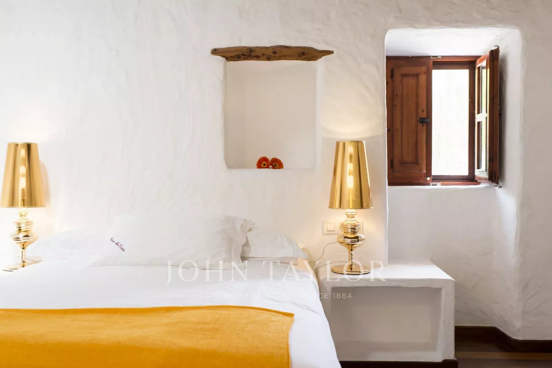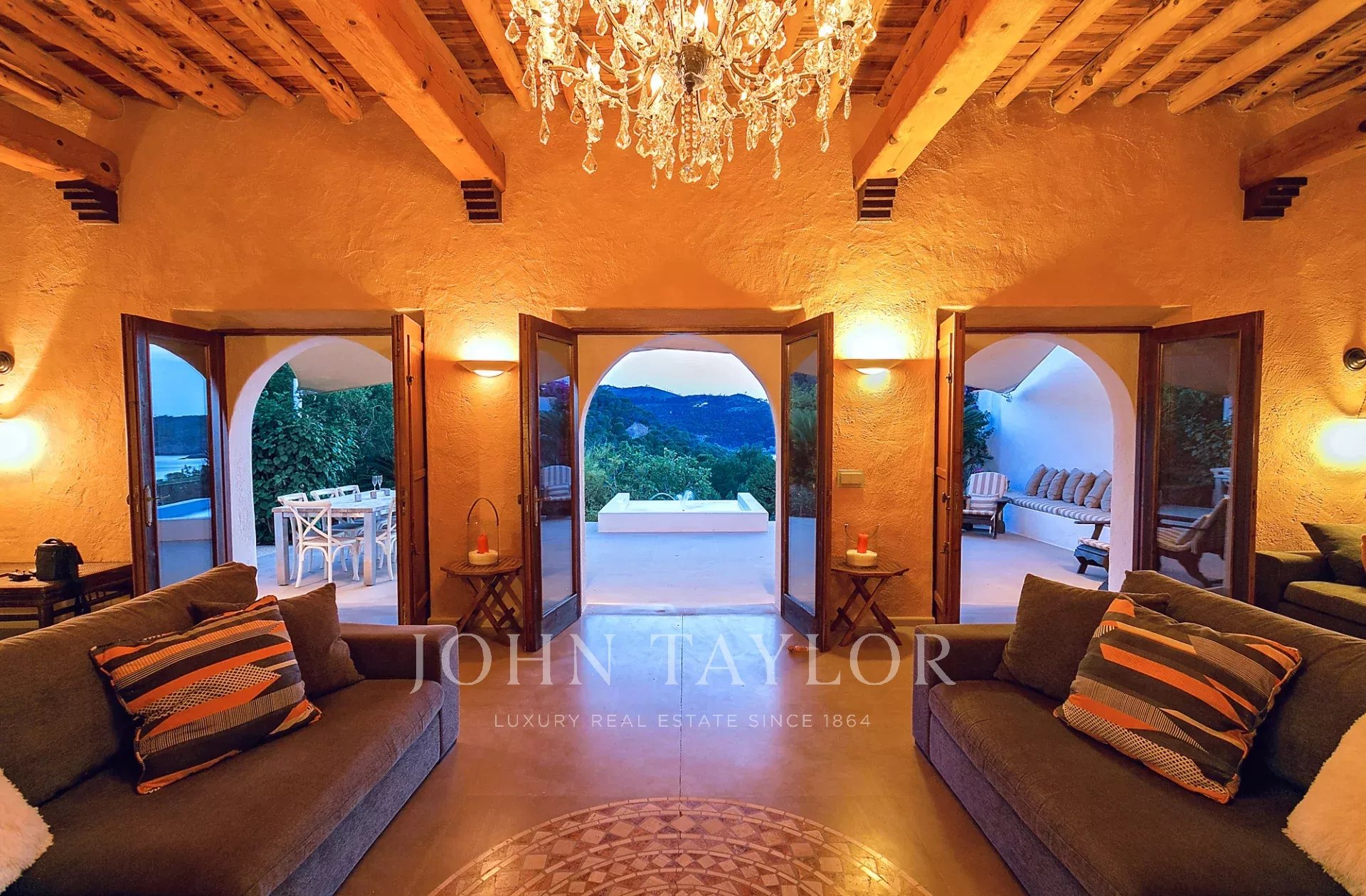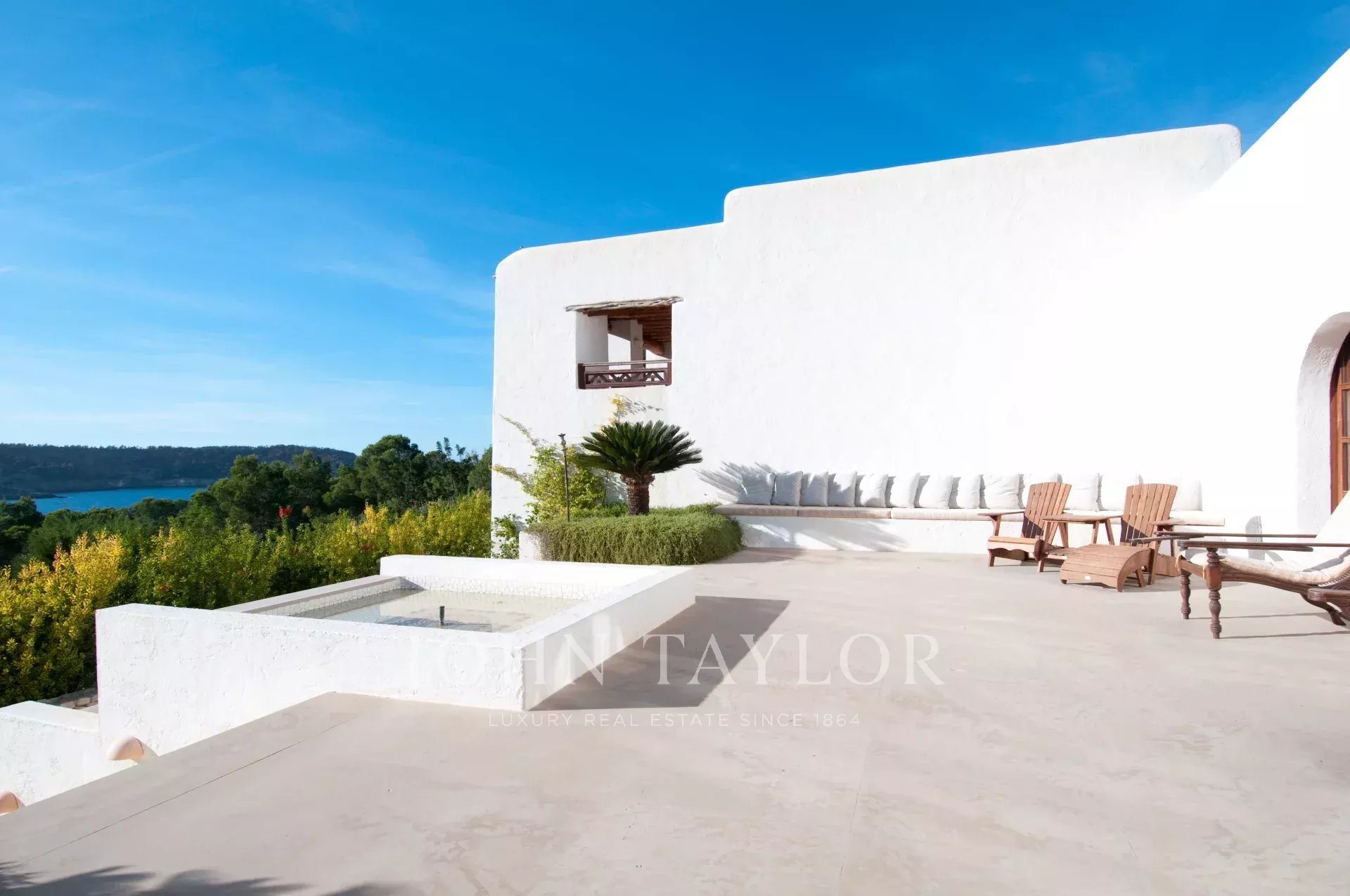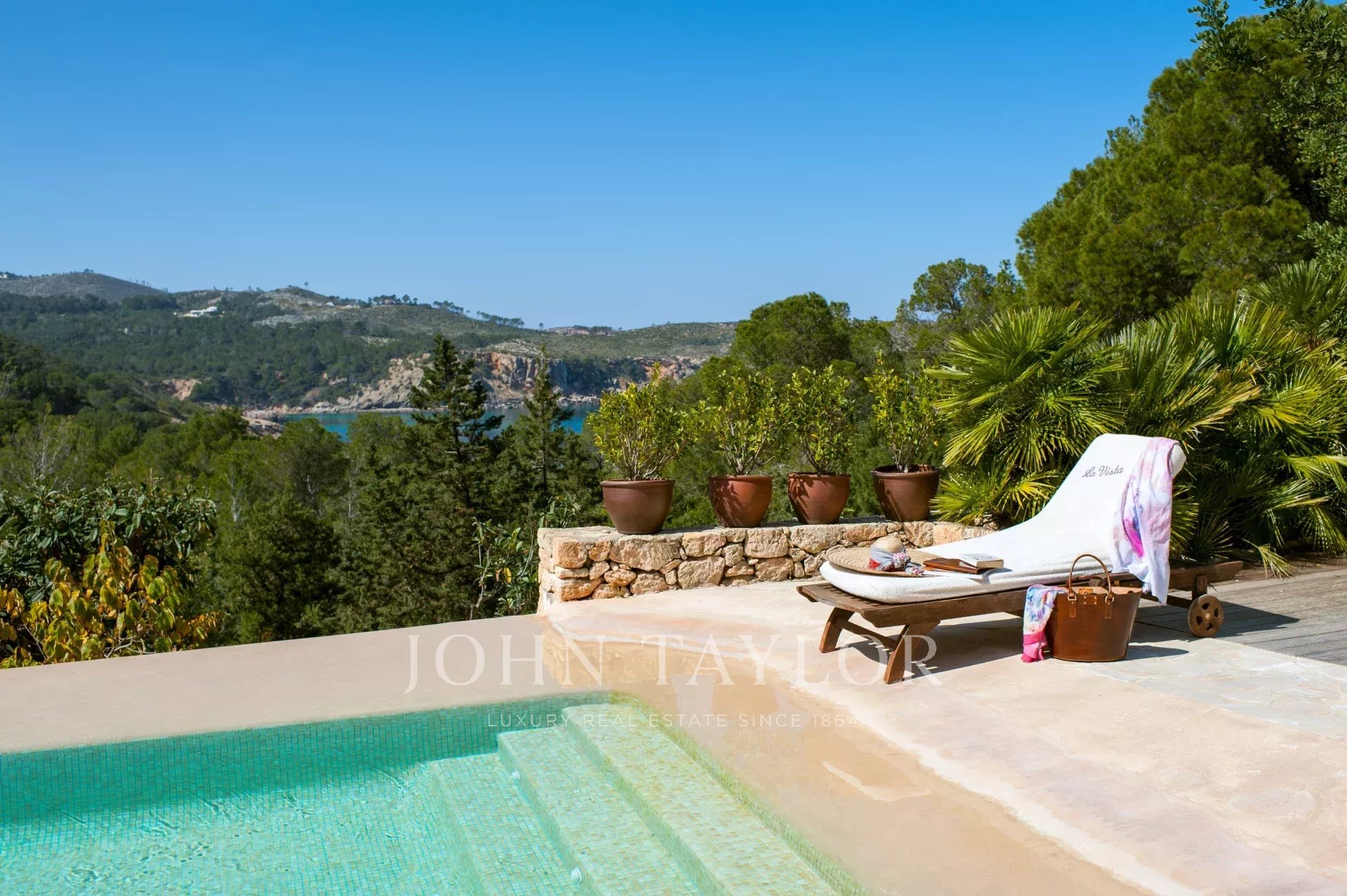 Ibicencan villa surrounded by pine forests in the north of the island, with breathtaking views across the Med, and boasting a gorgeous infinity pool, direct access to the beach and a multitude of courtyards, gardens and chillout areas offering space and privacy.