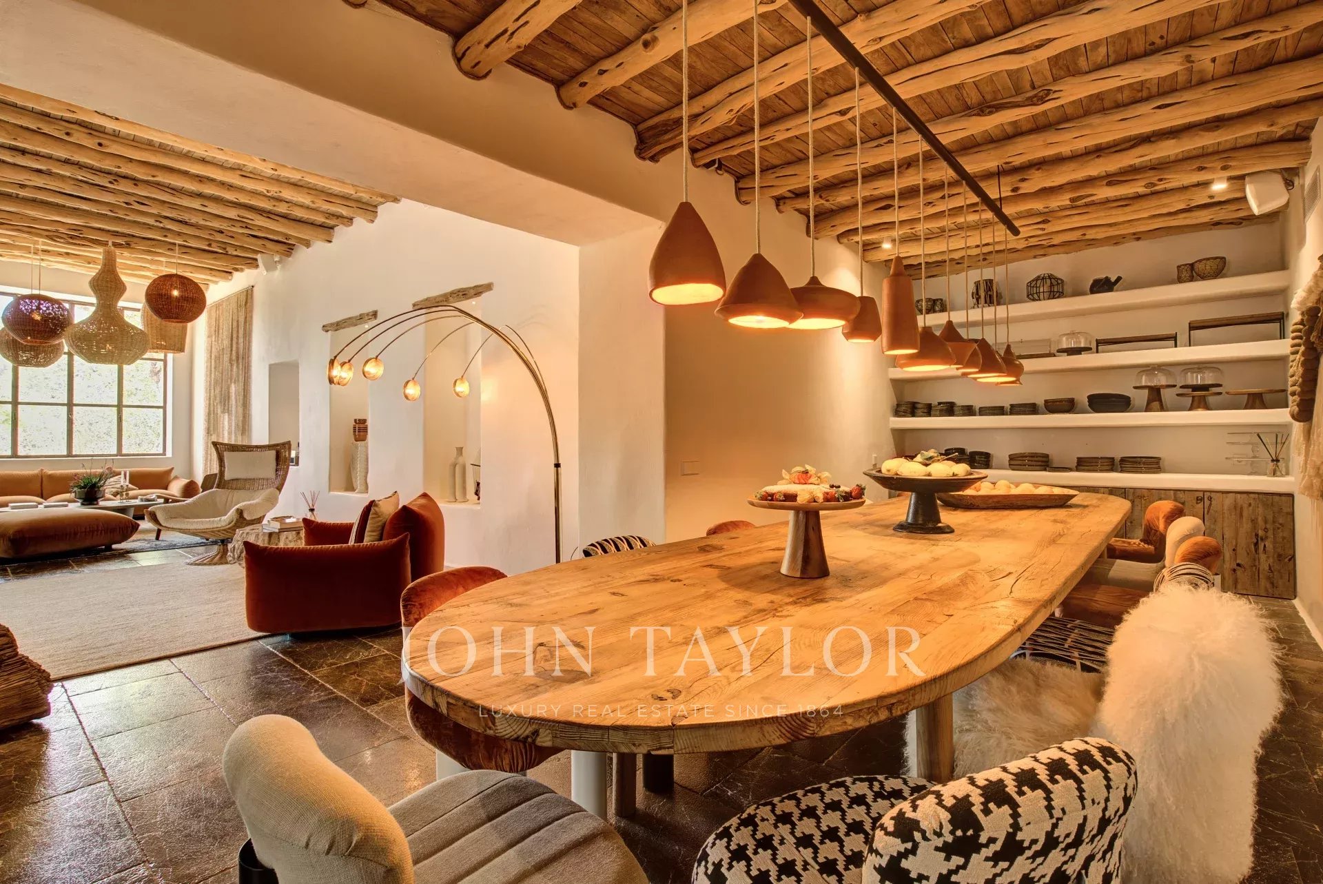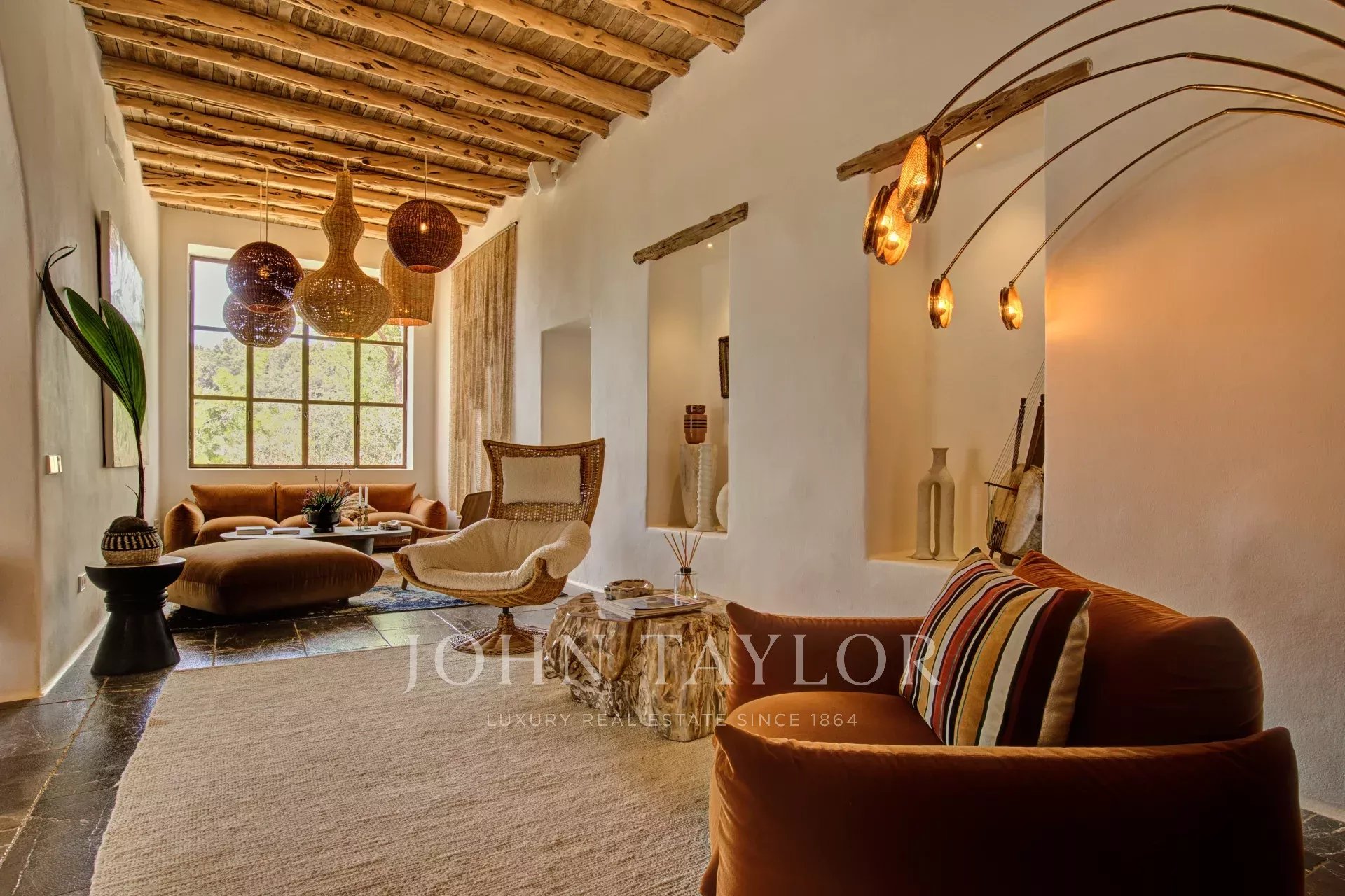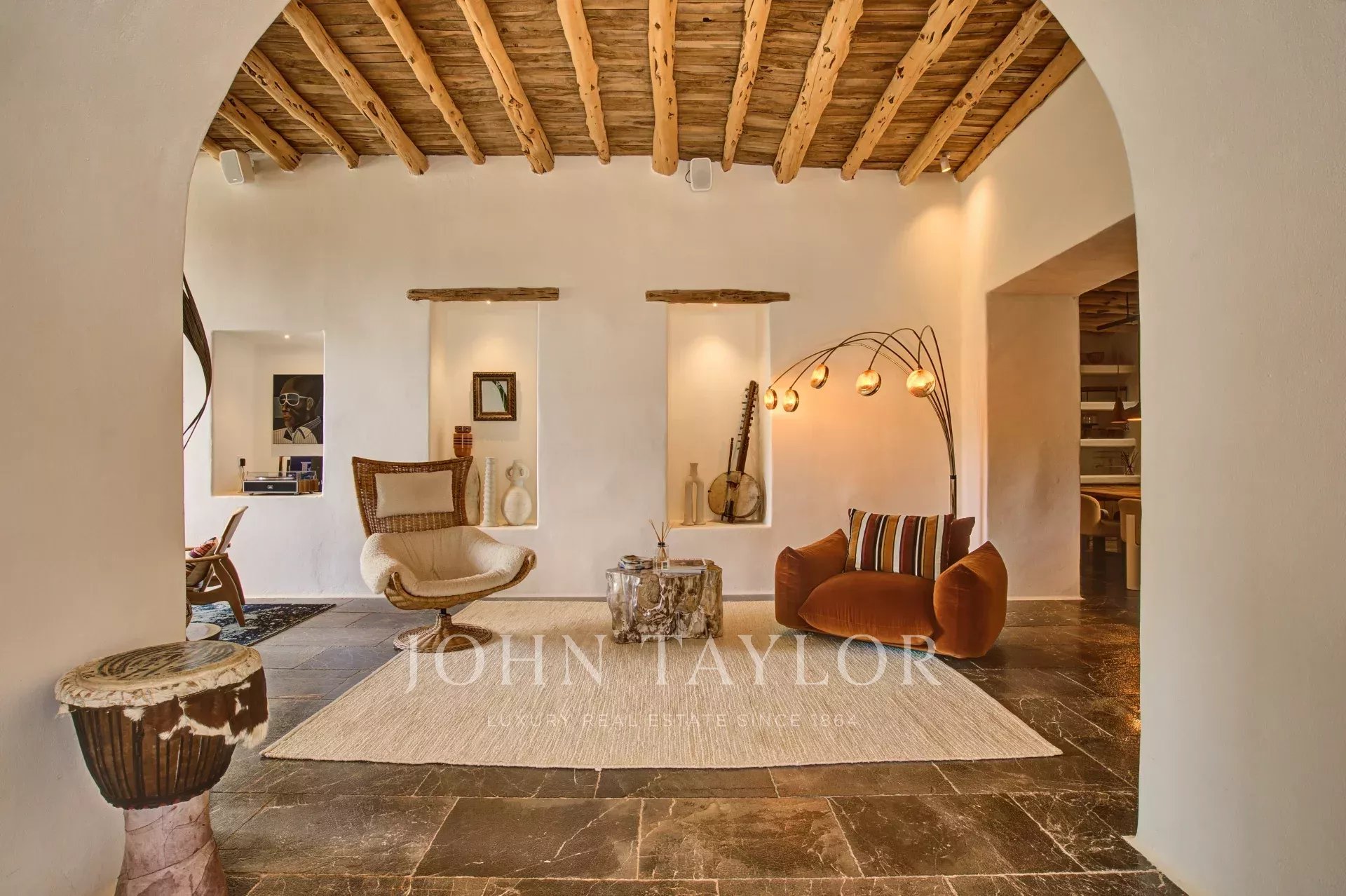 Escape to an oasis of luxury and authenticity in the north of Ibiza. This stunning nine-bedroom finca blends history, design, and nature in a private 21-acre setting. Enjoy a spectacular saltwater pool, wellness areas, sunny terraces, and a soundproof private cave for exclusive celebrations.