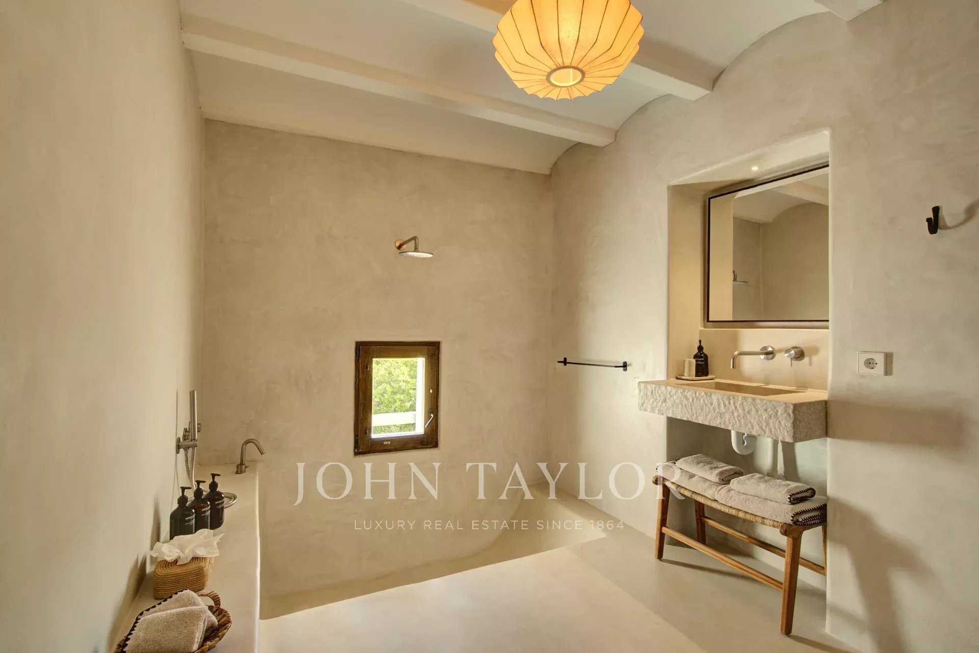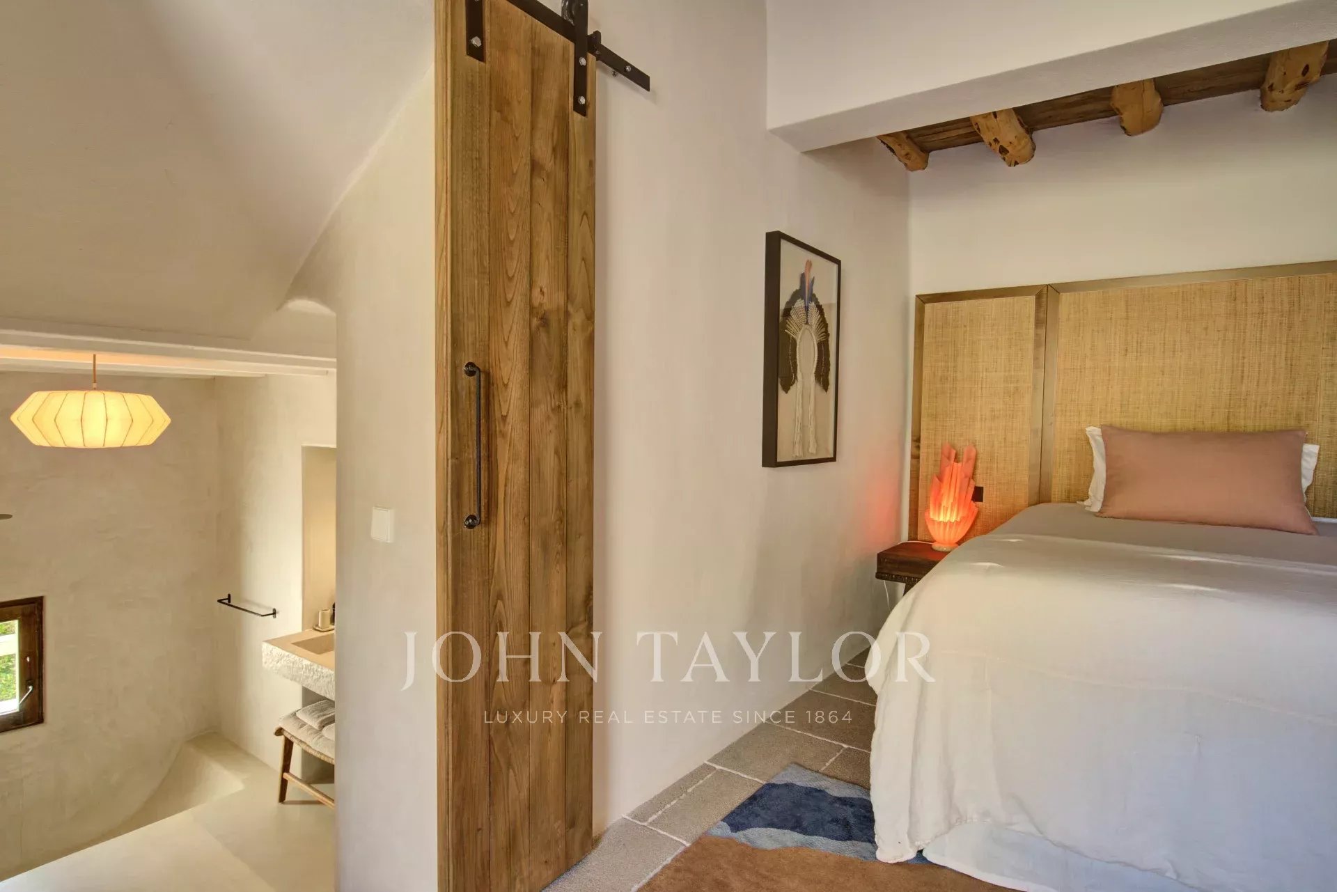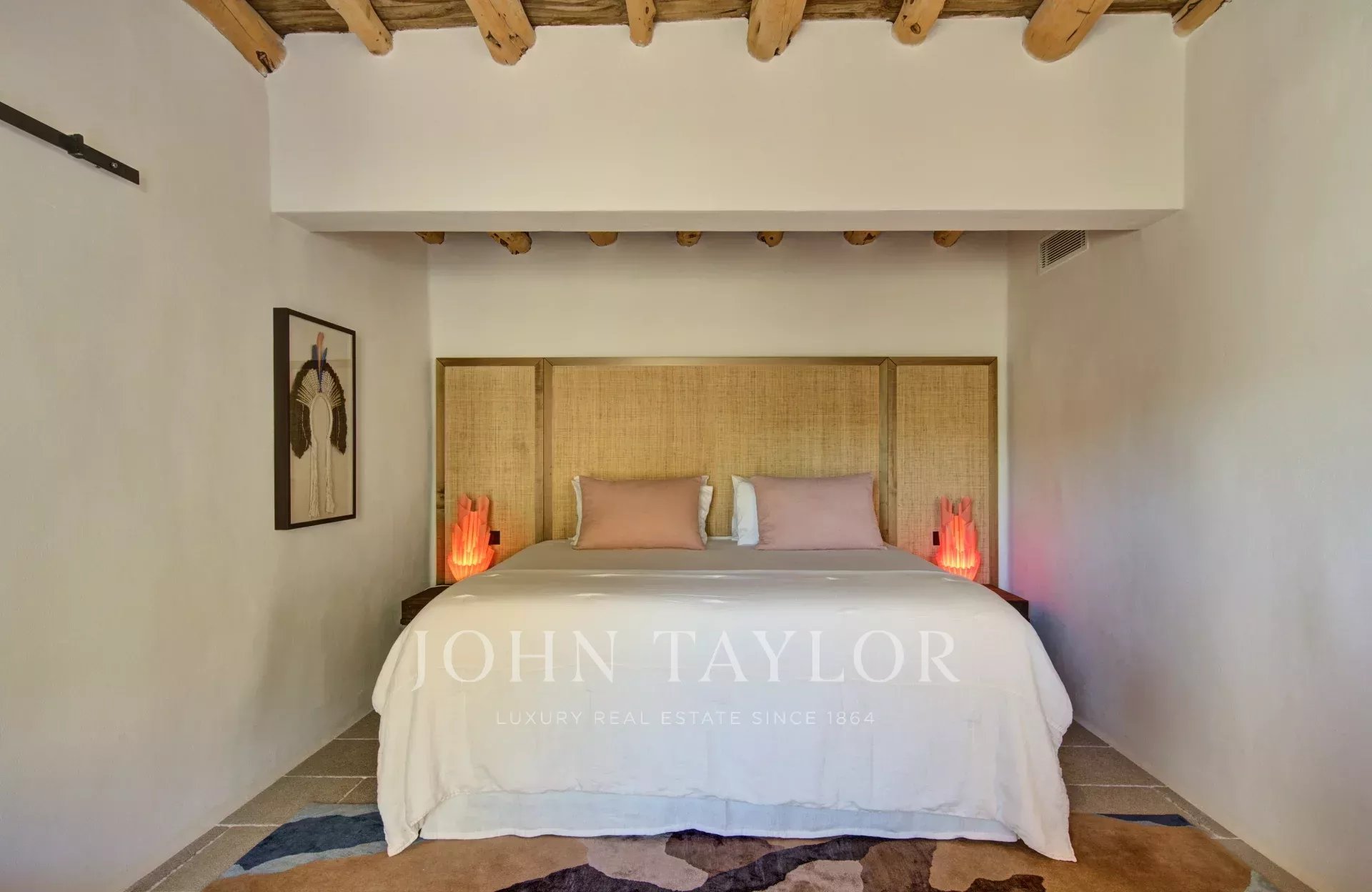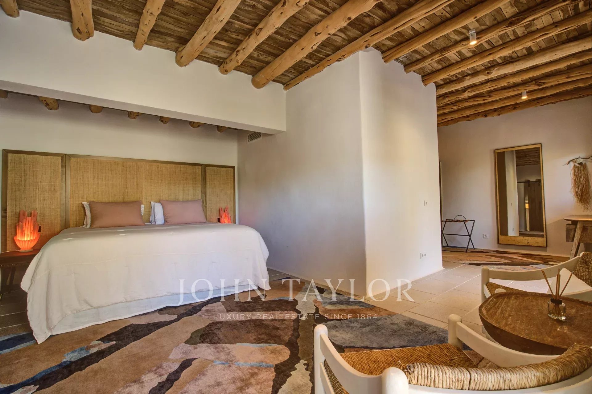 Escape to an oasis of luxury and authenticity in the north of Ibiza. This stunning nine-bedroom finca blends history, design, and nature in a private 21-acre setting. Enjoy a spectacular saltwater pool, wellness areas, sunny terraces, and a soundproof private cave for exclusive celebrations.