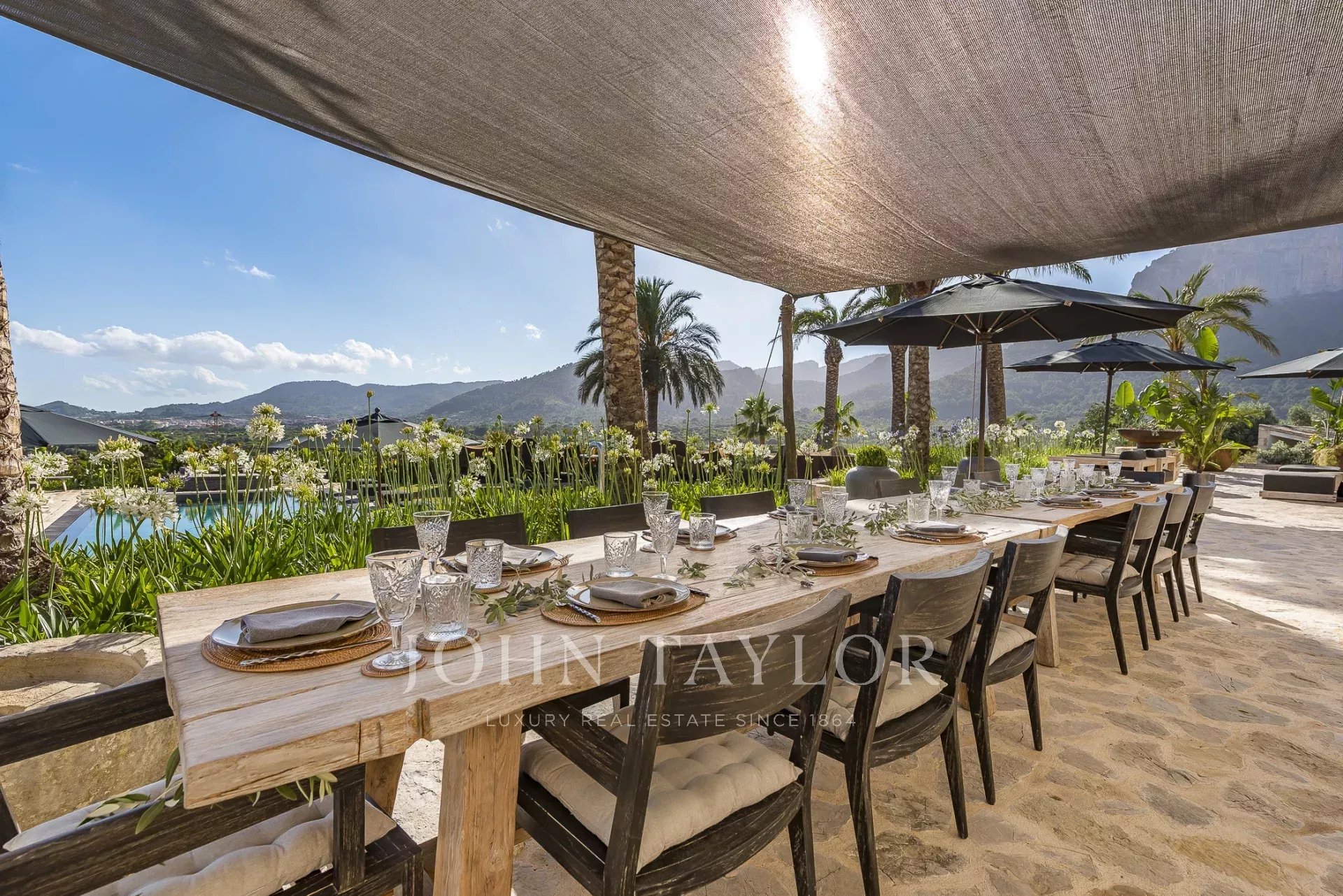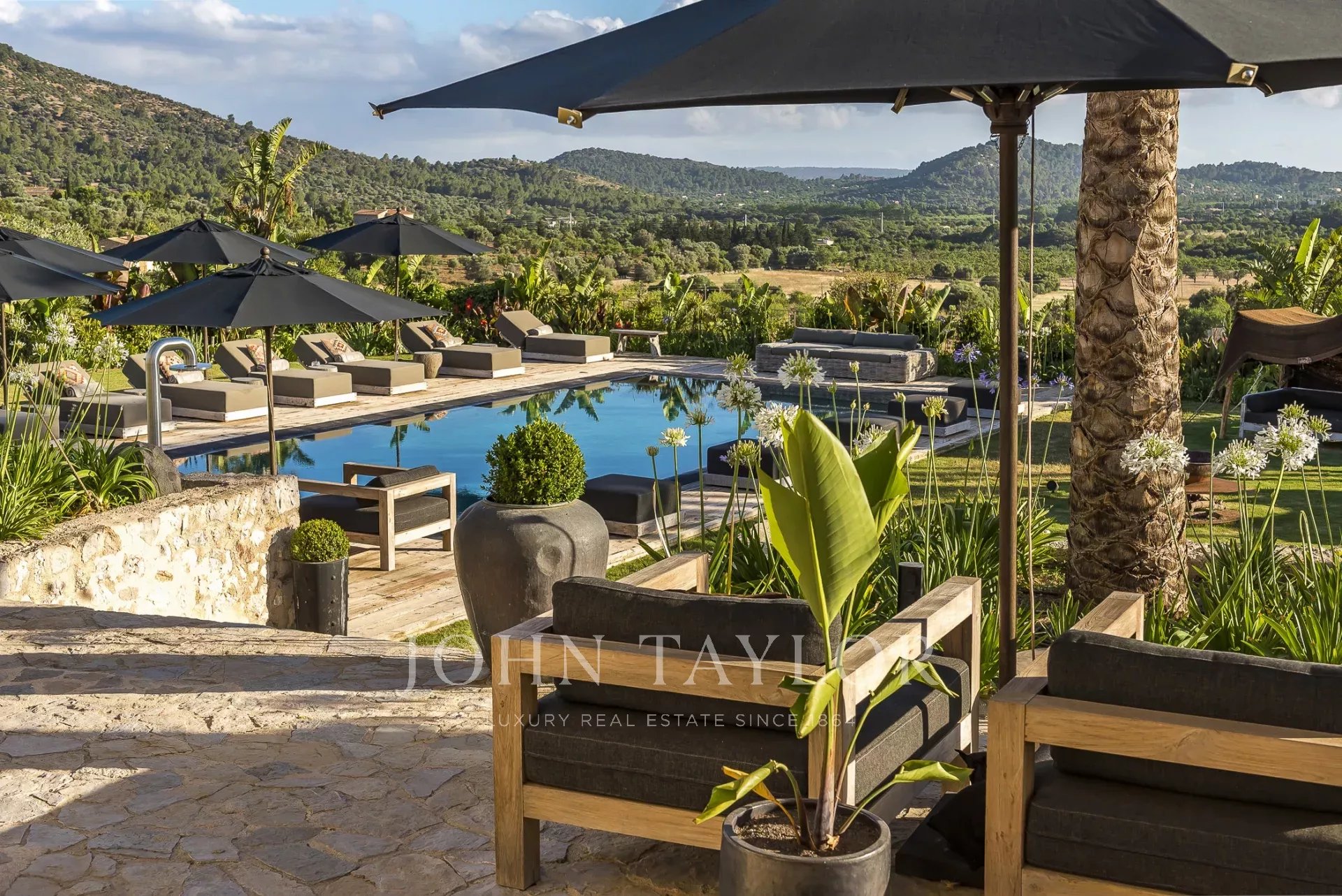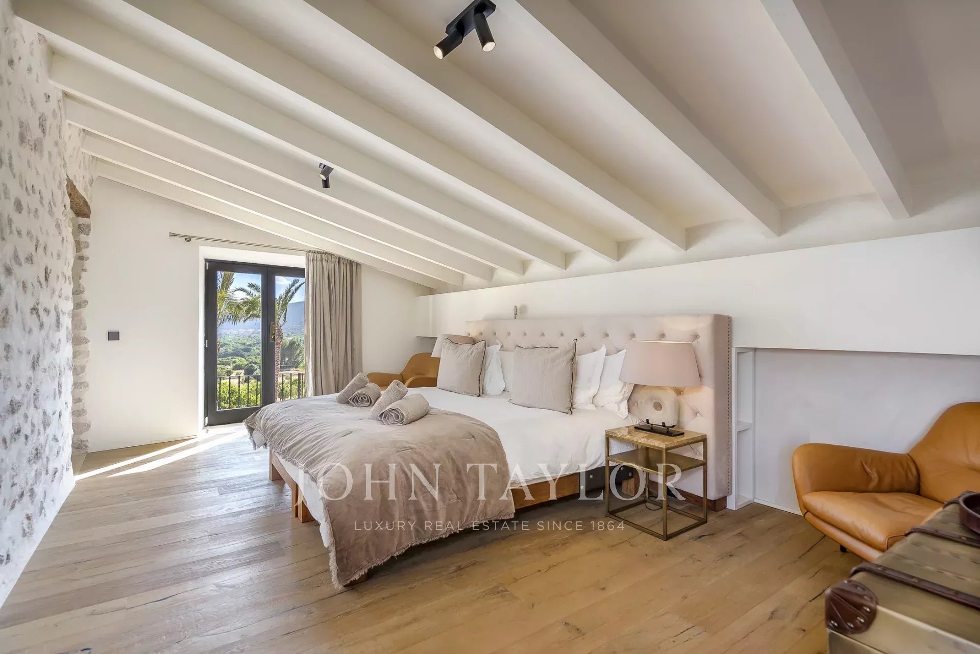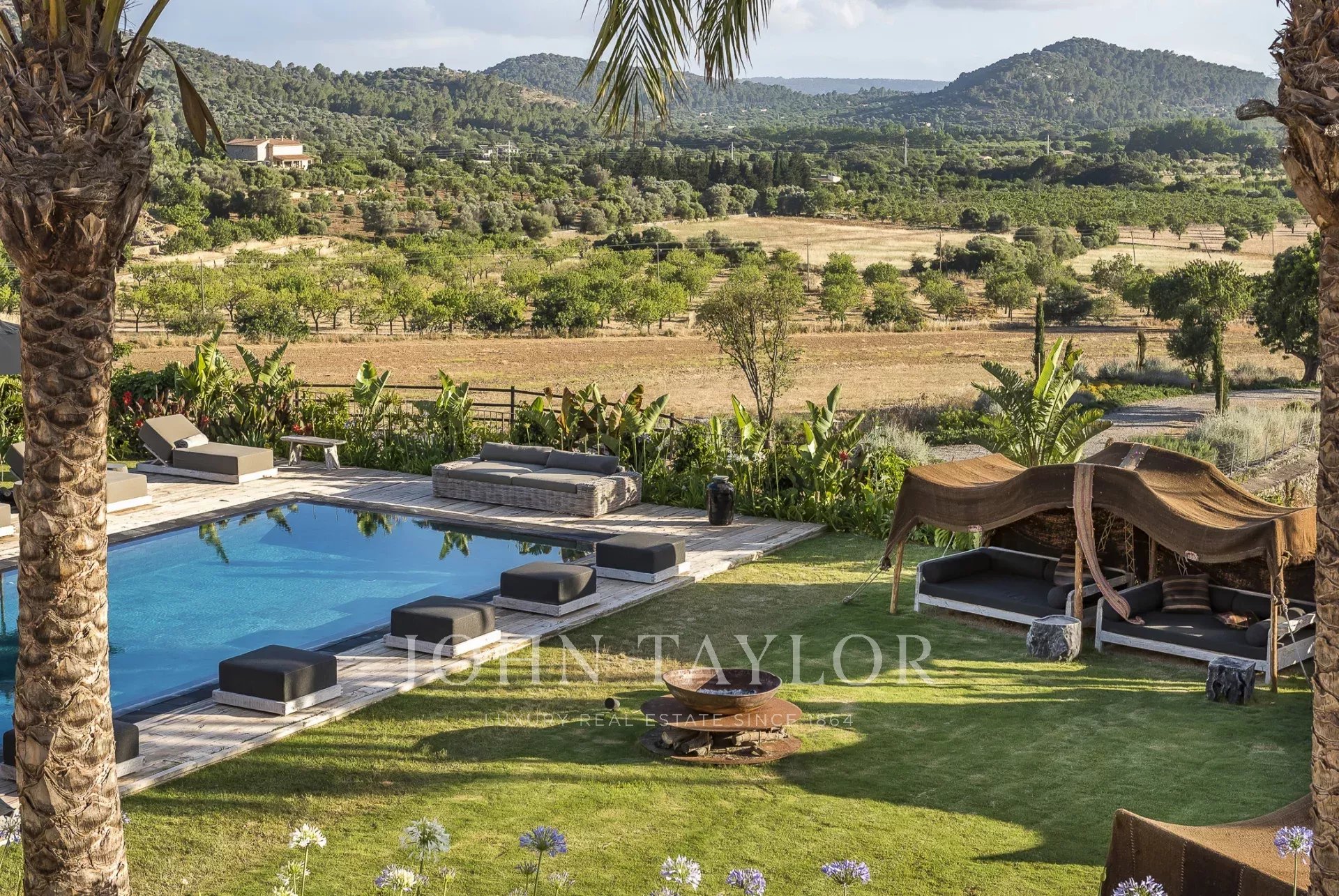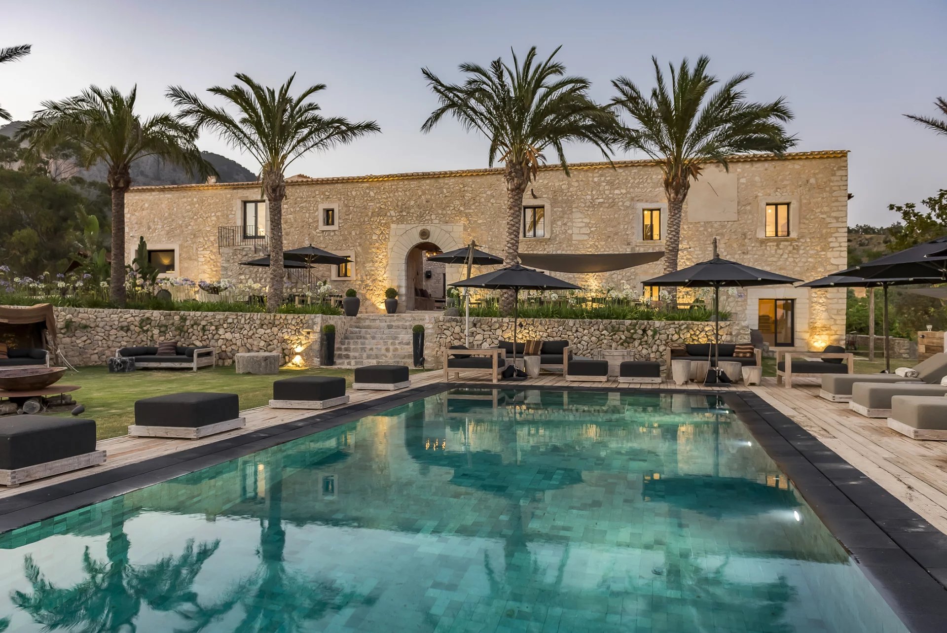 This unique property Spirit of Son Fuster offers visitors an exclusive service in a private luxury hotel. The finca hotel offers plenty of privacy and is ideal for business meetings or a stay with friends and family without compromise. Discreet service while maintaining privacy is available around the clock. The finca can accommodate up to 20 people in 10 double bedrooms. Each of the bedrooms has king-size beds, a bathroom en-suite and underfloor heating. Various dining rooms, conference rooms, cinema, spa area and a private nightclub offer plenty of variety. A professional chef fulfils the highest standards and adapts to each visitor individually. A rich, healthy and fresh food concept without compromising on quality awaits guests here. A large pool area with sun loungers and Moroccan Berber tents offers plenty of space to relax and sunbathe. The wellness area features a steam bath, an infrared sauna and a traditional sauna. Next to the shower area is a separate room for beauty treatments and massages. Jogging tracks and hiking trails are located around the property. A well-equipped fitness room and a private paddle court are also available.