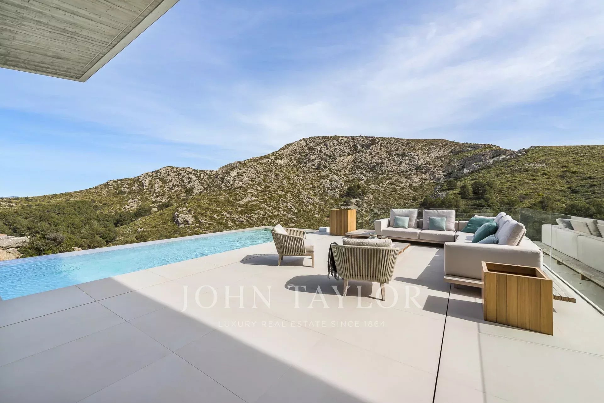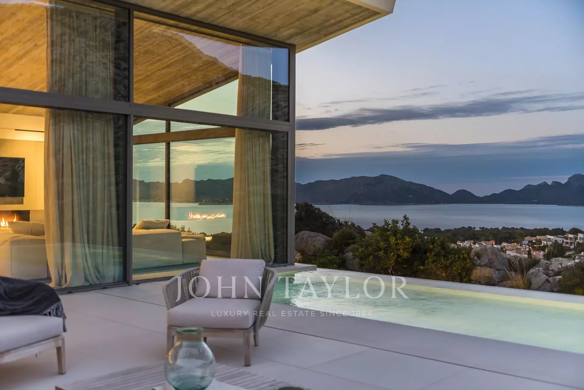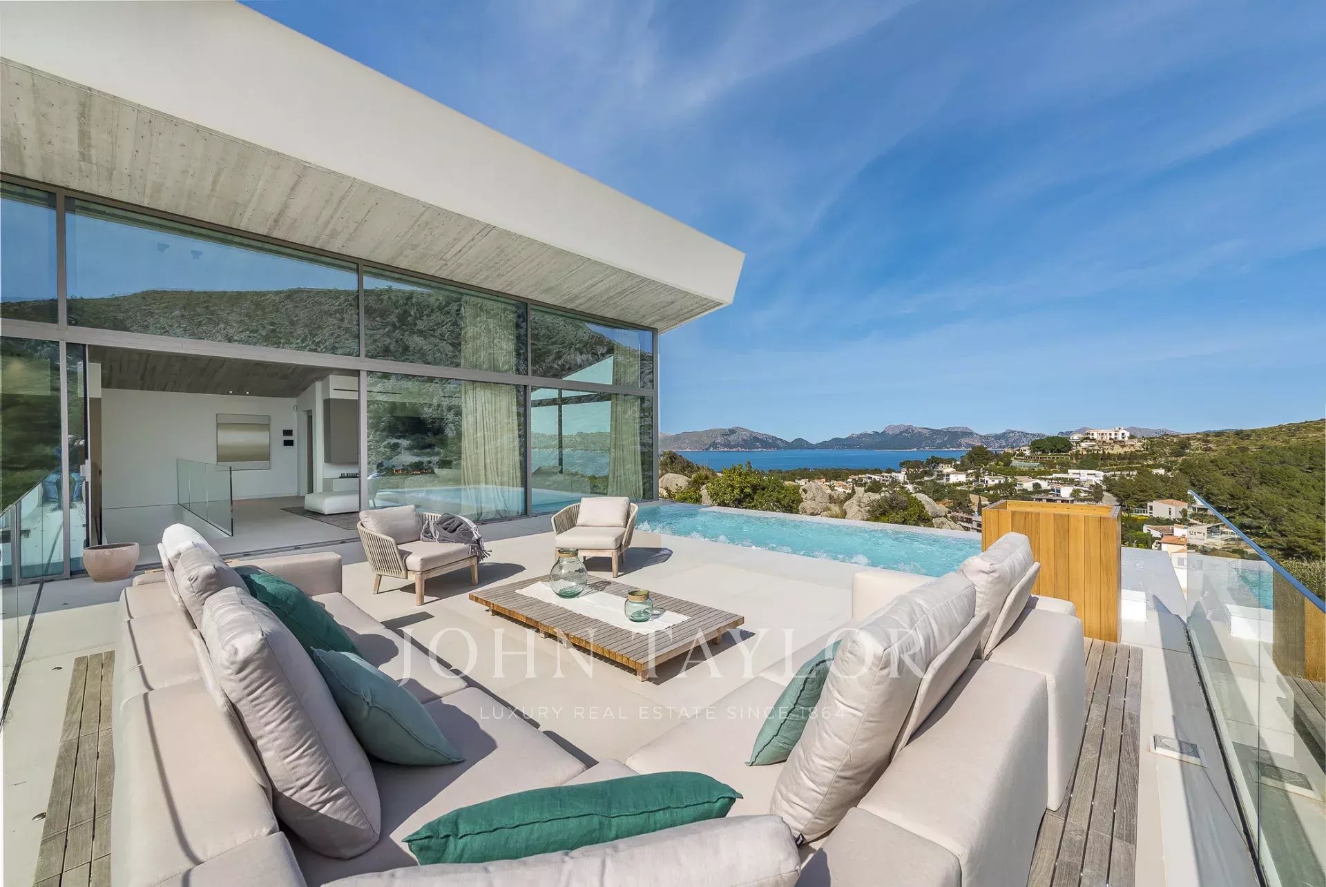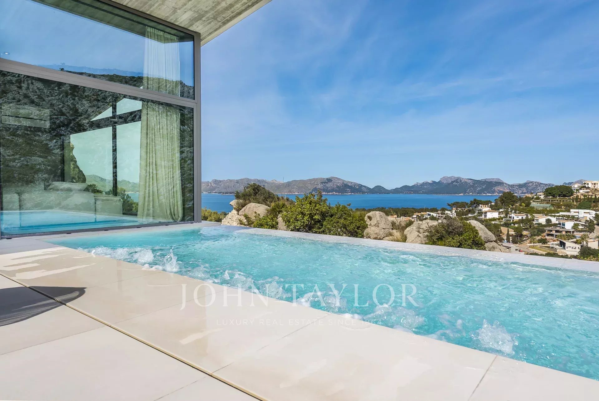 This modern villa with its 4 double bedrooms offers space for up to 8 people. Situated in an upscale residential area, you can enjoy a fantastic sea view over the bay of Pollensa and Alcudia.