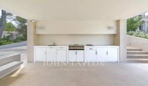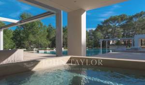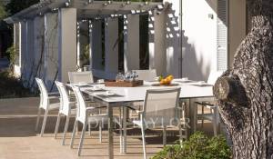 Los Leones, a jewel between Alcudia and Pollensa with space for up to 20 people. Our residence is spread over an impressive main house (16 people) and a charming annexe (4 people) that creates space for larger groups. In the main house you will find a first-class equipped kitchen with a spacious dining area for 12 people, a cosy media room with state-of-the-art technology, wireless internet, smart-home equipment and individually adjustable air-conditioning for your ultimate comfort. The adjoining annexe (can be booked additionally) offers space for up to 4 guests and provides a cosy ambience with underfloor heating in the cooler months. Step across the spacious terrace, which includes a generous dining area for 20 people and a charming garden, to the pool level. Here you will find a heated saltwater pool, a sun terrace with loungers and a covered Jacuzzi. Our residence is a work of art in Mallorcan design and is popular for family celebrations and corporate events.