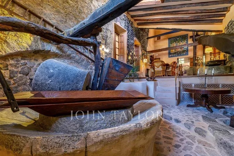 The origin of the house was as a working olive farm. The oil press, now the dining room, still contains the large stone pieces that served as the various elements of the pressing system and oil storage vats. The date on the pillar of the oil press is 1681. The house was built around the authentic courtyard with the well in the middle. This was very much the heart of the house.