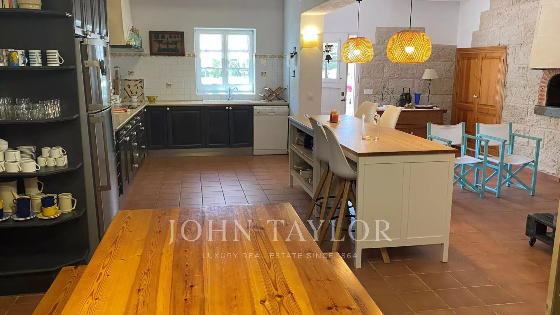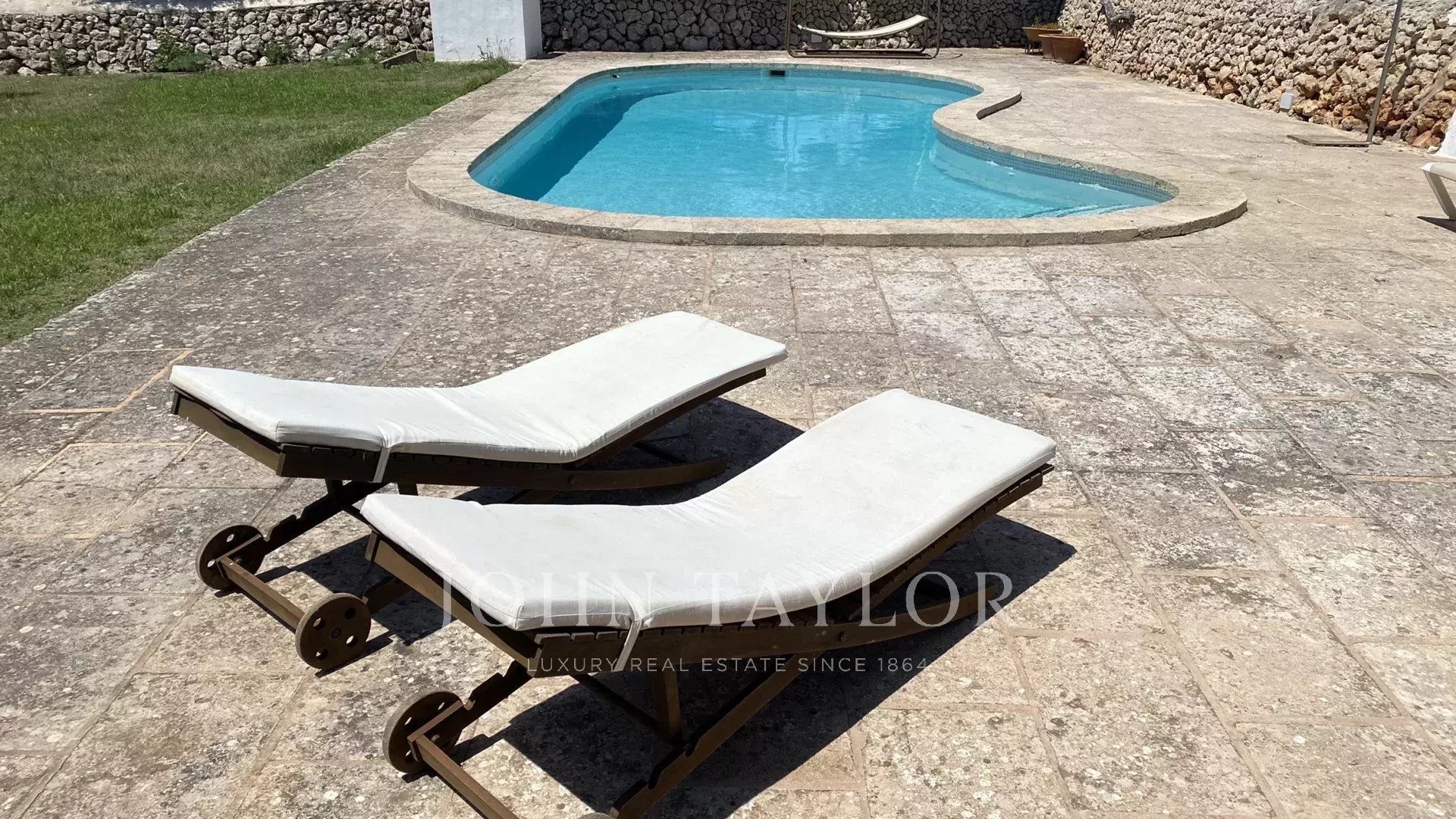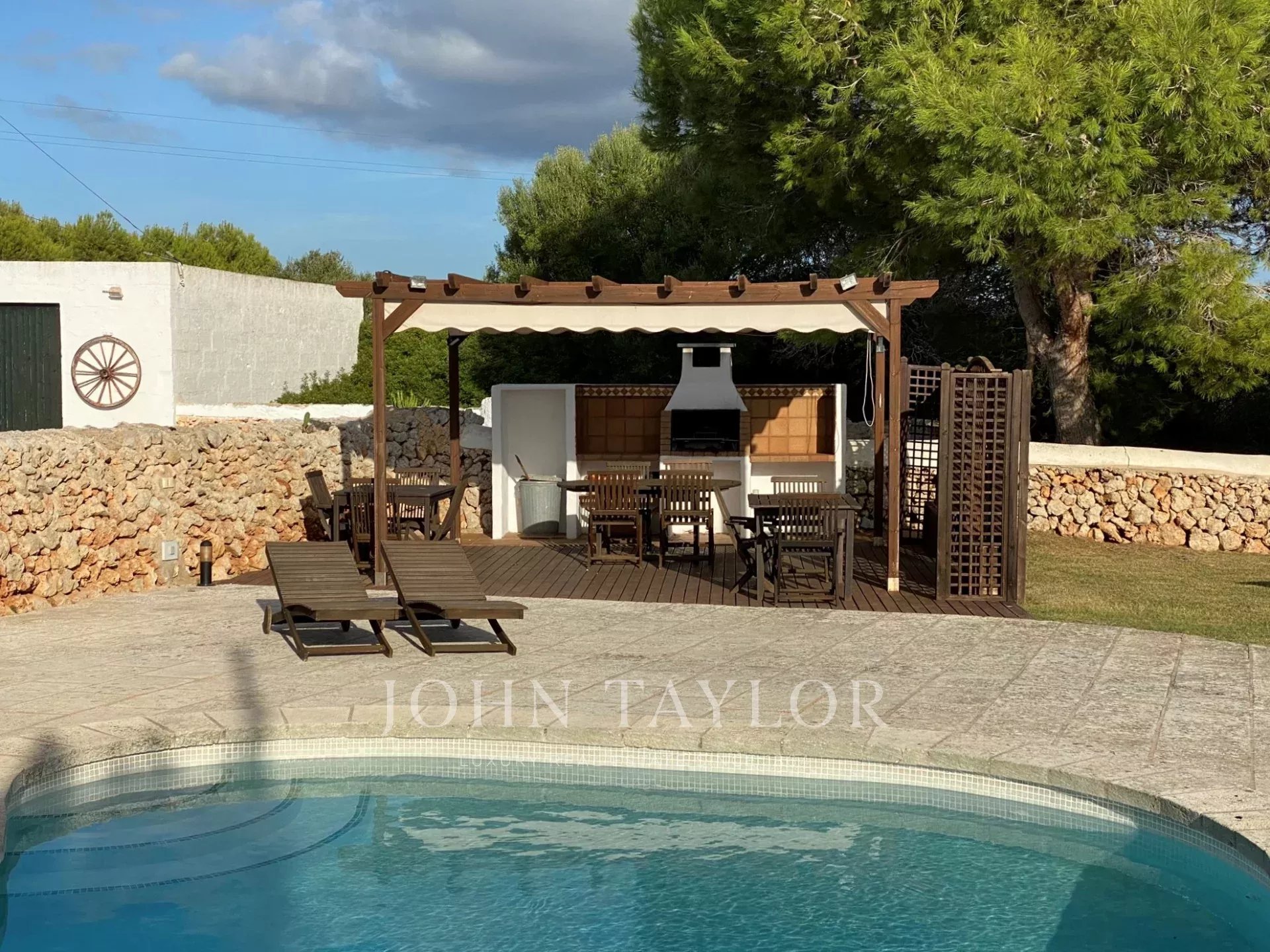 The property is in the countryside, which guarantees privacy and tranquility. Next to the entrance of the house there is a fenced area with a seesaw, and then there is the pool area, surrounded by a terrace floor, where there is also a pergola with table and chairs and a barbecue. Next to it there is a large lawn area with natural shade. From the kitchen there is also access to an area with table and chairs and a large umbrella.