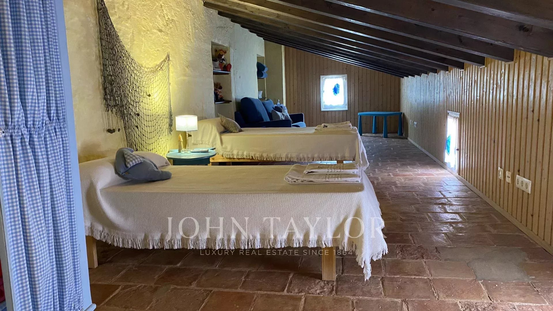 Second floor: living room with beautiful sea views, 1 double bedroom with air conditioning and 1 twin bedroom (which can be connected), another double bedroom and 1 full bathroom.