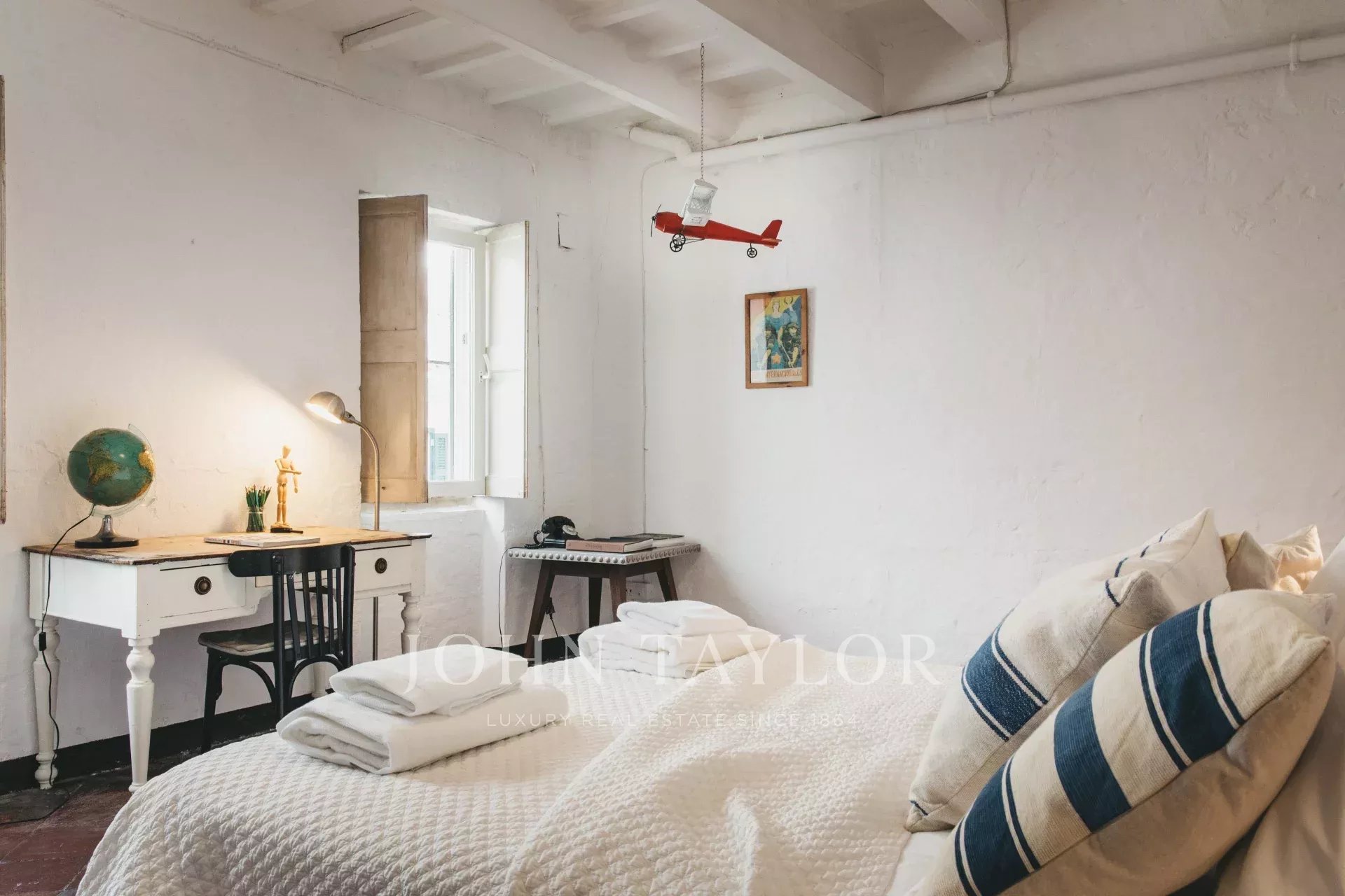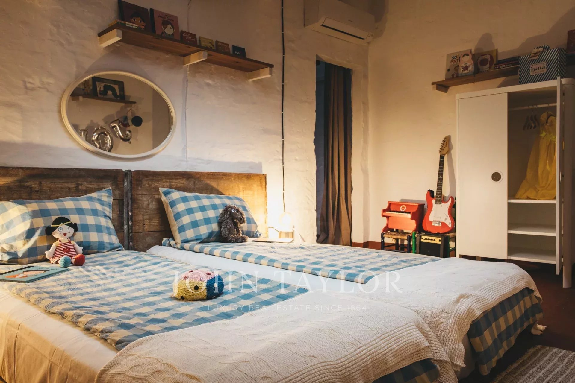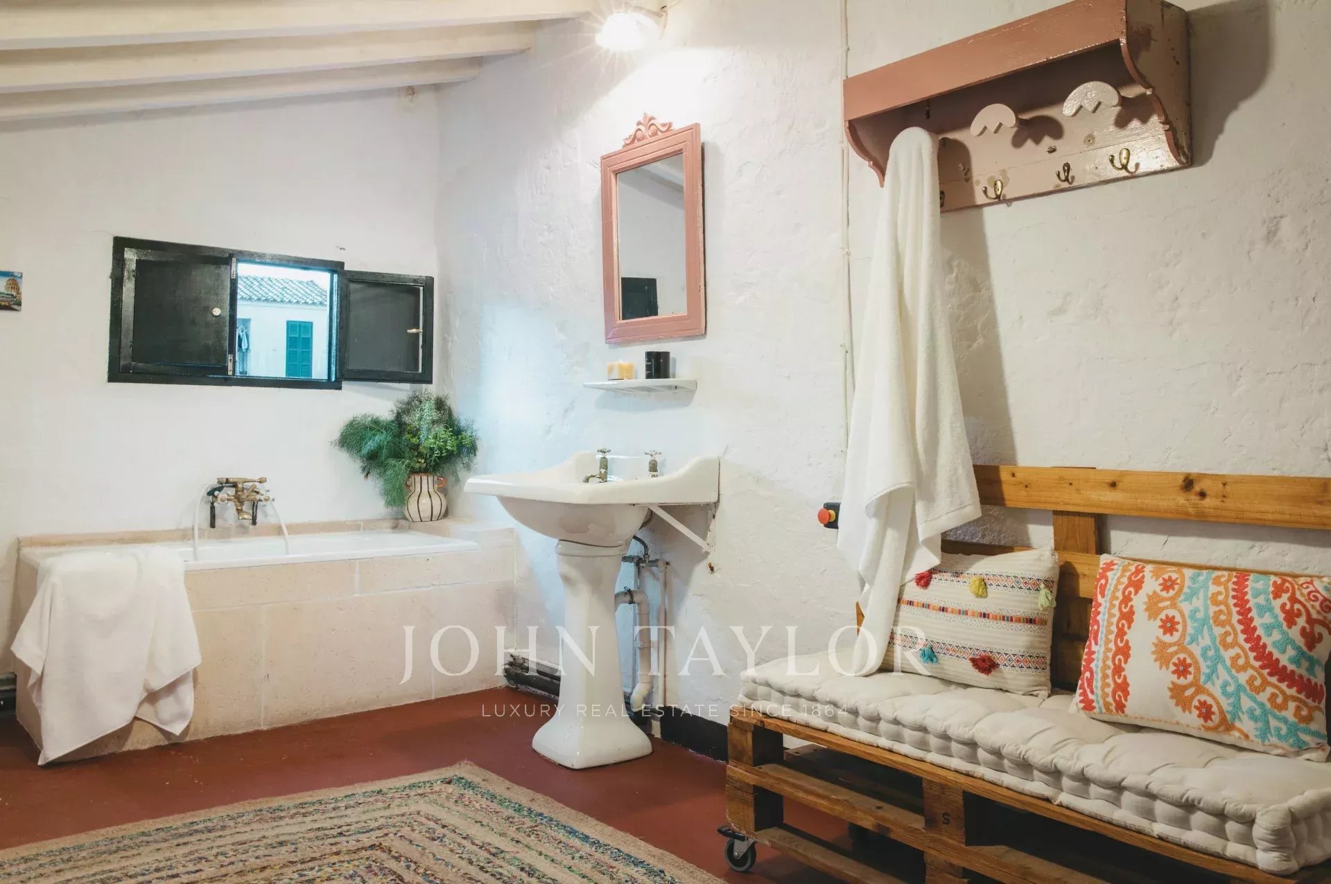 Distributed over several floors, the property offers five spacious double bedrooms, all with en-suite bathrooms and design details that enhance its elegance: from antique-style bathtubs to a charming children's attic with its own bathroom. The common areas -such as the living room with fireplace, the classically inspired dining room and the fully equipped Menorcan kitchen- invite you to enjoy memorable moments in a cozy environment full of personality.