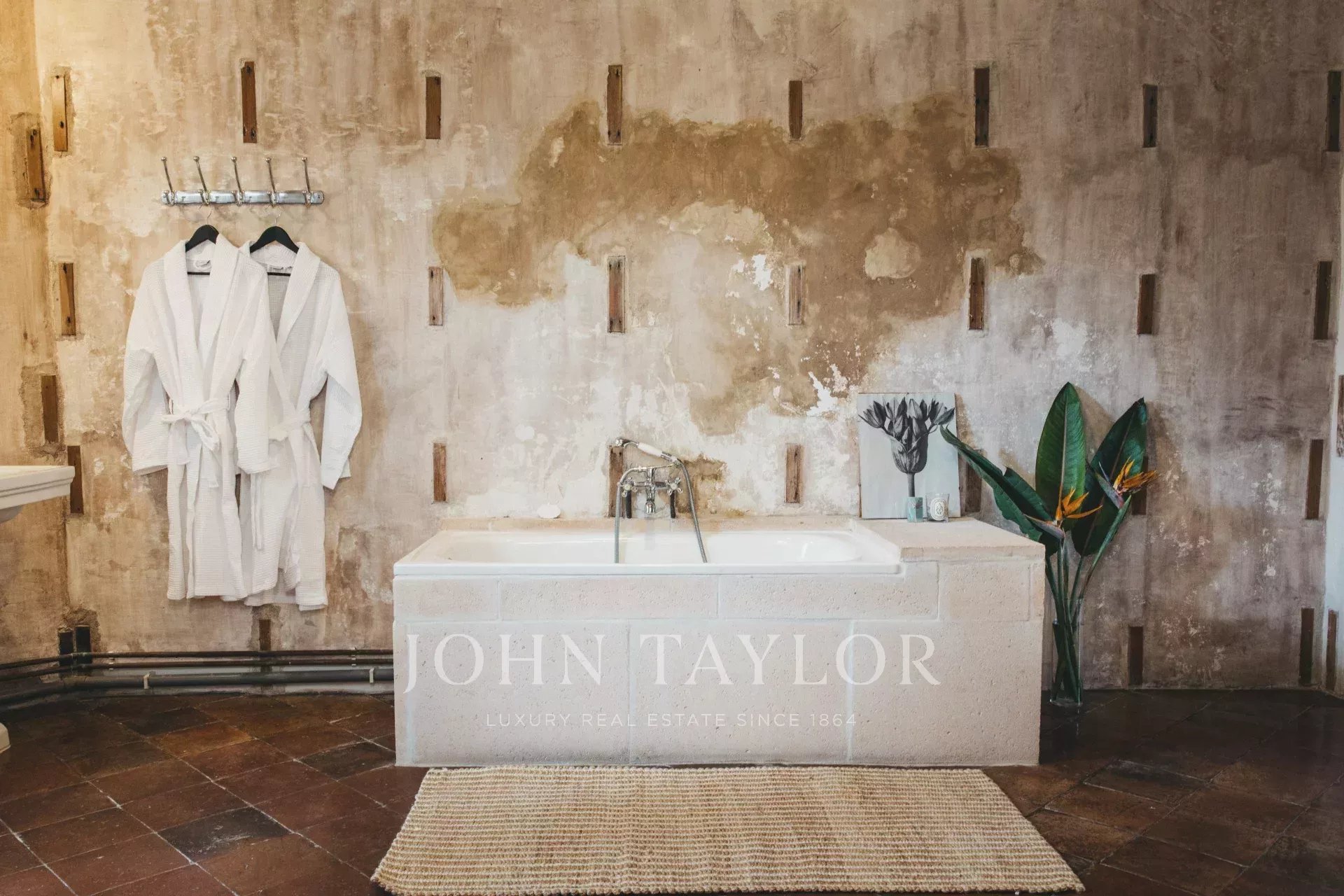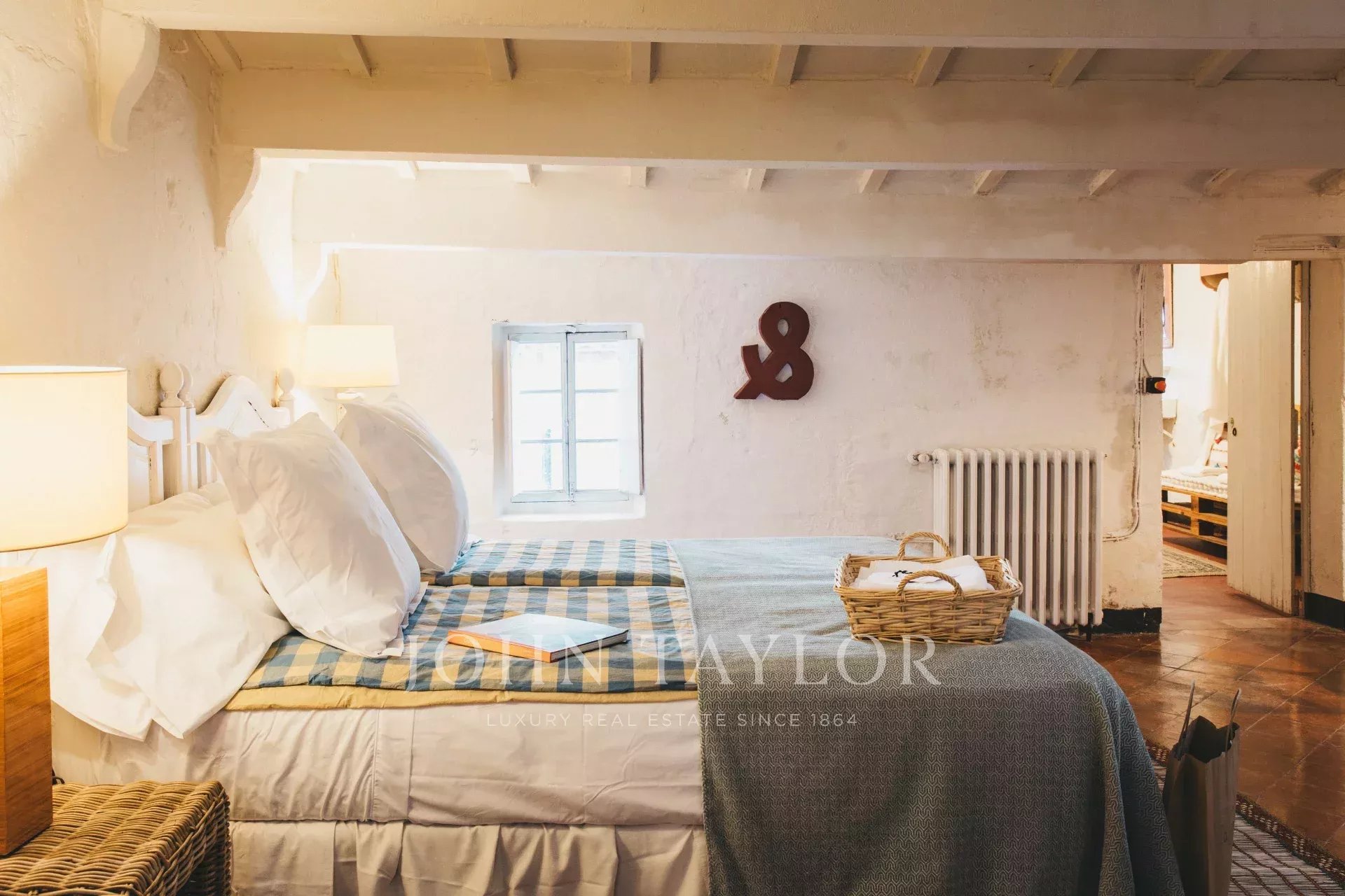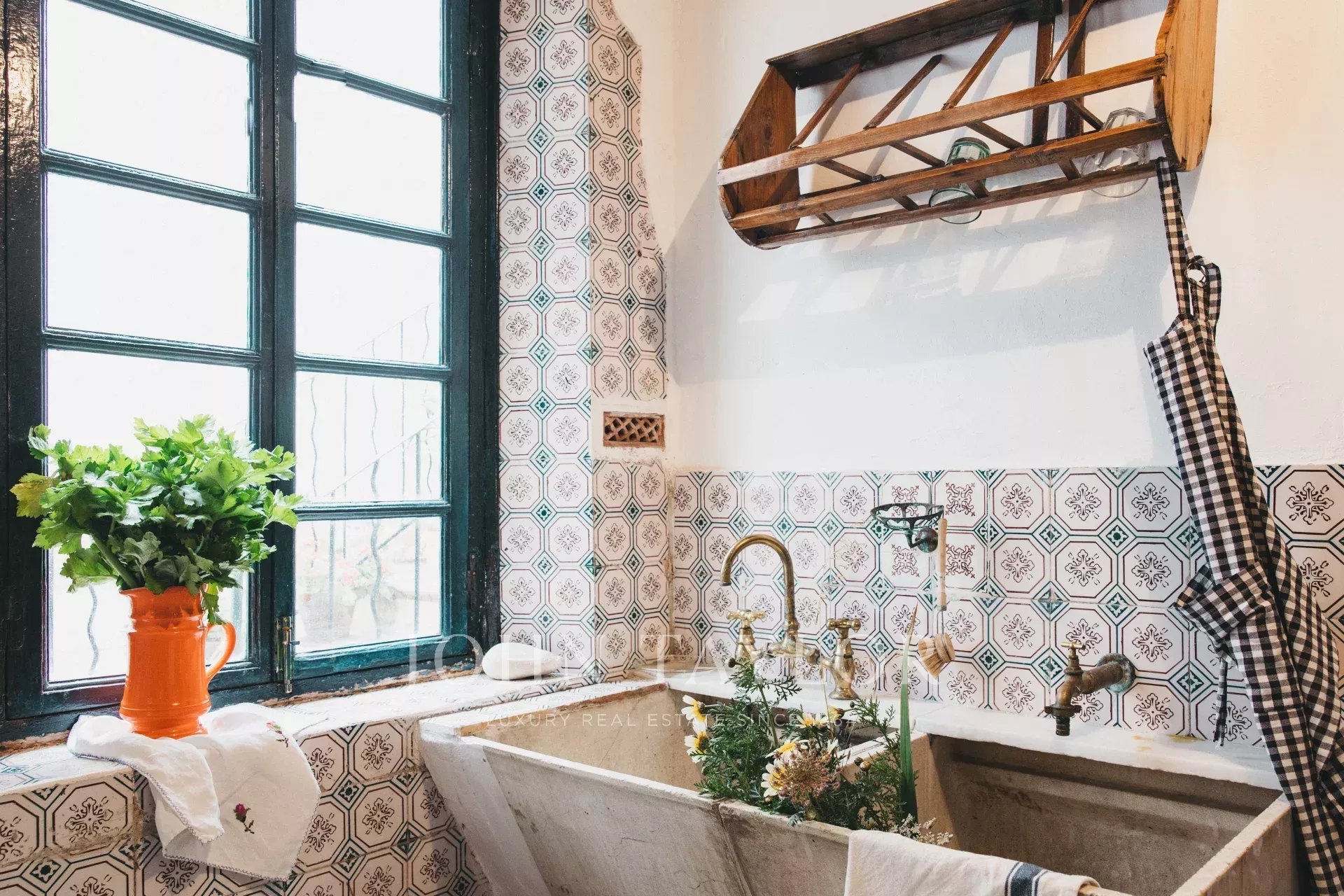 Distributed over several floors, the property offers five spacious double bedrooms, all with en-suite bathrooms and design details that enhance its elegance: from antique-style bathtubs to a charming children's attic with its own bathroom. The common areas -such as the living room with fireplace, the classically inspired dining room and the fully equipped Menorcan kitchen- invite you to enjoy memorable moments in a cozy environment full of personality.