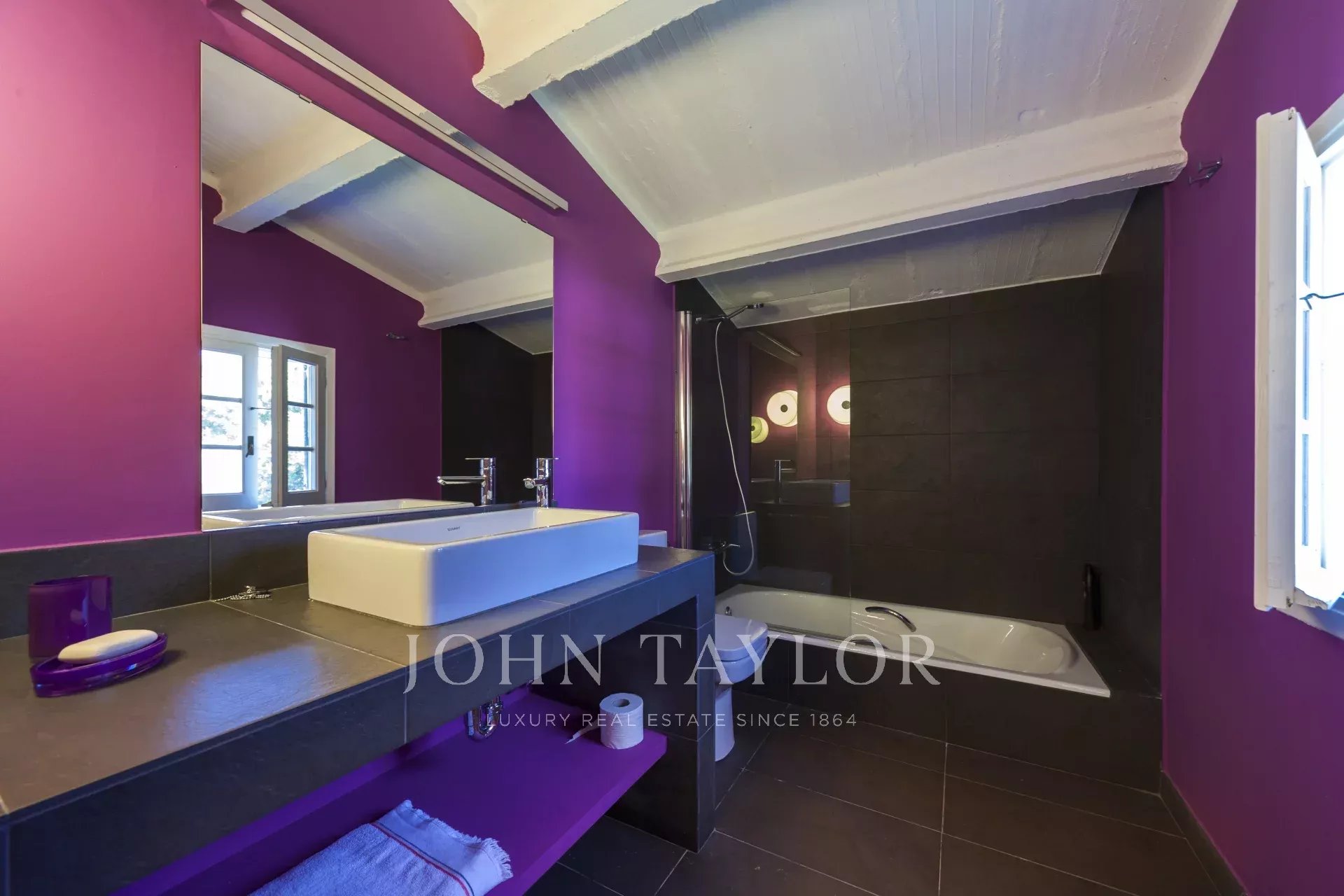 Exterior: The property has 10,000 square meters with gardens and relaxation areas in the sun or shade. The pool, 18m x 4m, is surrounded by a terrace and has beautiful sea views across the countryside. Near the pool, there is a petanque court with a table and chairs, and a lawn garden. The main porch is furnished with large sofas and a large table with chairs for al fresco dining. Each annex has a small porch furnished with a table and chairs. There is outdoor parking for 3 vehicles.