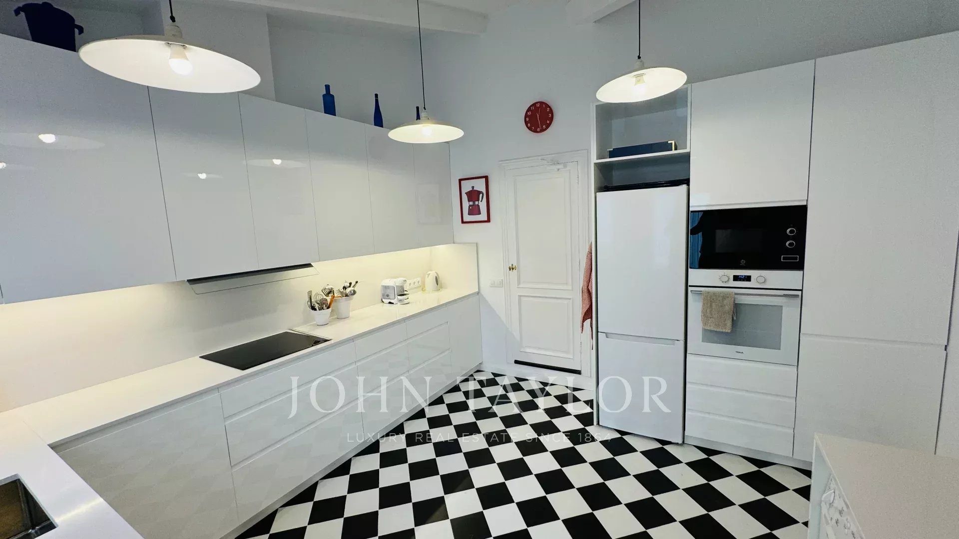 In the vitroceramic independent kitchen, refrigerator, microwave, oven, freezer, dishwasher, dishes/cutlery, kitchen utensils, coffee machine, toaster, kettle and juicer are provided.