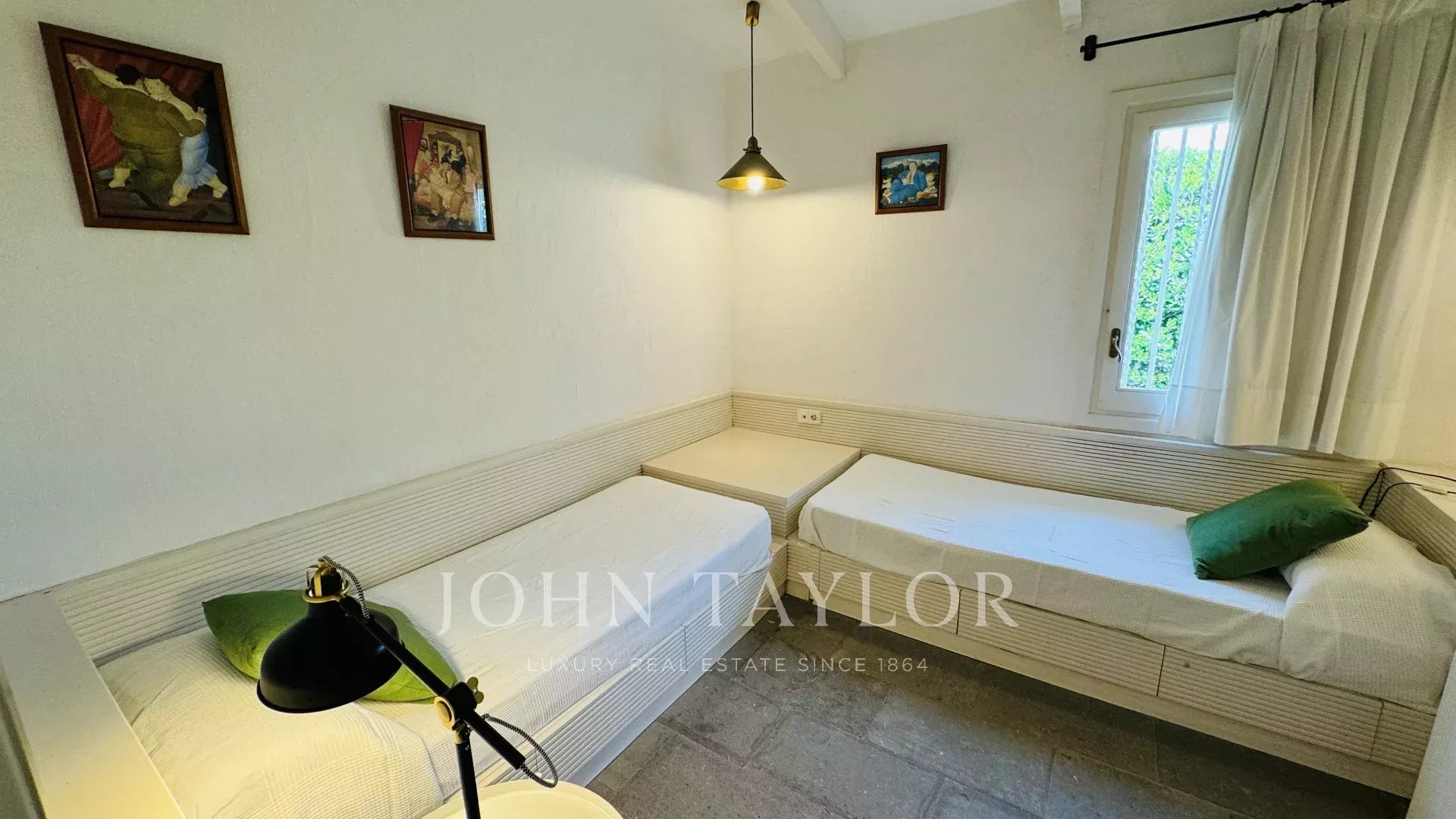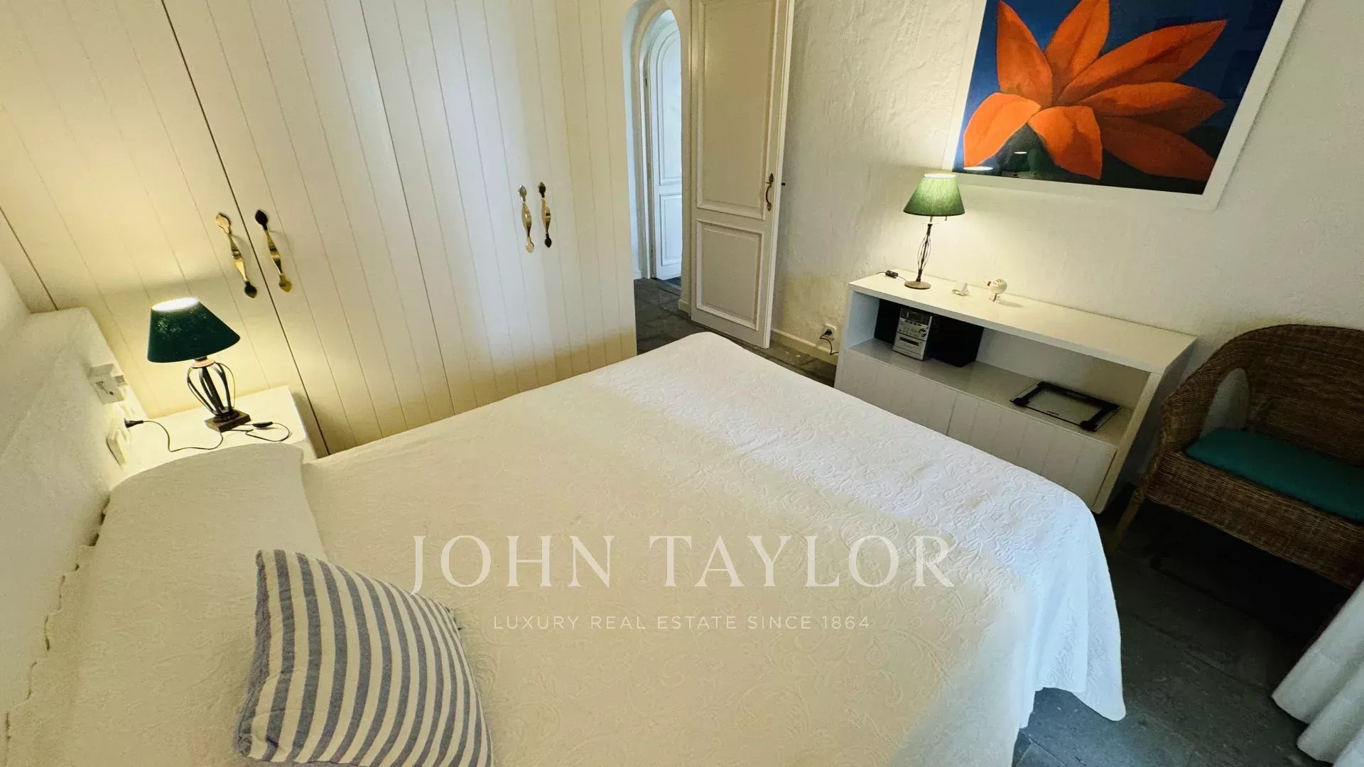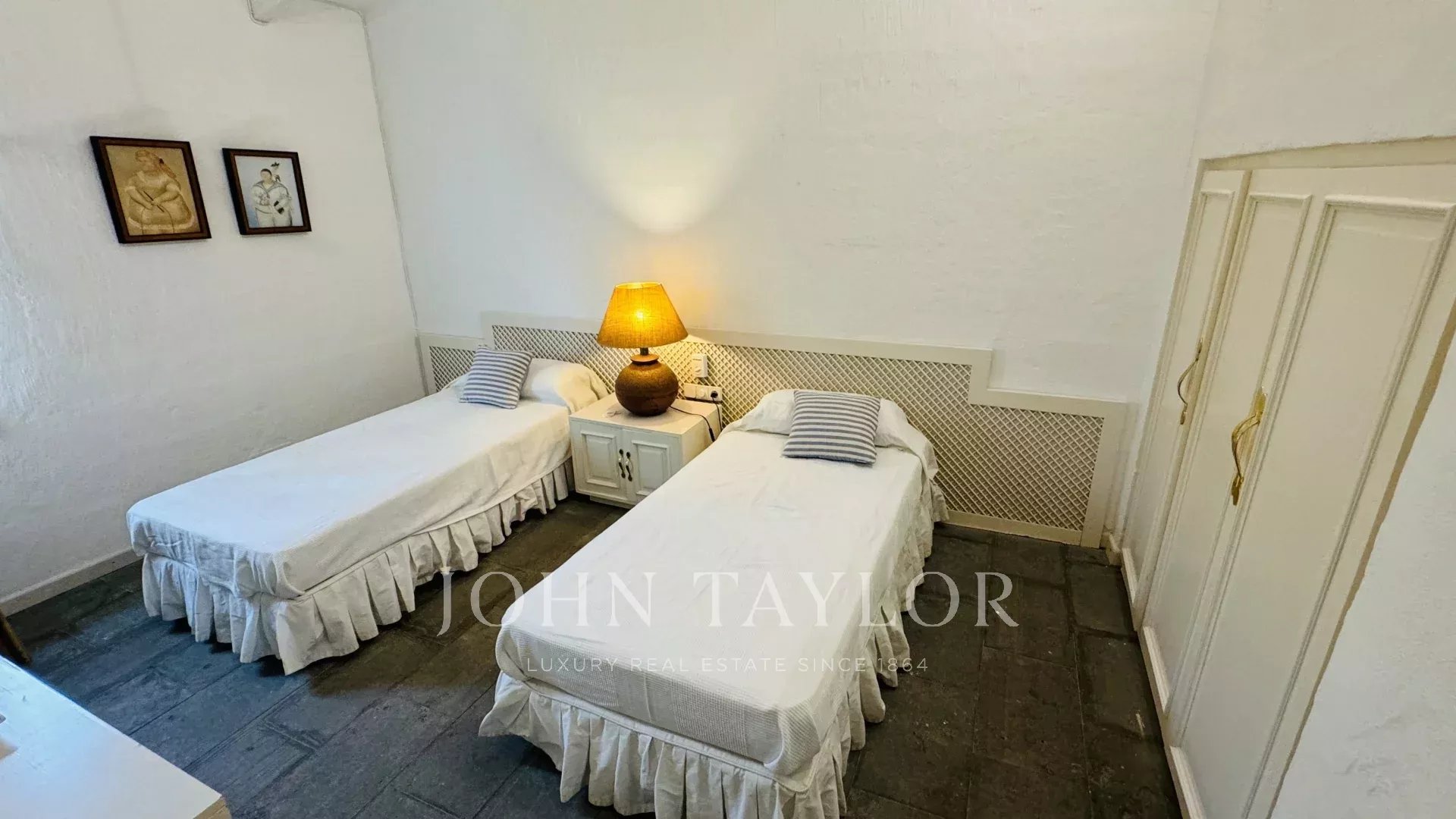 It has 3 bathrooms and 4 bedrooms with 2 double beds and 4 single beds in total, with capacity for 8 people.