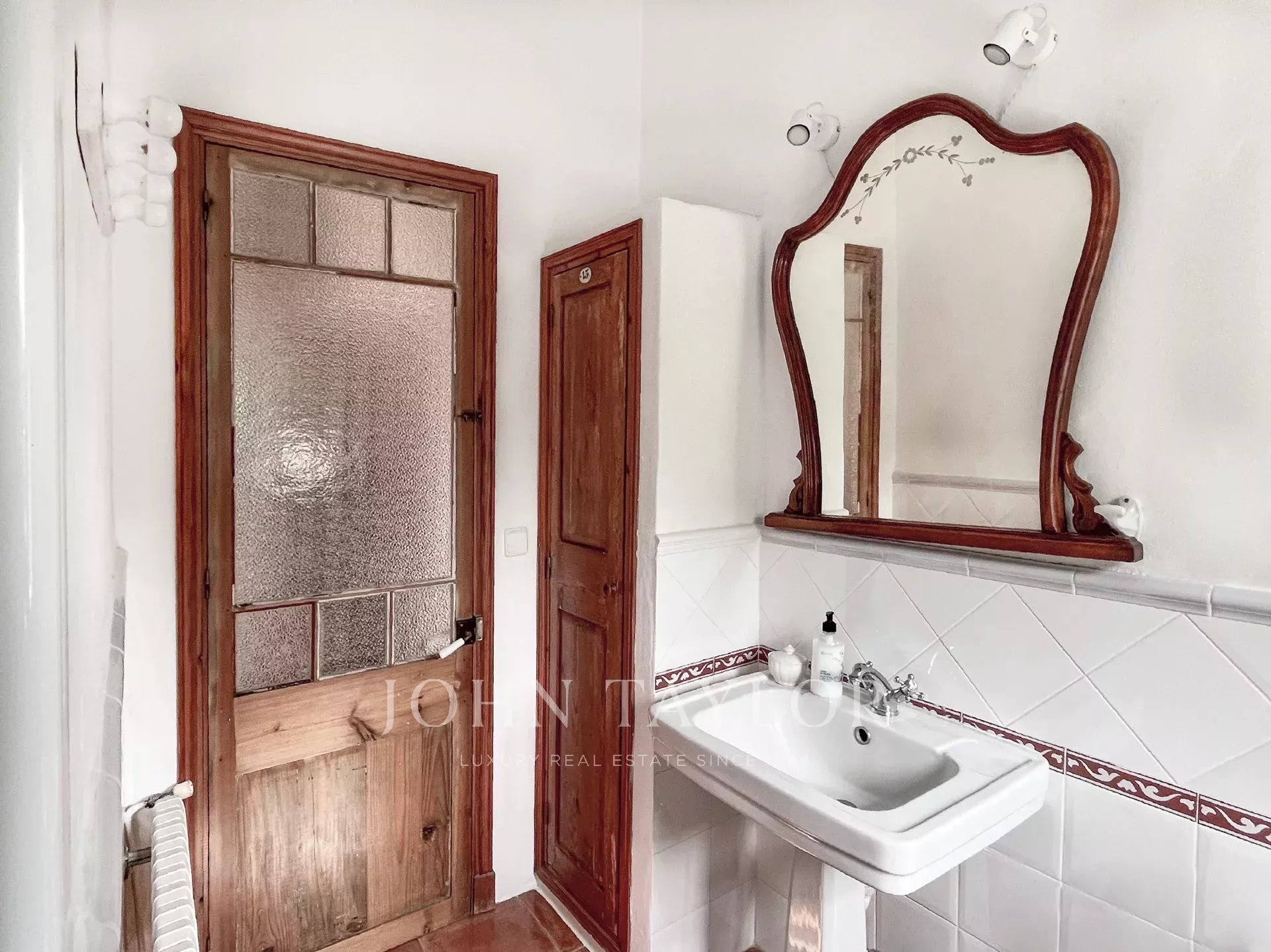 First Floor: 1 double bedroom (1.60m) with AC and en-suite full bathroom, and 1 double bedroom (1.50m) with AC and en-suite bathroom with shower. Both bedrooms have access to a terrace with beautiful countryside views. All bedrooms have ceiling fans.