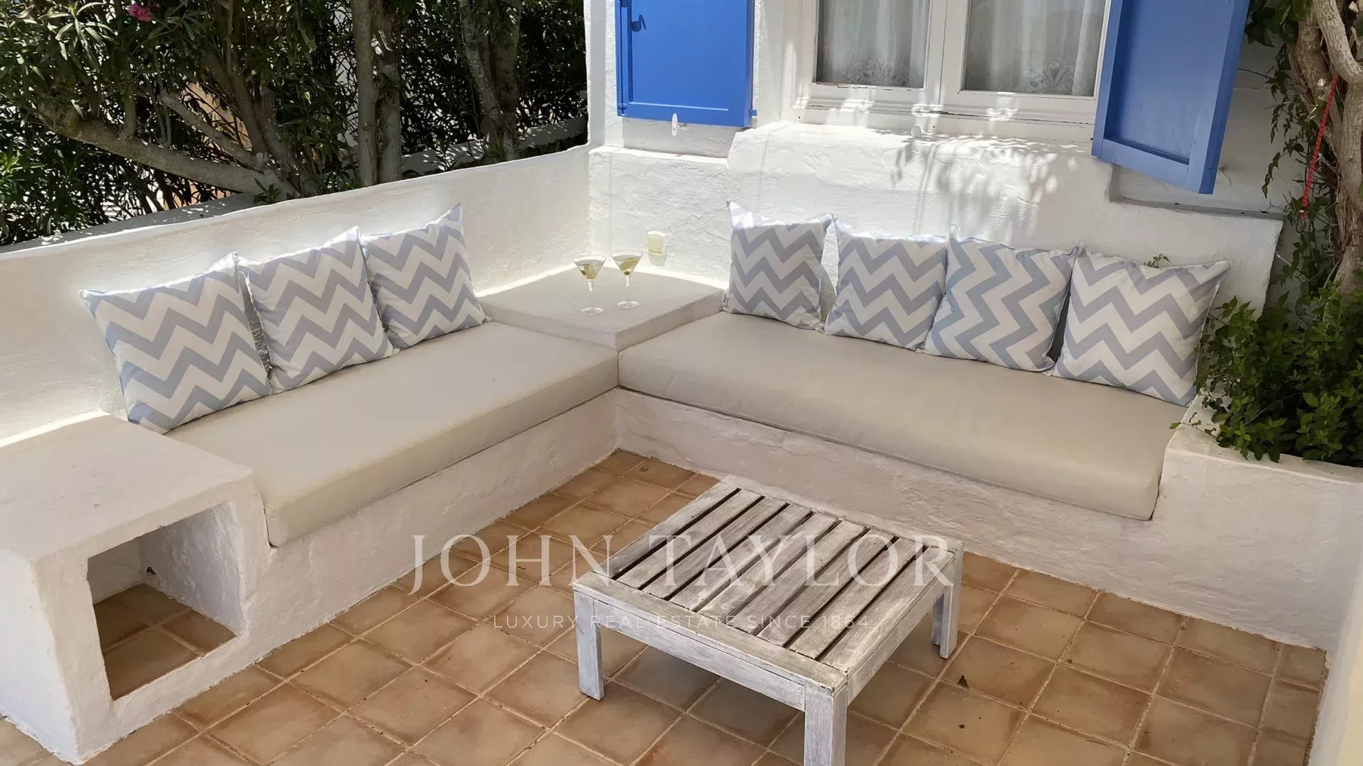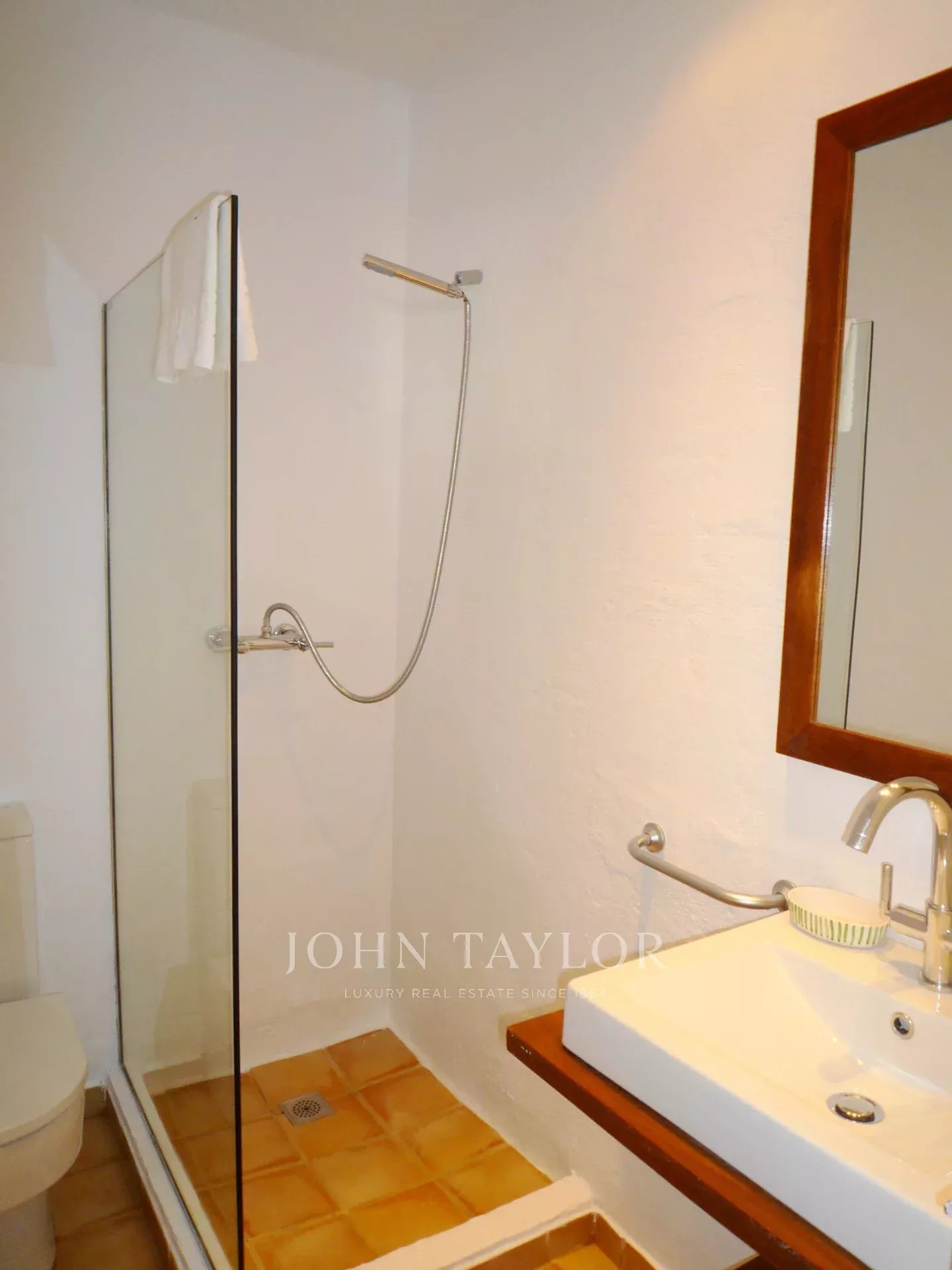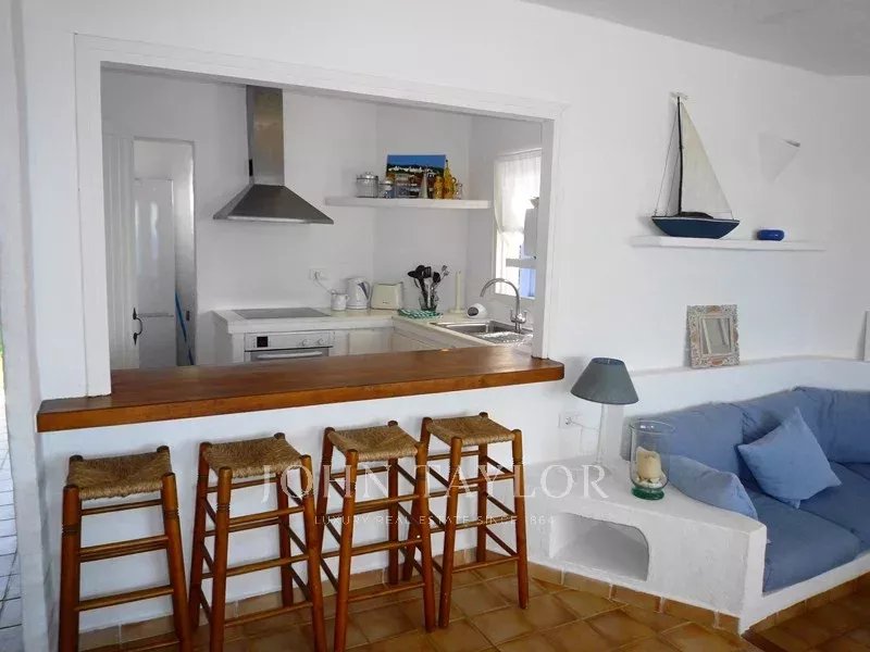 Property on the front line, about 10 meters from the sea. Binissafua beach is a 5-minute walk from the house and Binibeca is a 5-minute drive away. The towns of Sant Lluís or Sant Climent are an 8-minute drive away.