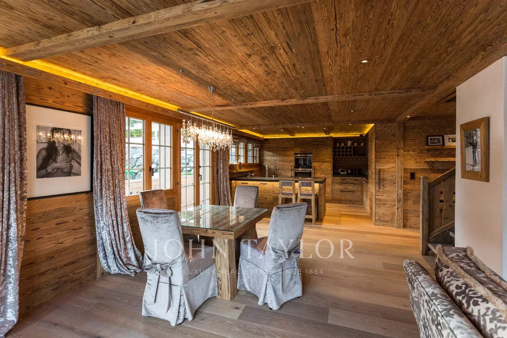 This luxurious Chalet is situated in Grund, very near the Eggli pistes. It has been meticulously constructed in old wood in a contemporary style. There are beautiful spacious living areas, 6 bedrooms, 4 bathrooms, 3 kitchens, as well as sauna and hammam. There is the possibility to build a pool or to extend the living space through underground. The Chalet is a 12 minute walk into Gstaad.