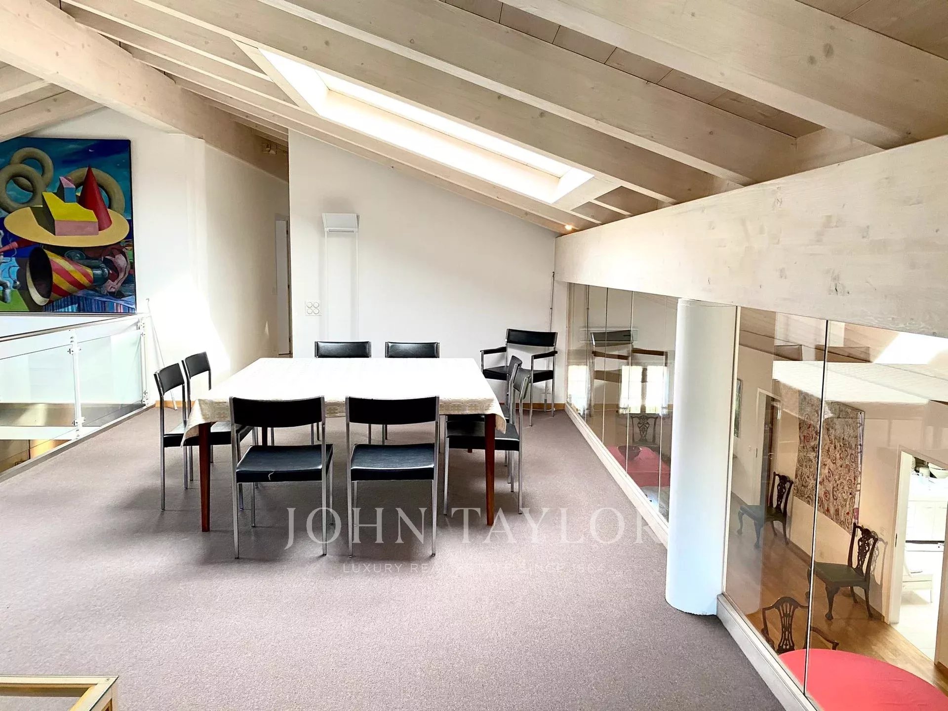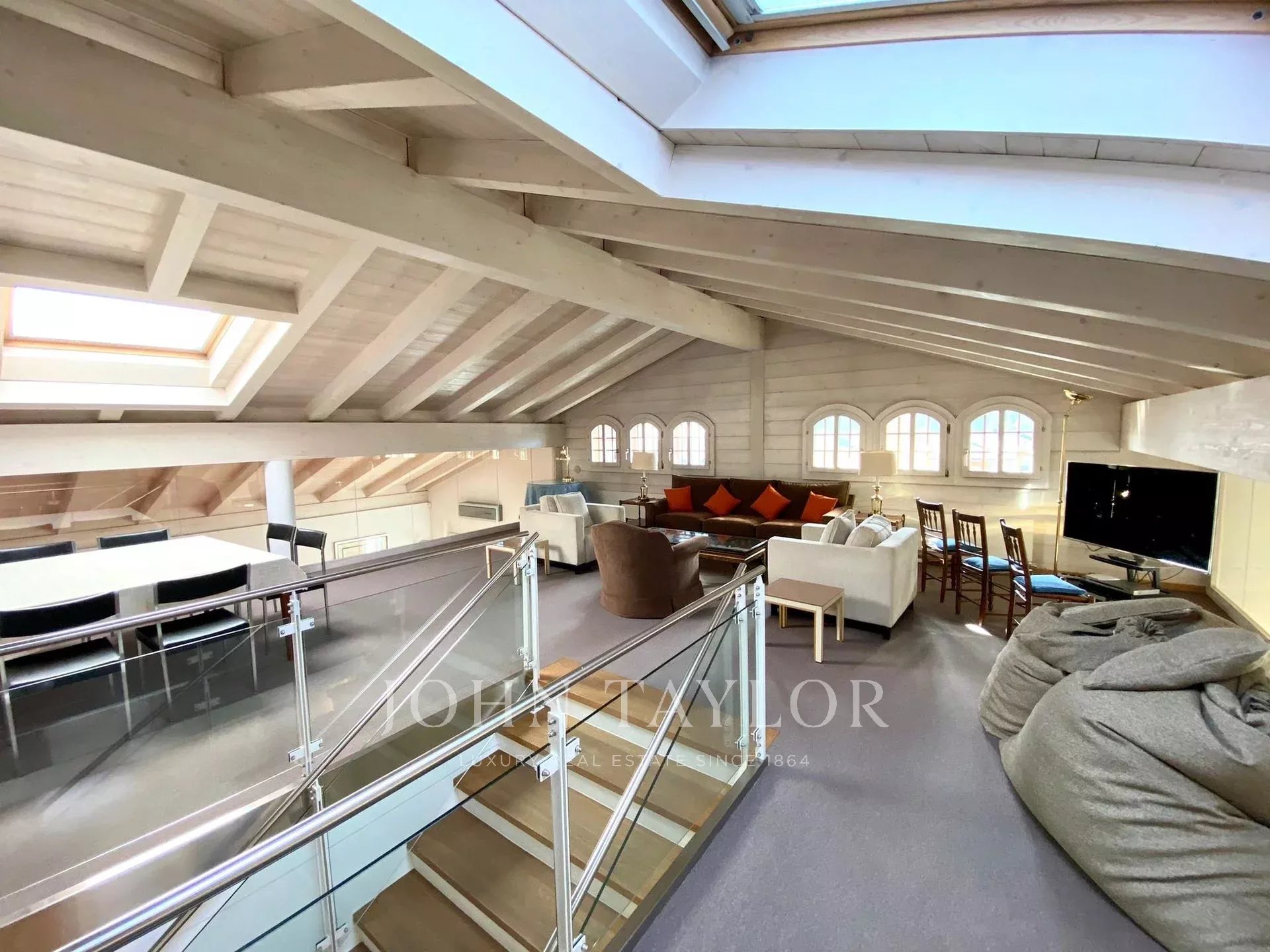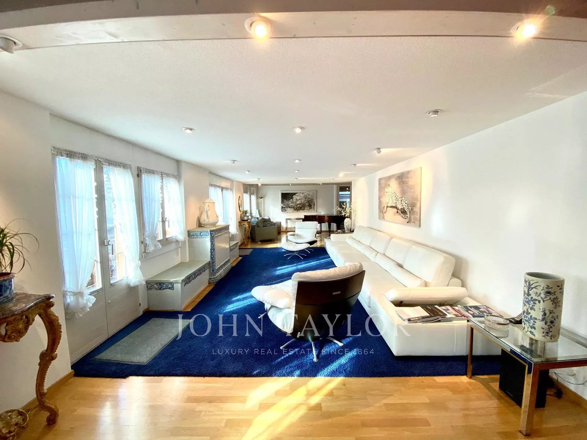 Very beautiful and spacious 7 bedrooms apartment with 5 bathrooms, located in the center of Gstaad, above the Migros supermarket. The apartment has a big entrance hall with 2 living/sitting rooms, a guest toilet, a very big dining room and a open kitchen and 5 bedrooms on one floor. On the second floor (attic) are 2 bedrooms 1 with en-suite bathroom, a big TV/sitting-room and a laundry room. A balcony and 4 parking spaces complete this property.