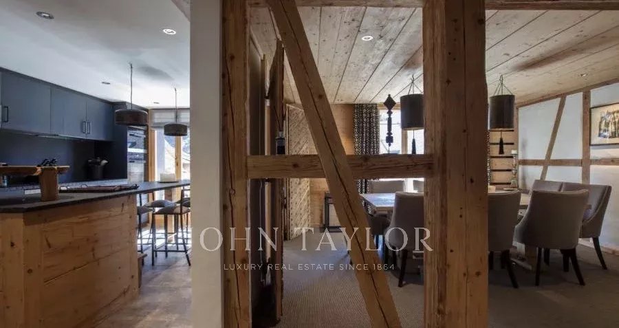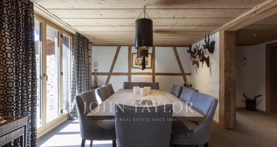 The apartment spreads over 3 floors, and affords wonderful views over the roof tops of the Gstaad village and across to the renowned Gstaad Palace.