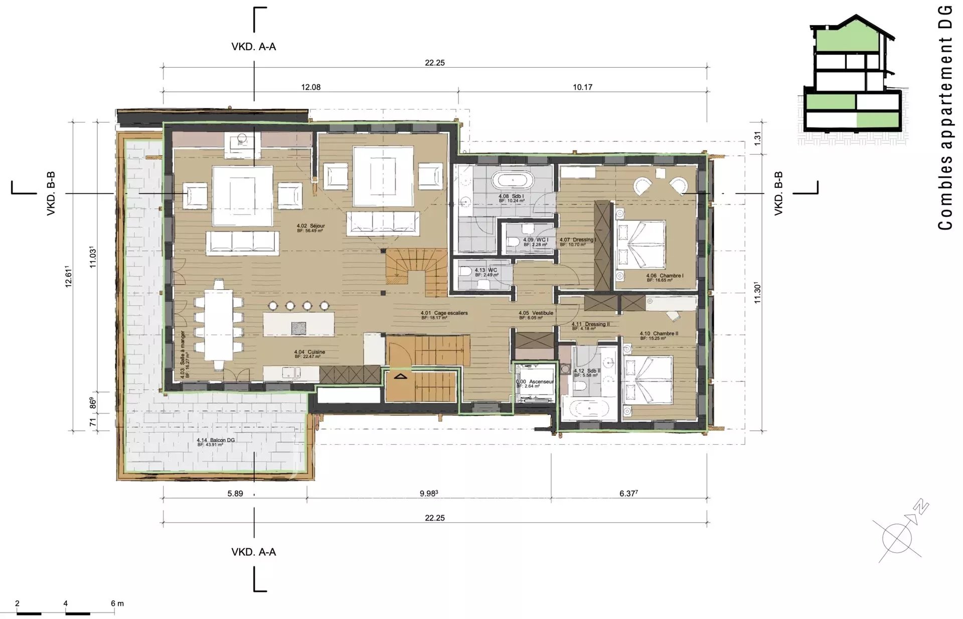 Spacious 220sqm new apartment on the last floor in new Chalet on Gstaad Promende.