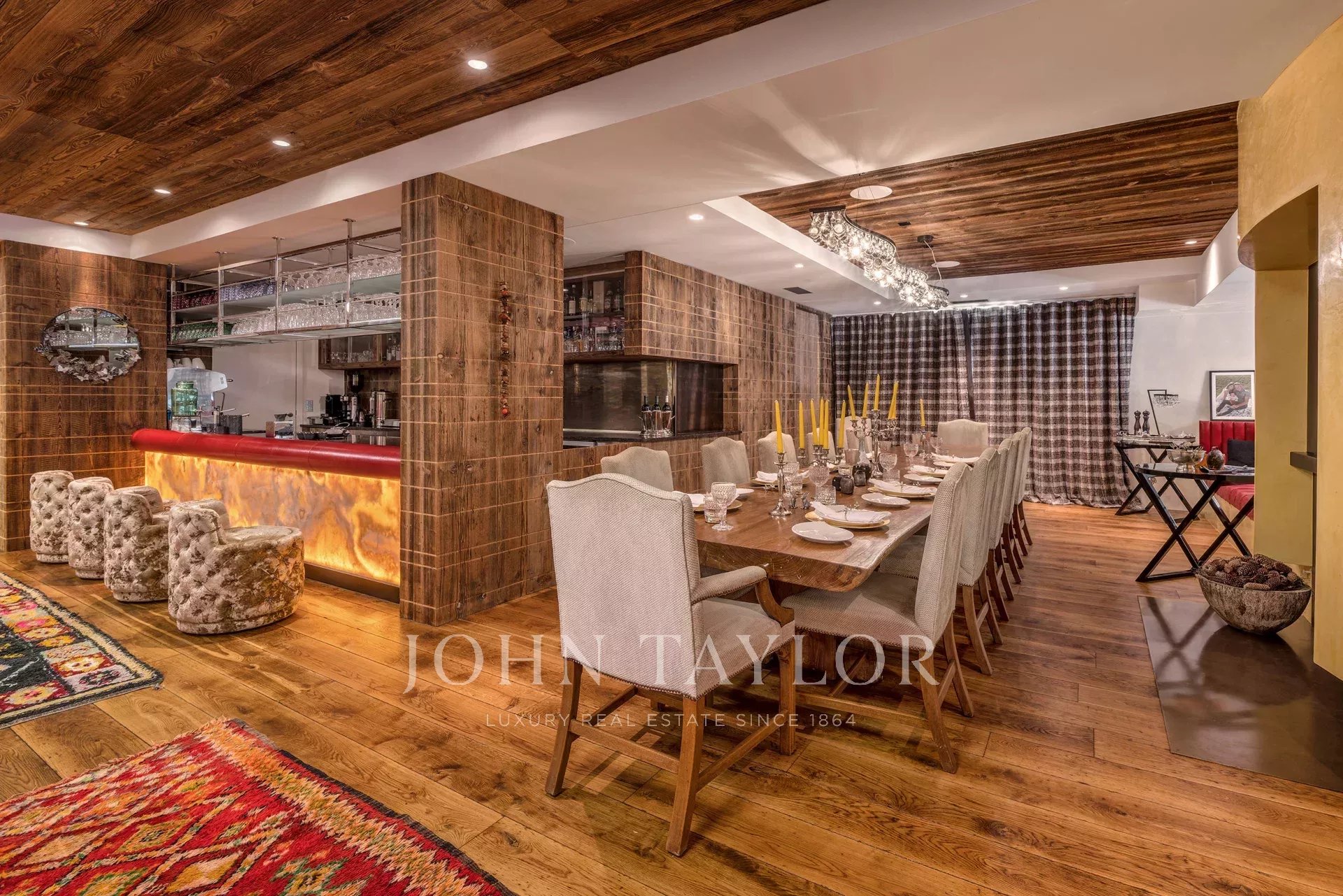 Featuring four fully independent luxury apartments, a living & dining room for 30 guests, a cinema and games room, a professional kitchen, a private spa, a sauna, an indoor swimming pool and a reception hall, this exclusive chalet offers multiple possibilities: either as a private residence, or as a "luxury chalet for rent" for 24 guests and 8 staff members.