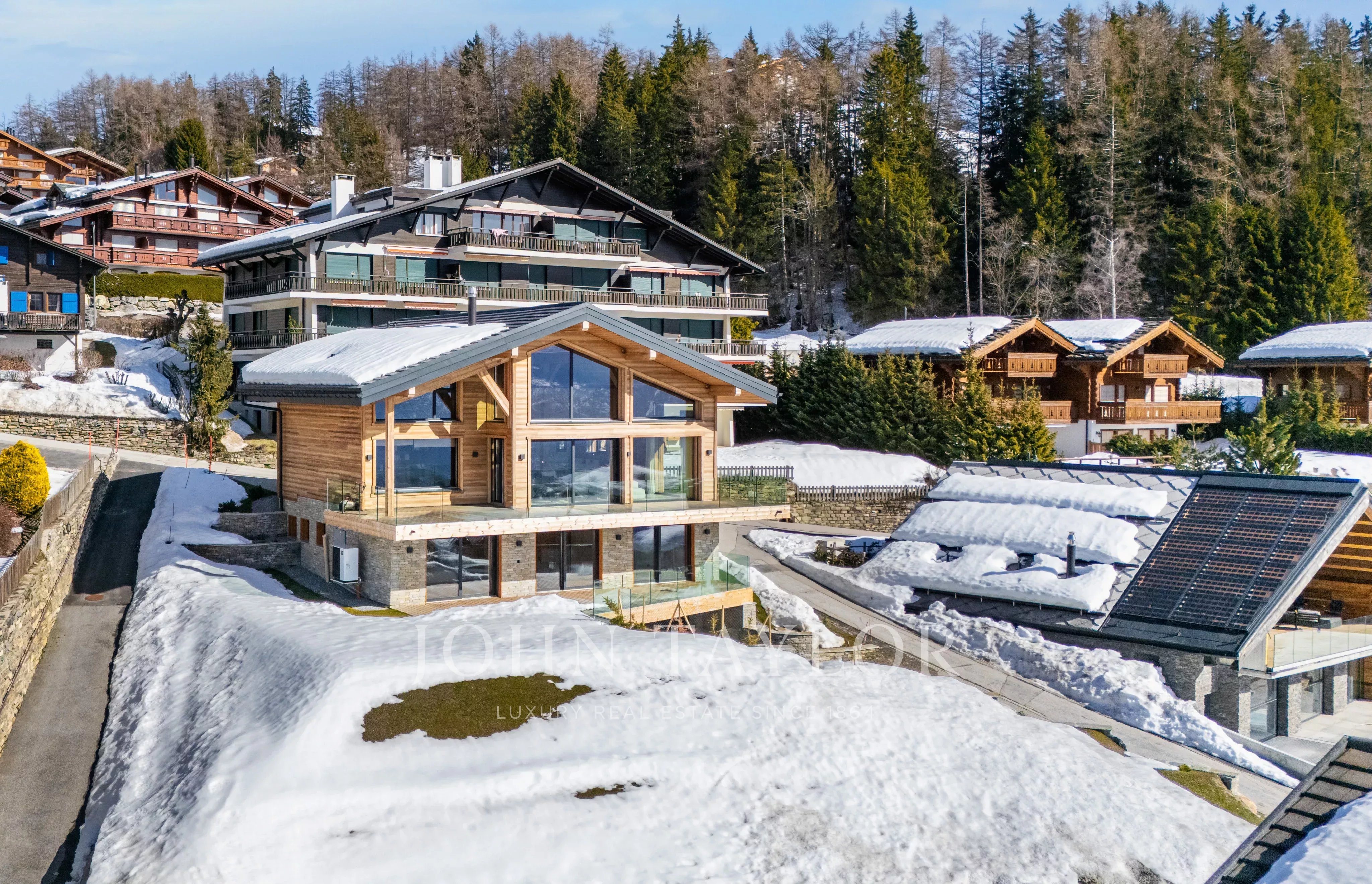Located in a privileged environment in Crans-Montana, this exceptional chalet, built in 2025, perfectly embodies the alliance between contemporary architecture, generous volumes and top-of-the-range amenities.