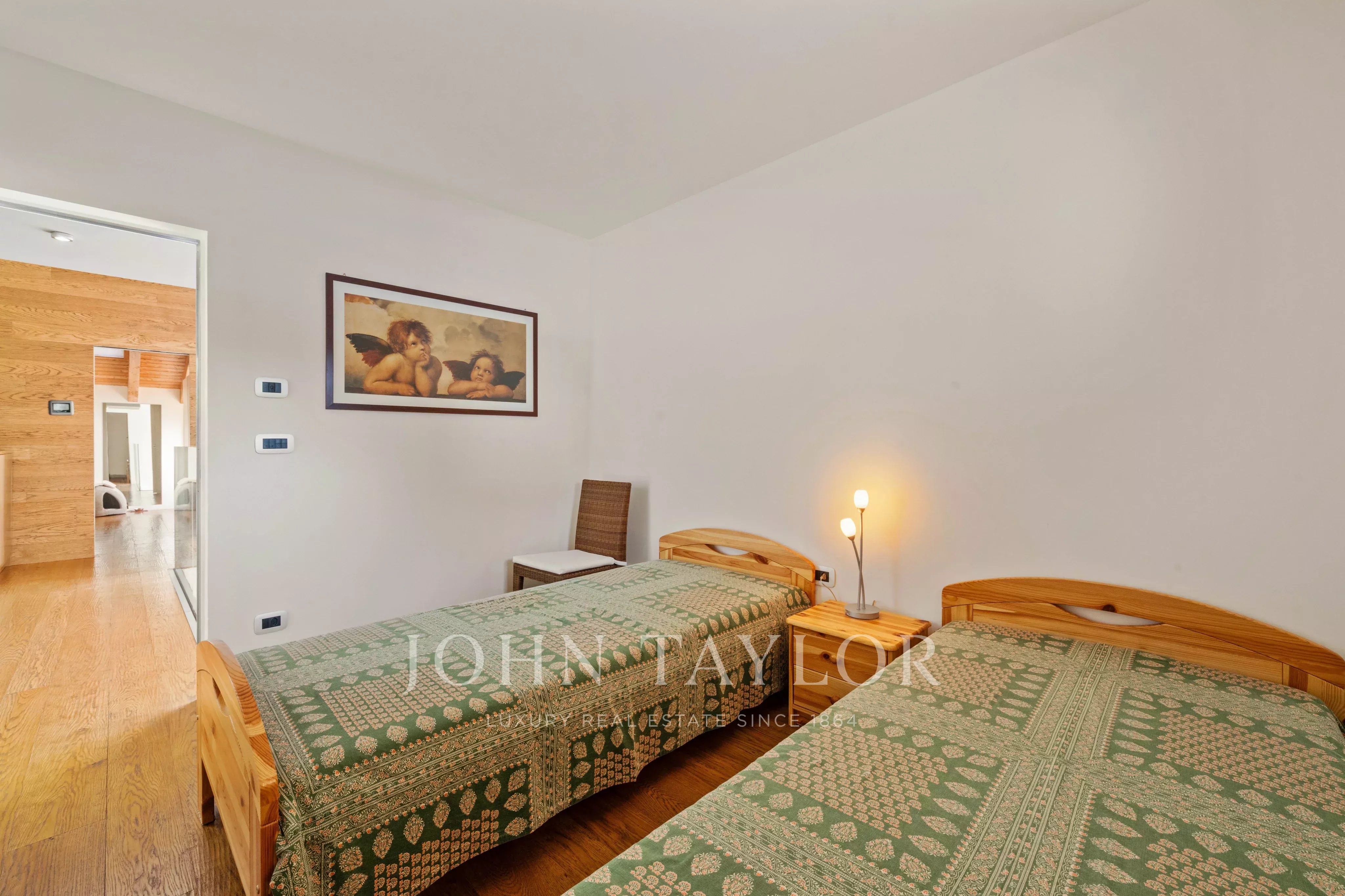 This bright chalet features 3 bedrooms and a study, combines modern comfort with a cosy atmosphere and generous volumes, and is served on all levels by an elevator.