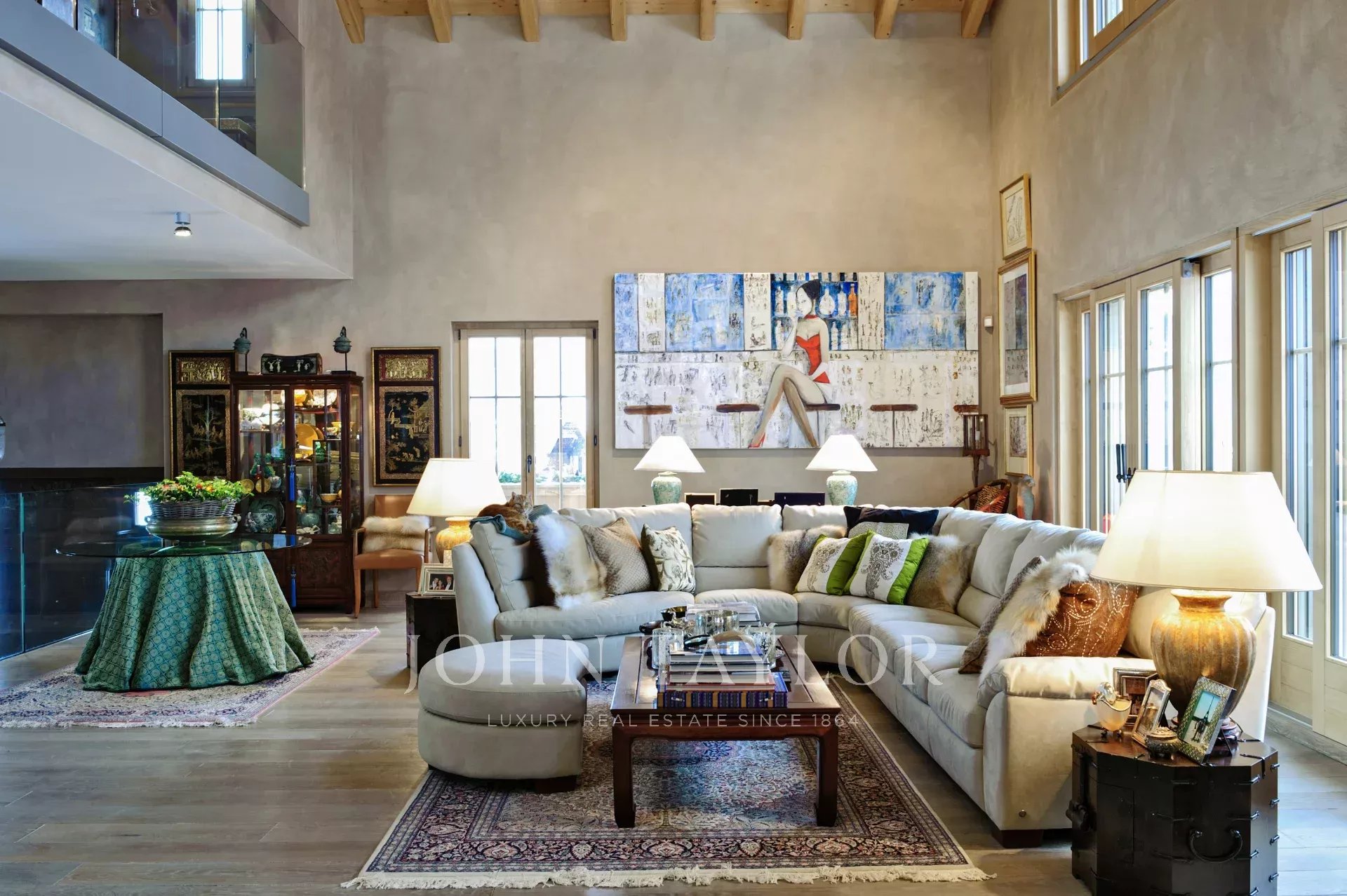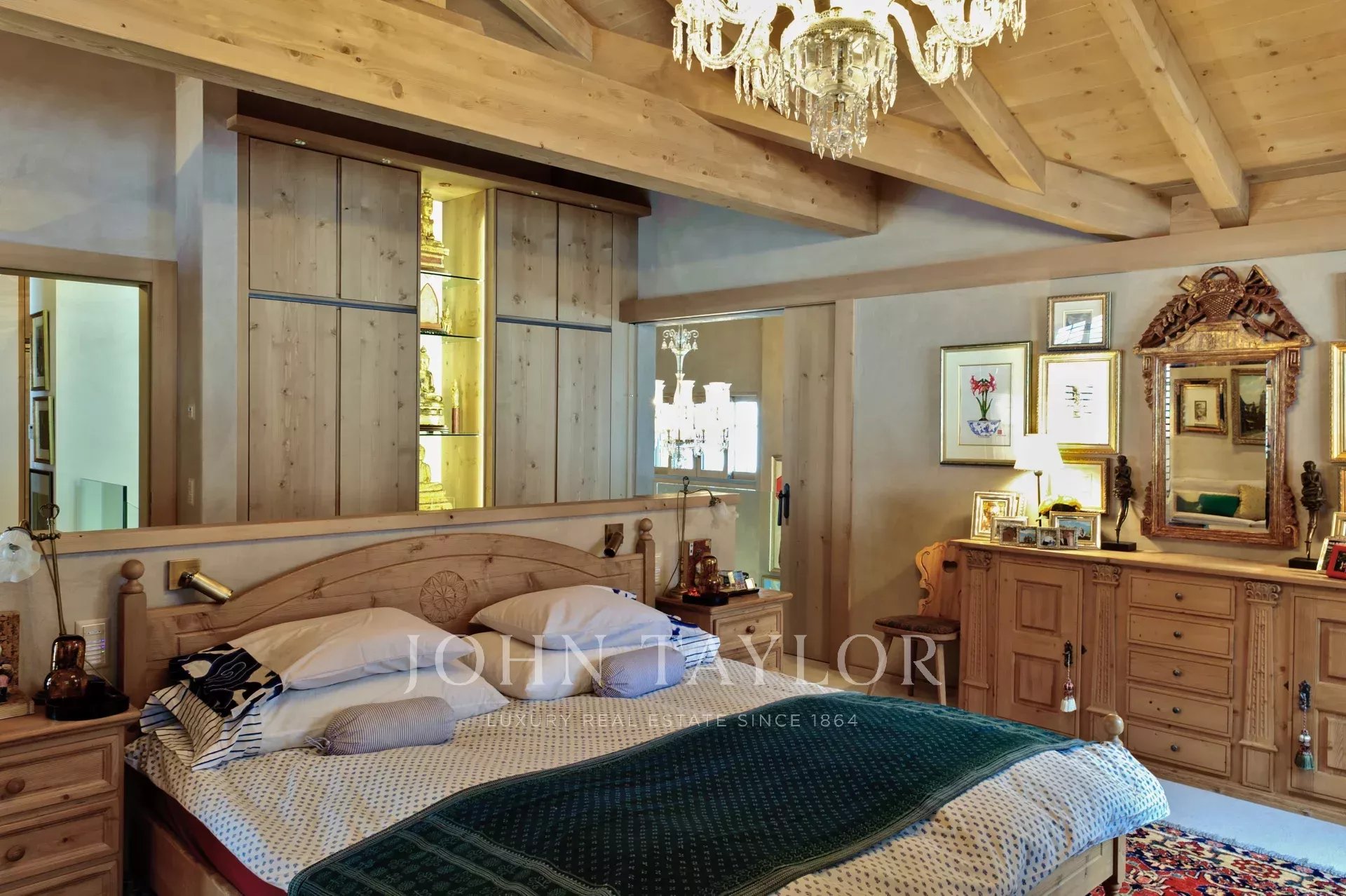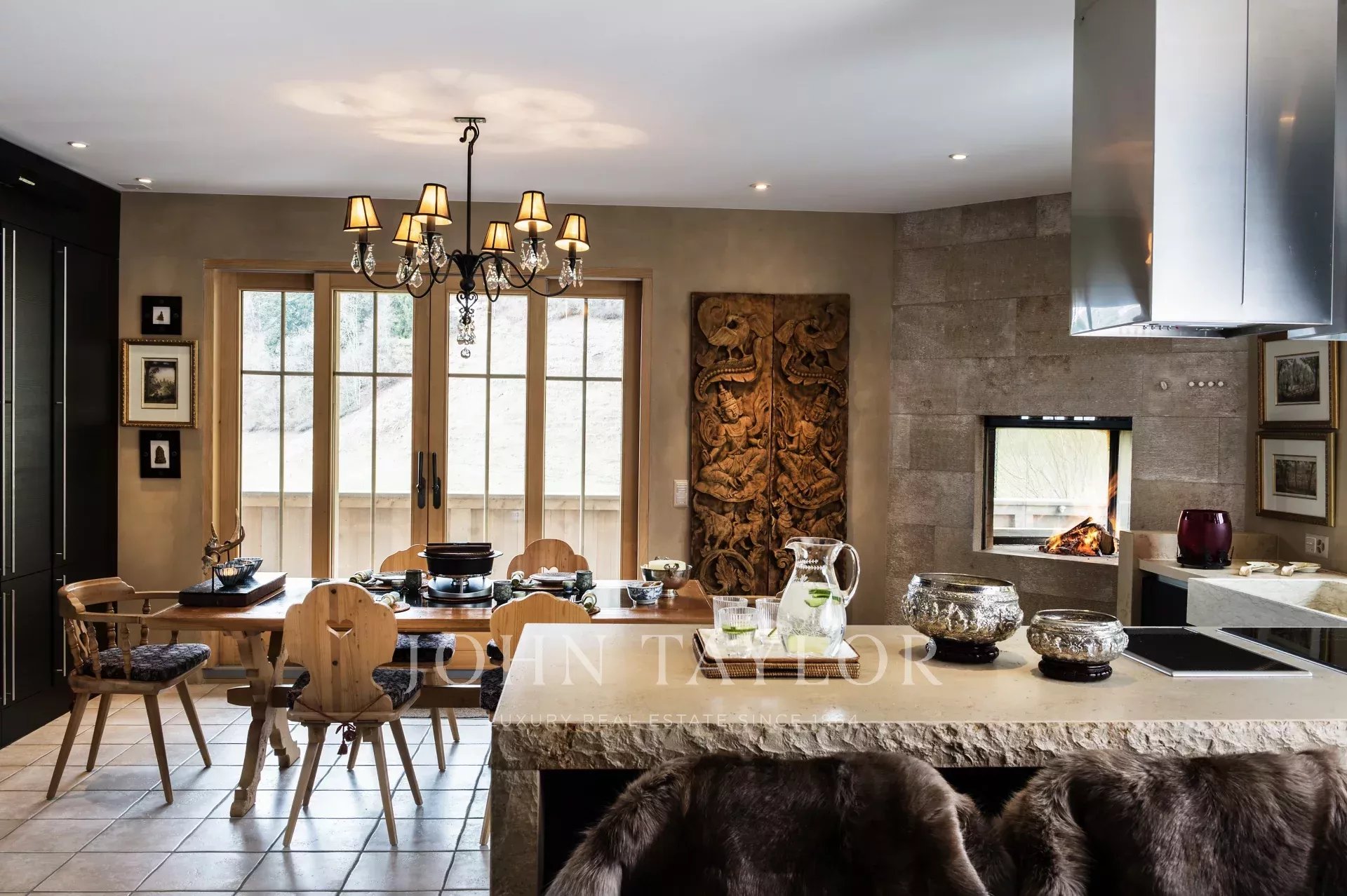 Materials: Marmorino walls (marble and lime layers). Oak floors and wood carpets. Swiss sapin wood for building and built-in cabinets, closets and shelves. Swiss Jura Mountain stone for kitchen tops, Italian white marble in bathrooms and stone tiles. Antique teak doors for entrance, kitchen and wine room.