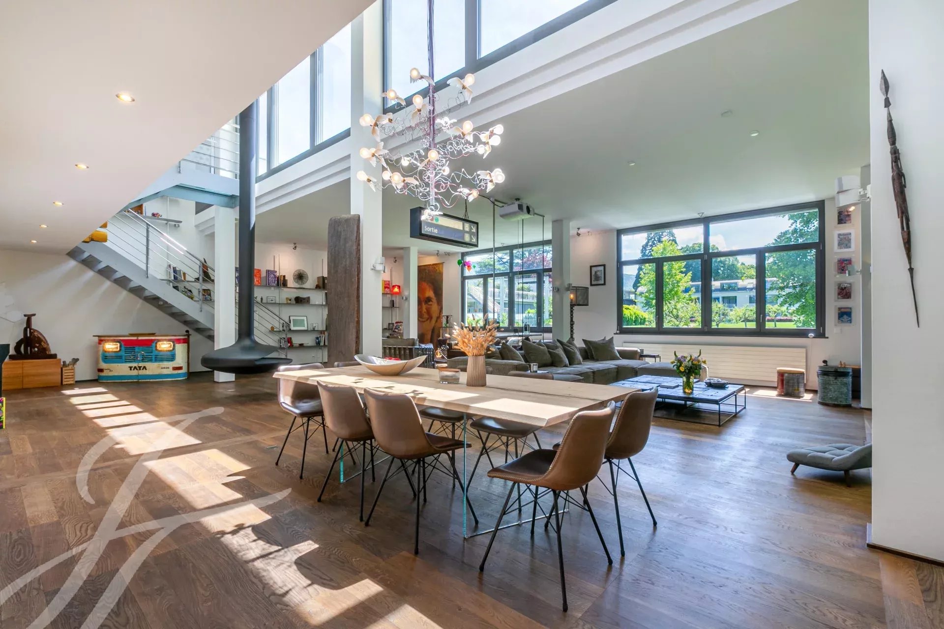 With no overlooked neighbours, this exceptional loft offers 338 m² of living space (PPE), plus a generous 85 m² terrace, for a total weighted floor surface area of 366 m².