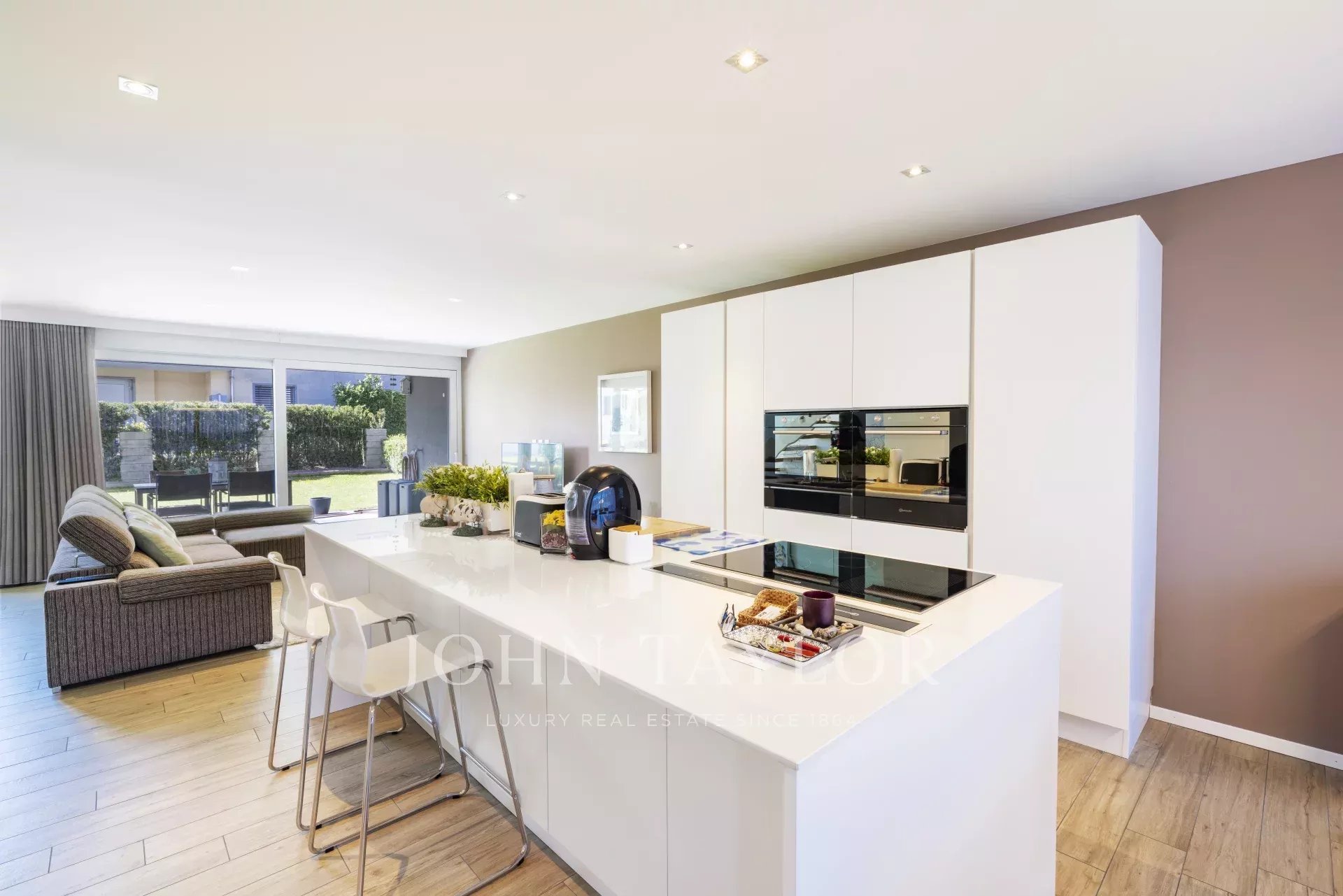 Separate entrance, dining room with access to a first terrace, well-appointed kitchen with central island, storeroom/saveroom, bright living room with access to a second terrace and the wonderful enclosed garden, guest WC.