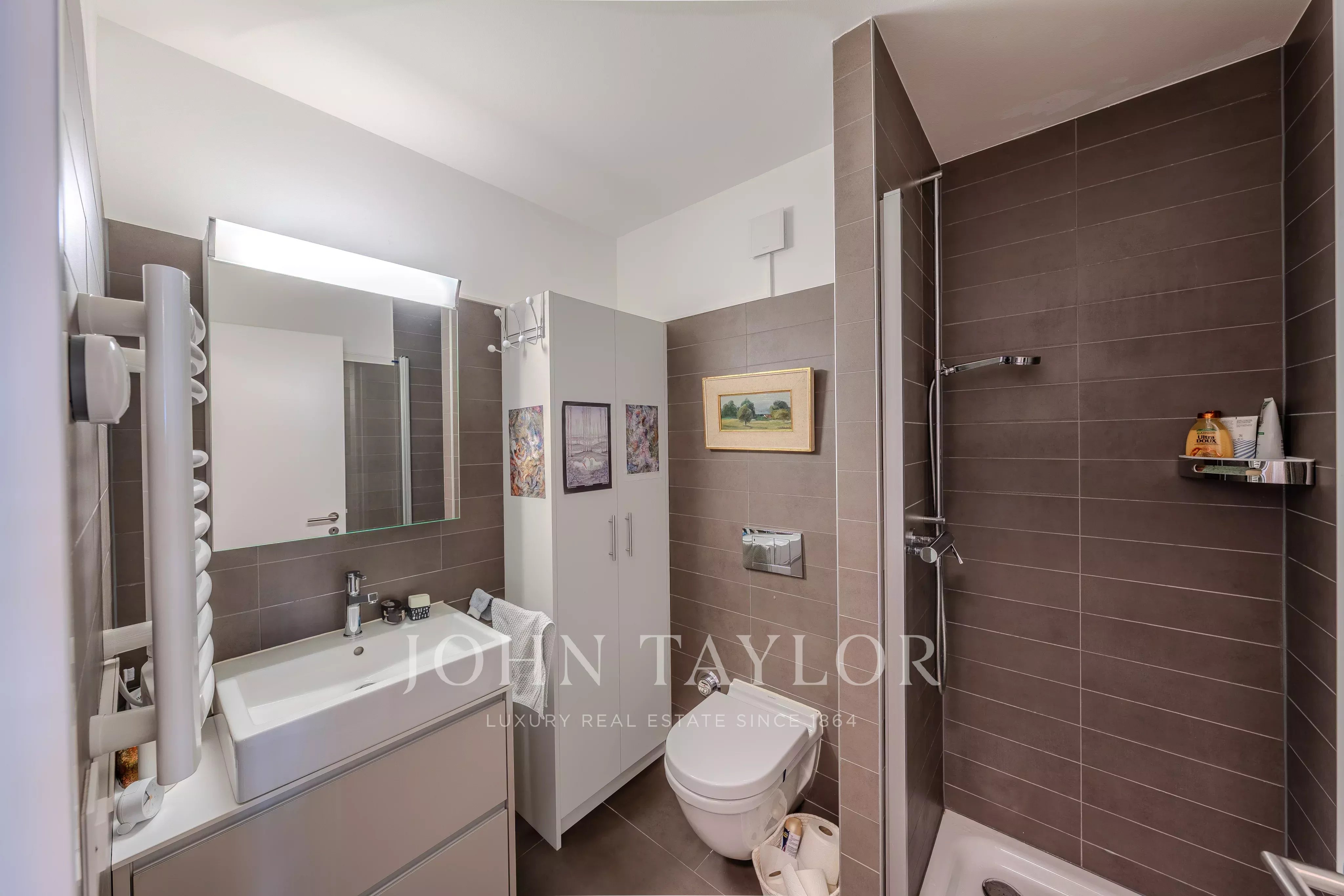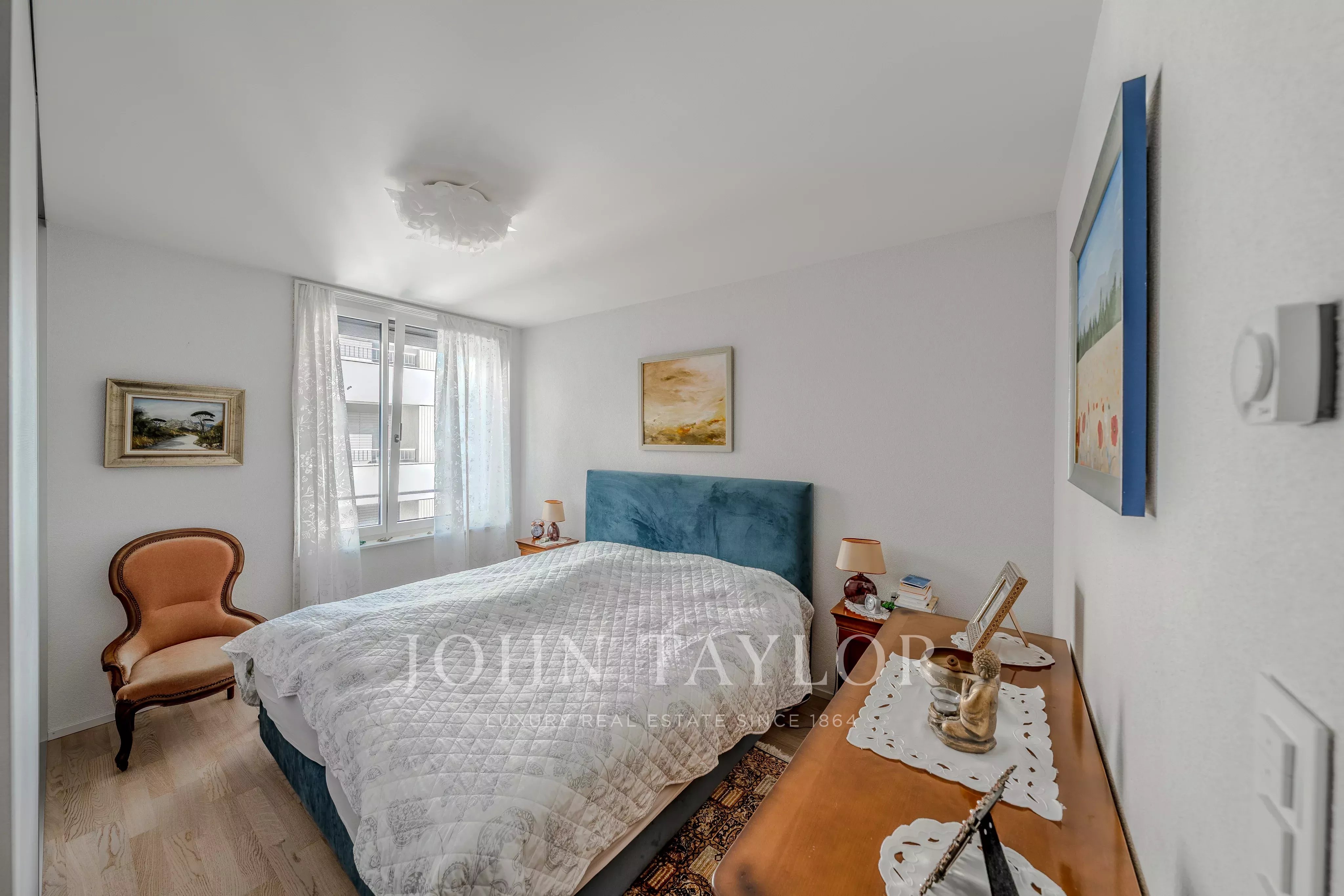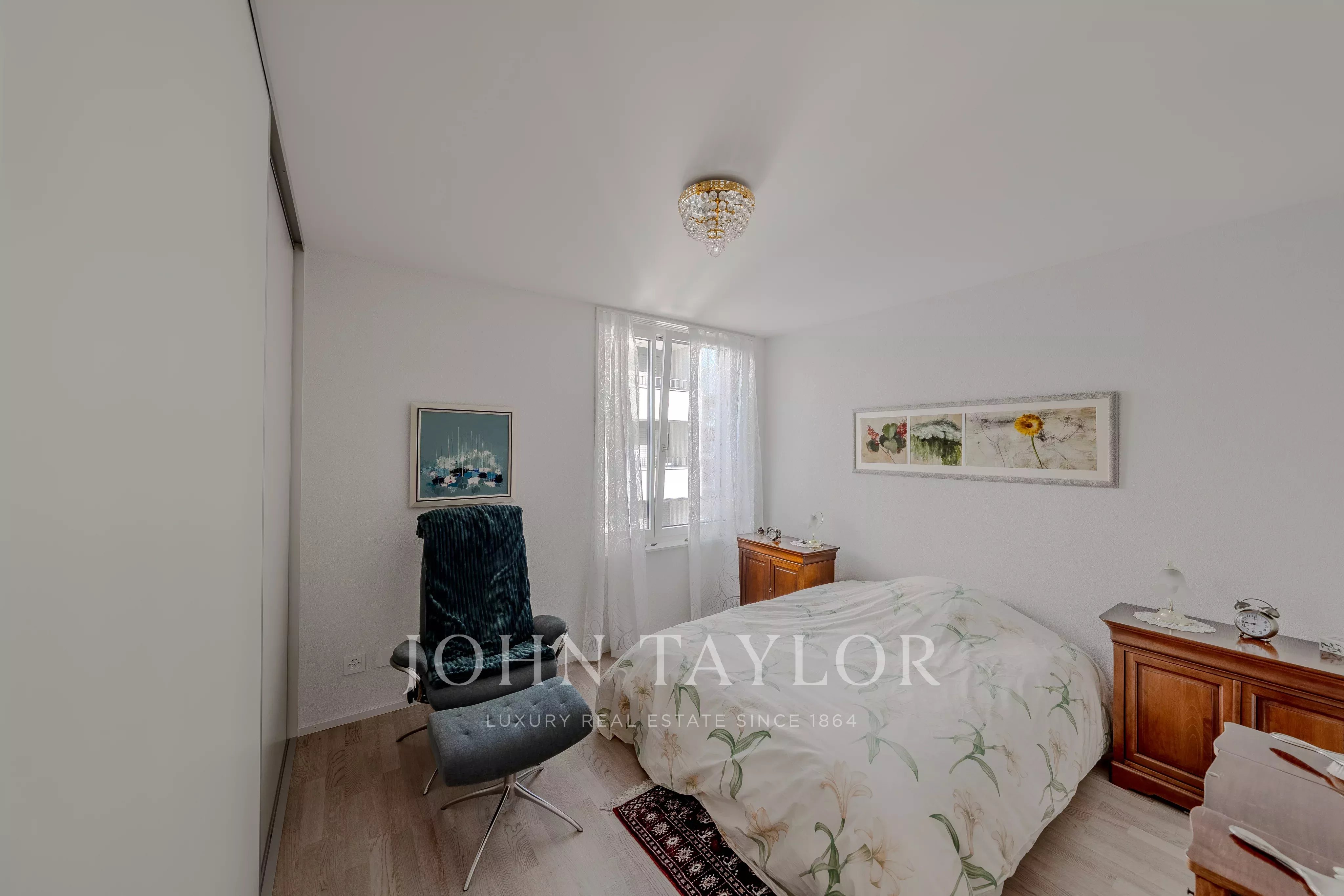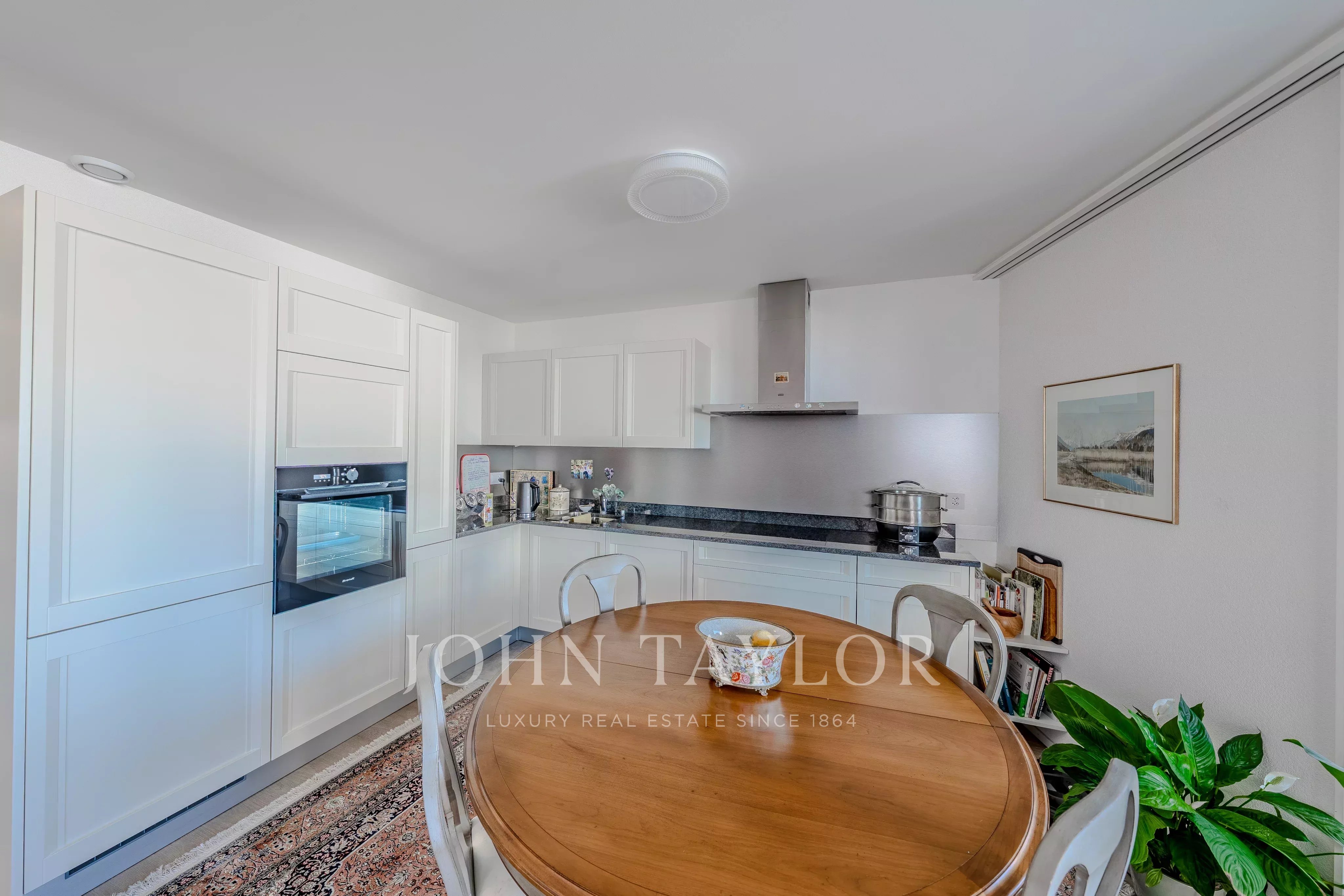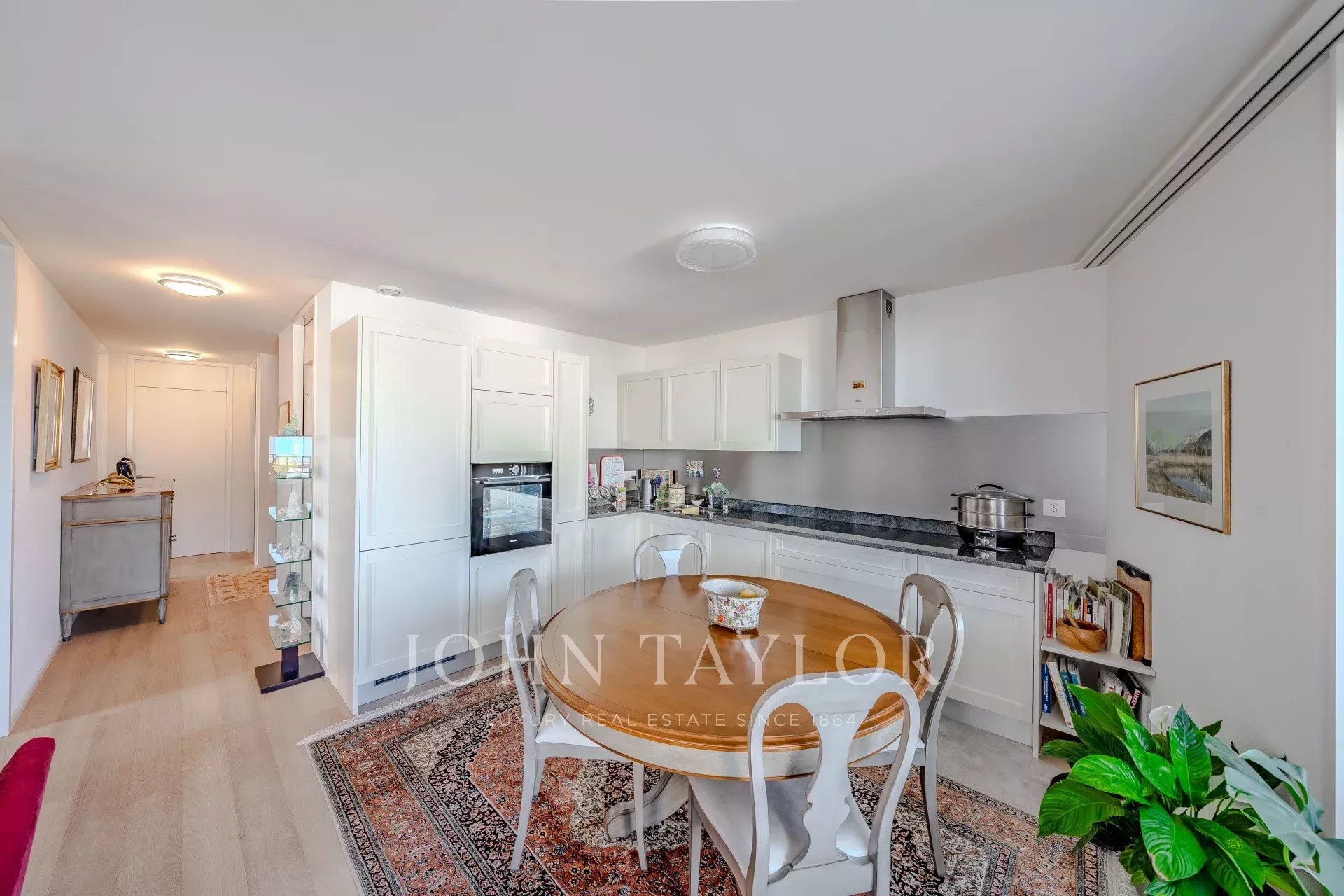 - The apartment comprises a spacious living room with dining area and open kitchen, opening onto a large 20 m² balcony with exceptional views of Lake Geneva and the Dents du Midi mountains.