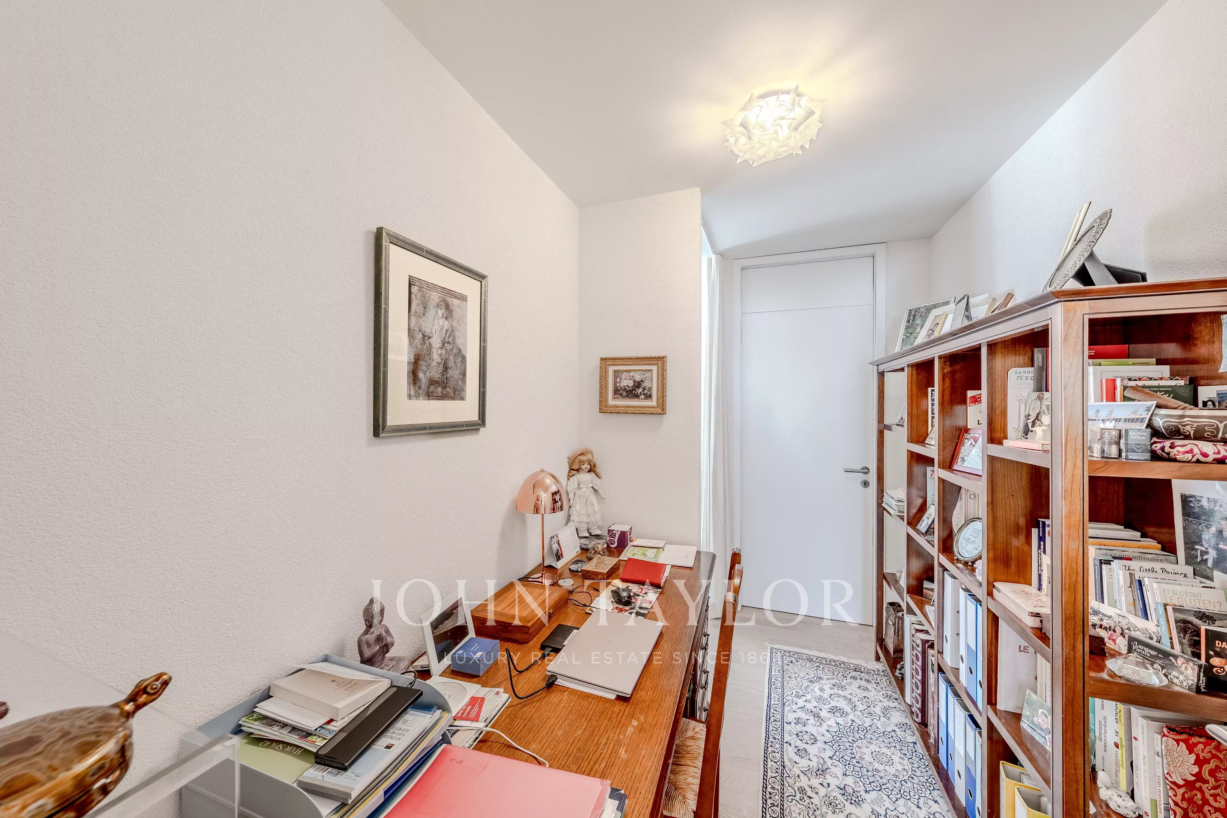 - Three bedrooms, including a master suite with a small office area and private bathroom.