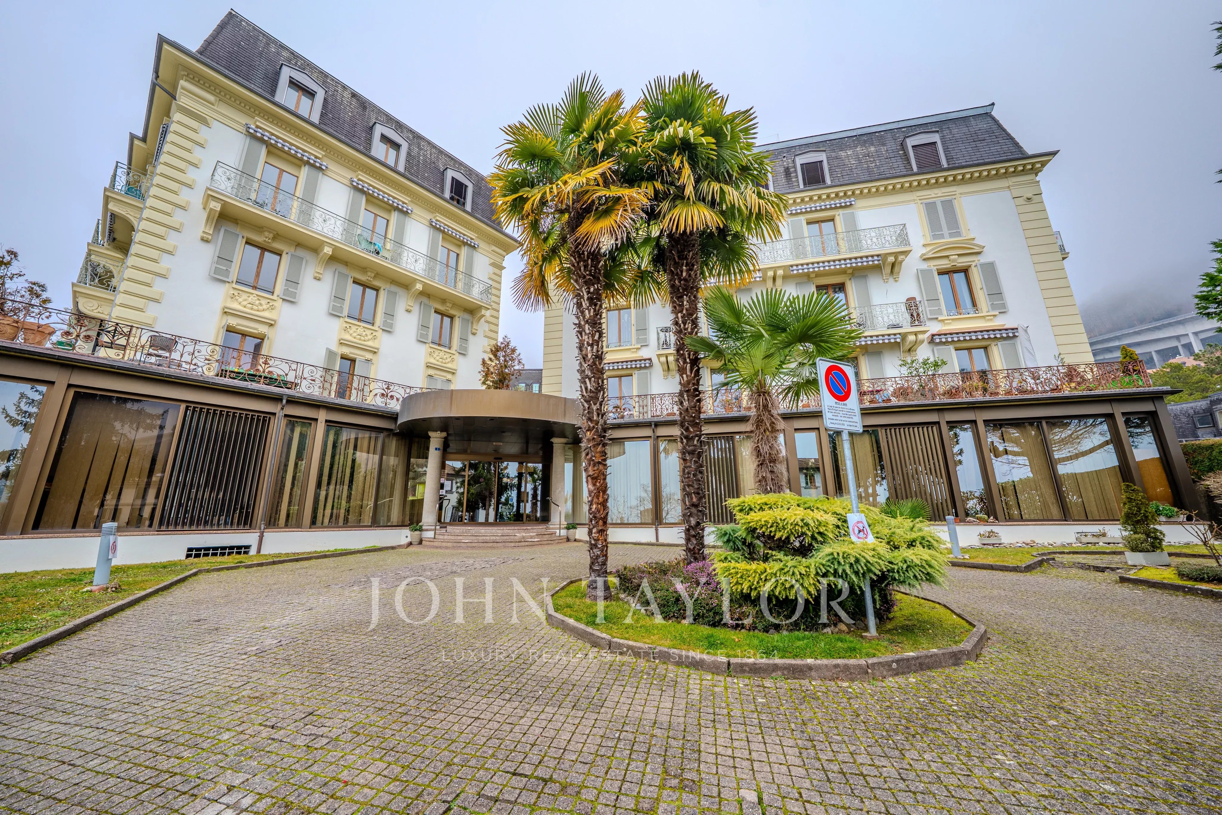 Within a beautiful Belle Époque style PPE residence, ideally located on the Riviera, this 3.5-room apartment of approx. 106 m² stands out for its elegance, generous volumes and remarkable ceiling height of around 3.5 meters. Large floor-to-ceiling windows provide exceptional natural light and open views over Lake Geneva and the surrounding mountains, creating a bright and peaceful living atmosphere.