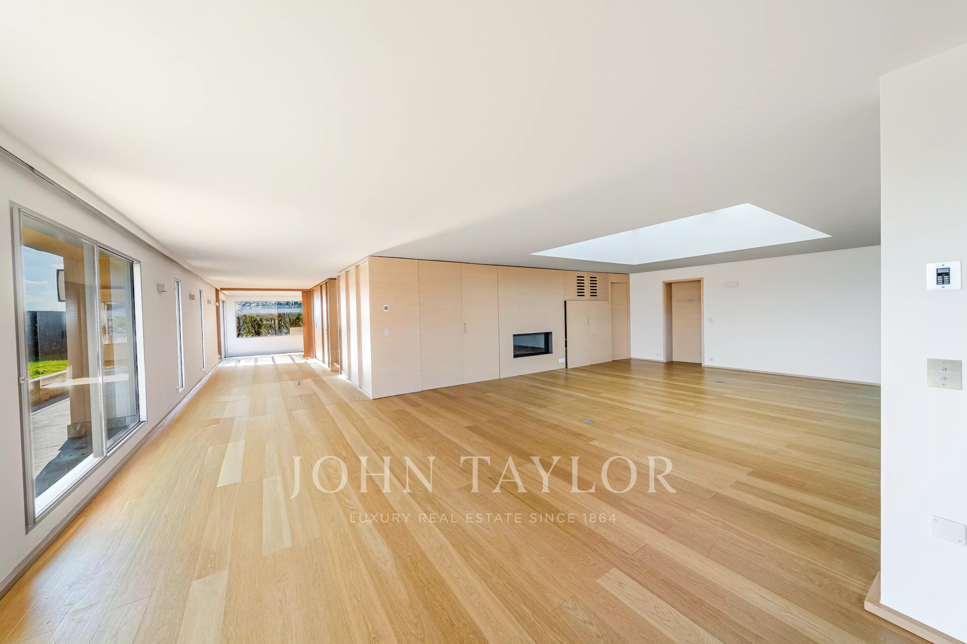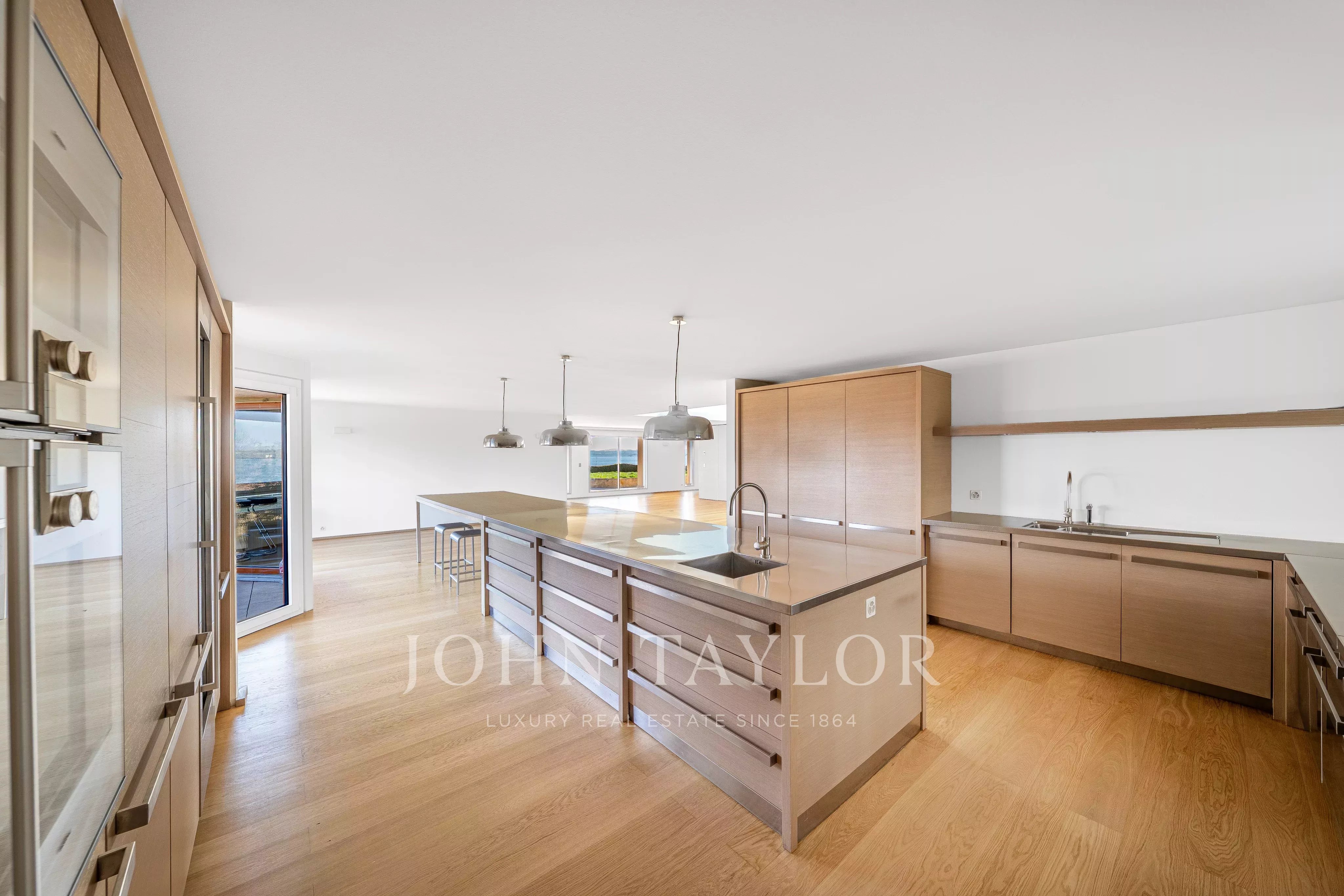 Bright reception rooms with an open kitchen, direct access to the terraces, and omnipresent lake views.