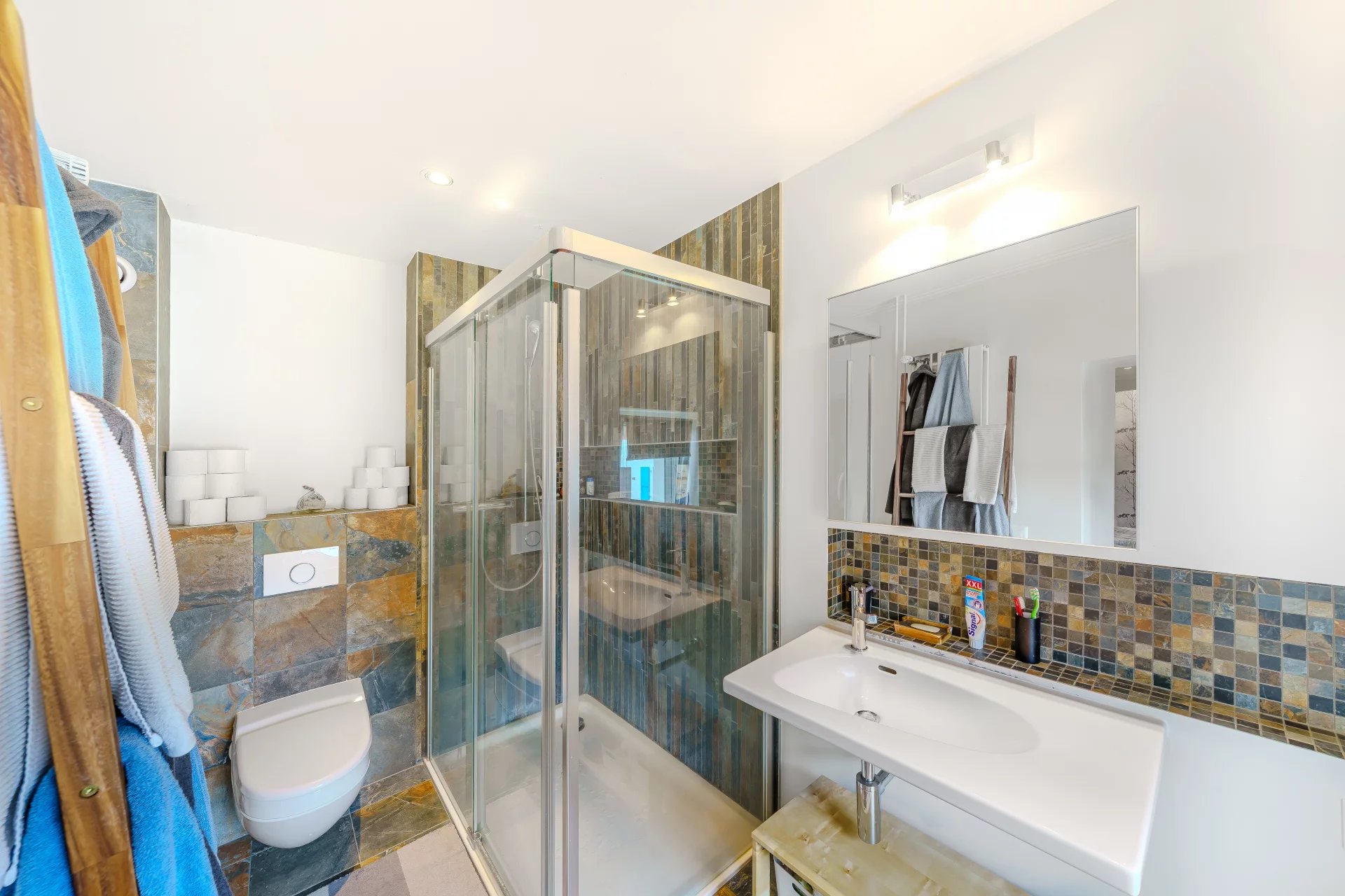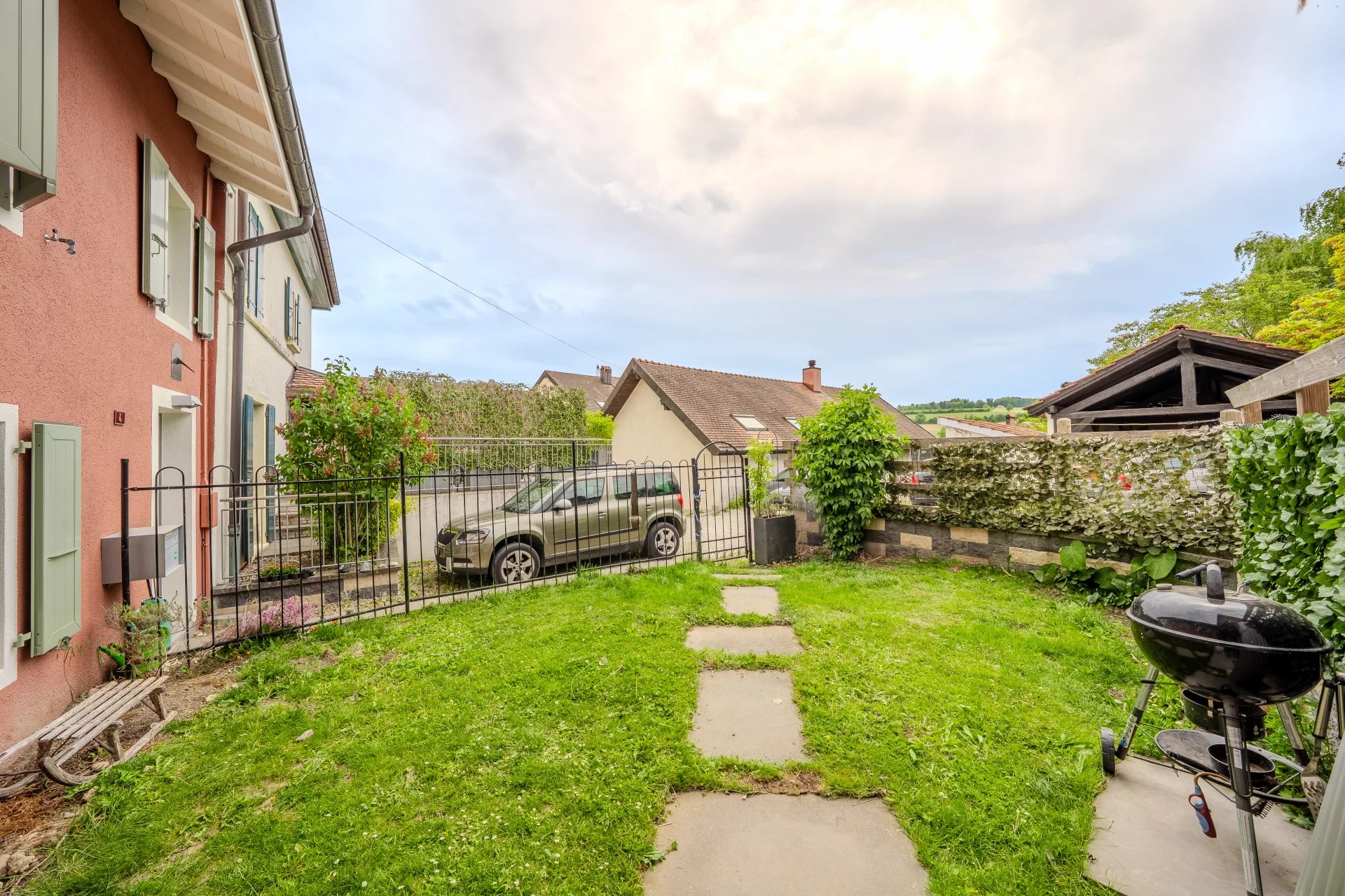Tastefully renovated, it offers a garden accessible from the ground floor and a balcony on the upper level.