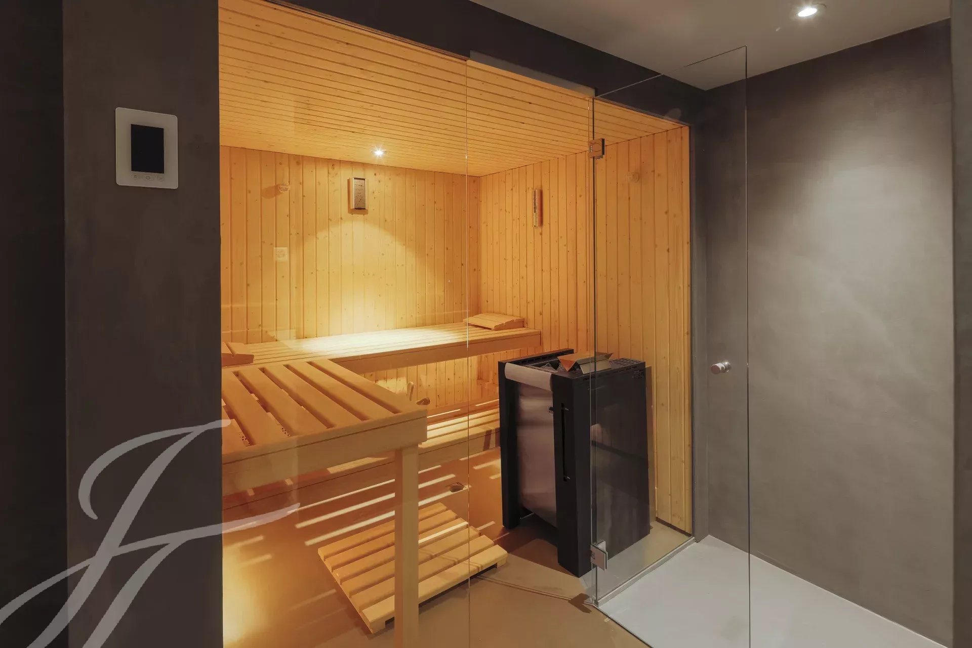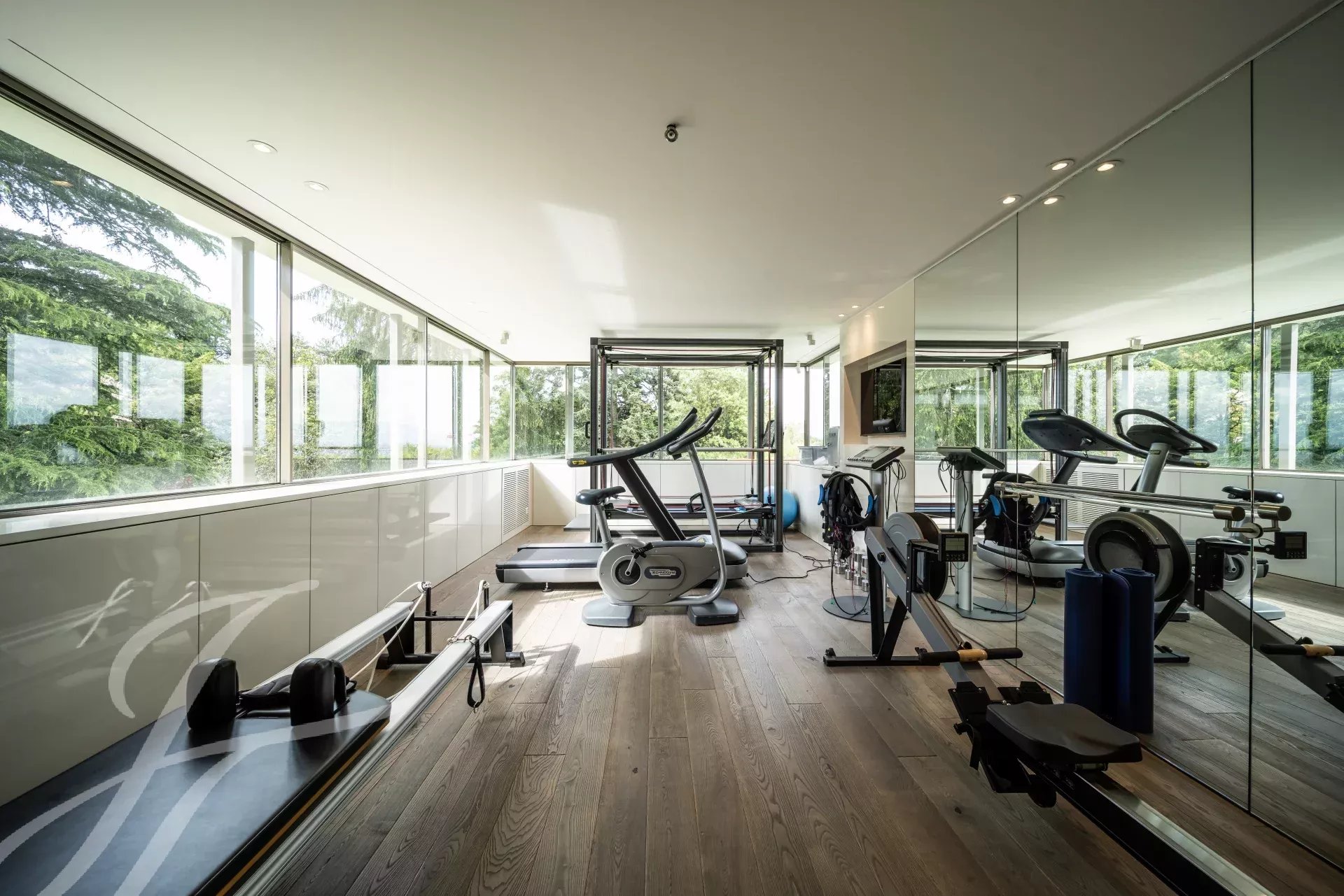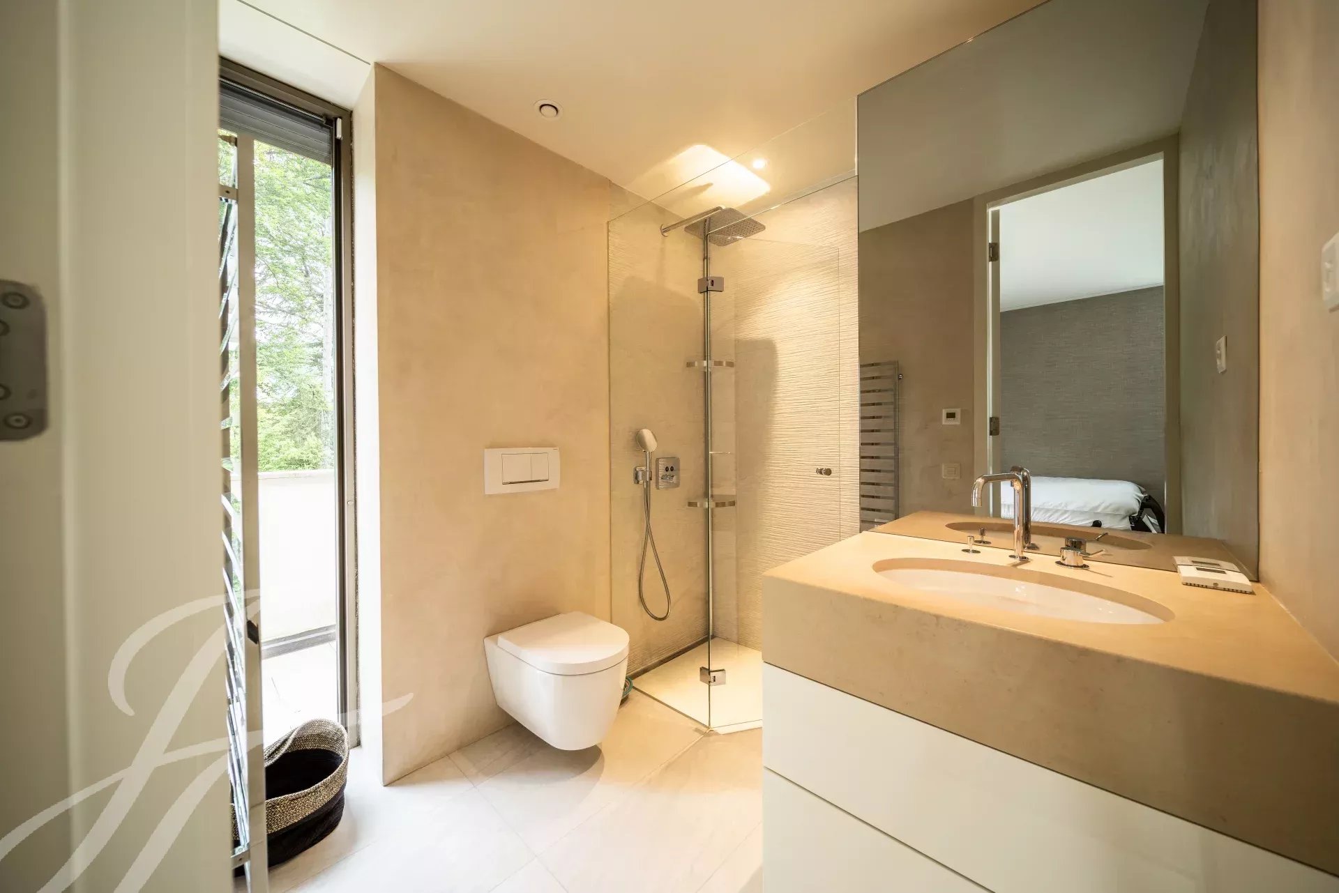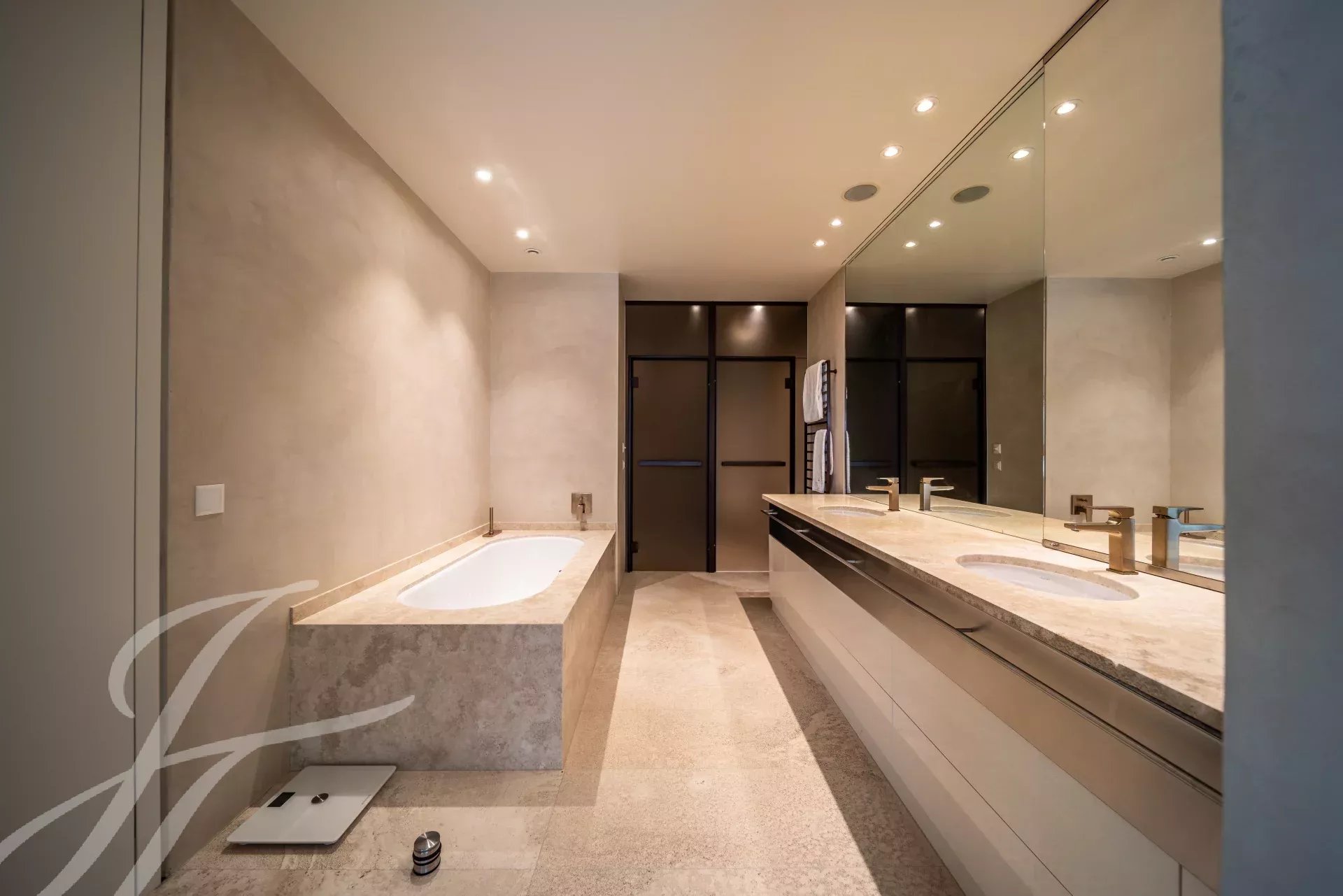 The master suite offers a double dressing room, a private lounge, a fitness room and a full bathroom, creating an exclusive and elegant retreat. Five additional en-suite bedrooms, all bright and welcoming, complete the night area.