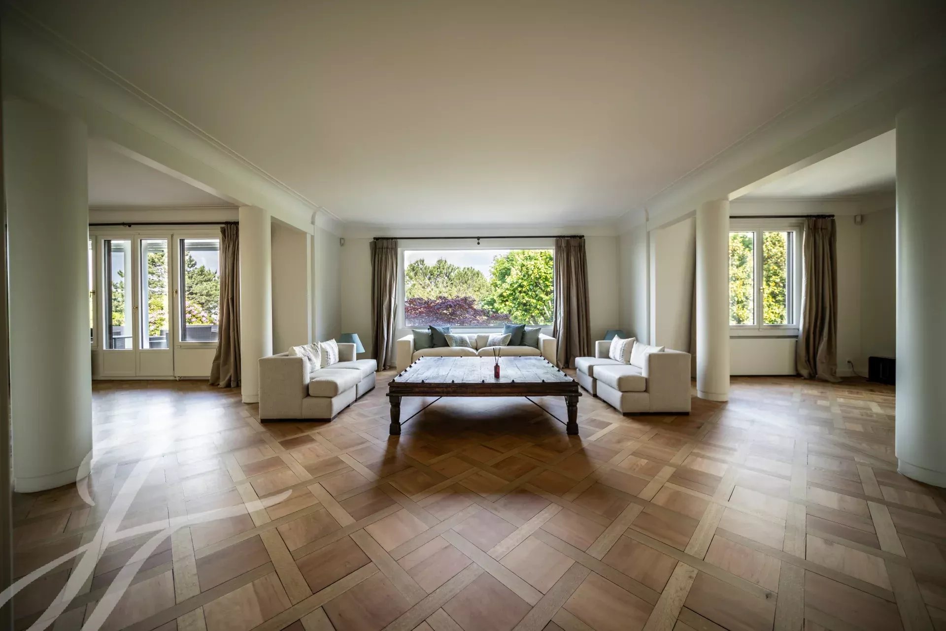 The choice of noble materials, such as elegant parquet flooring and fine, discreet ceiling moldings, lend the property a warm and sophisticated atmosphere.