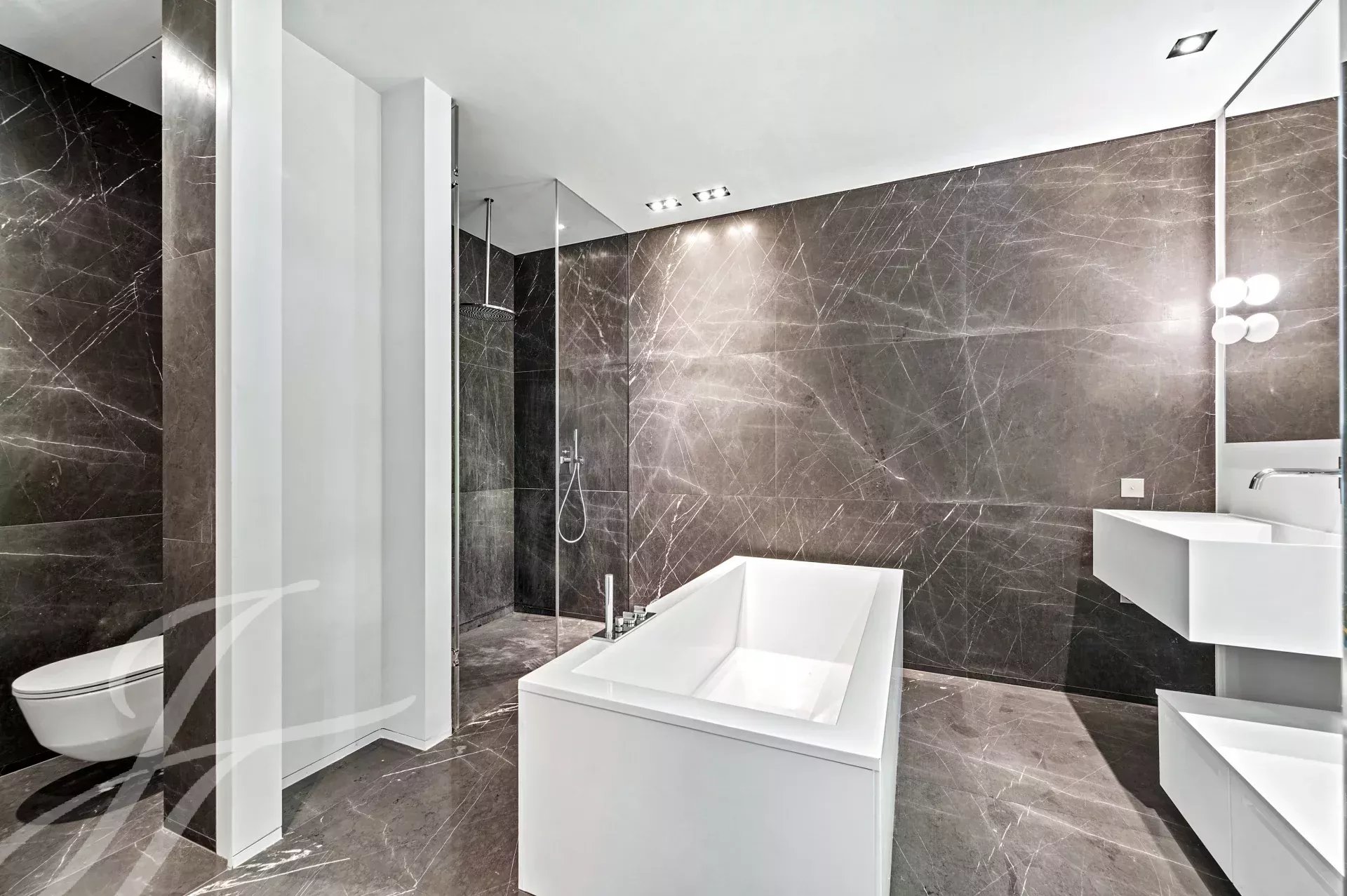 A majestic entrance hall welcomes visitors, with a superb staircase designed by Italian architect Pierre Lissoni. The vast living room offers a breathtaking view of the indoor swimming pool. The dining room, featuring a fireplace, and the large kitchen with top-of-the-range appliances and dining area complete this convivial living space. Two bedrooms, each with its own dressing room and en-suite bathroom, and a third bedroom with kitchenette and bathroom complete this level.