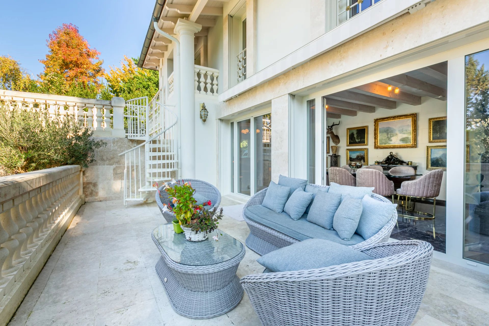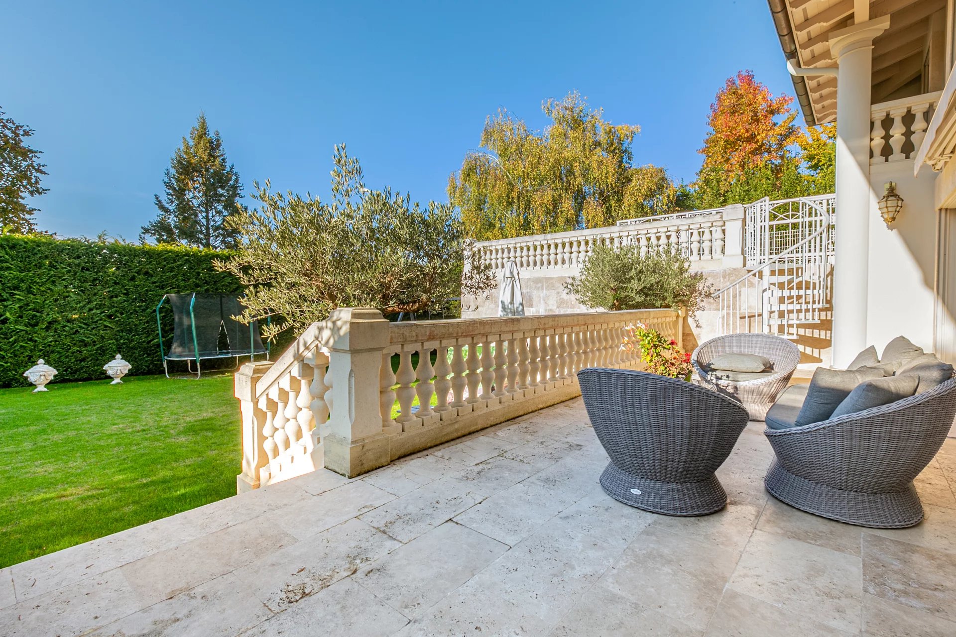 The exterior is composed of several terraces, one of which has a view of the lake, a nicely planted garden entirely enclosed, an automated double garage for 2 vehicles and several outdoor parking spaces.