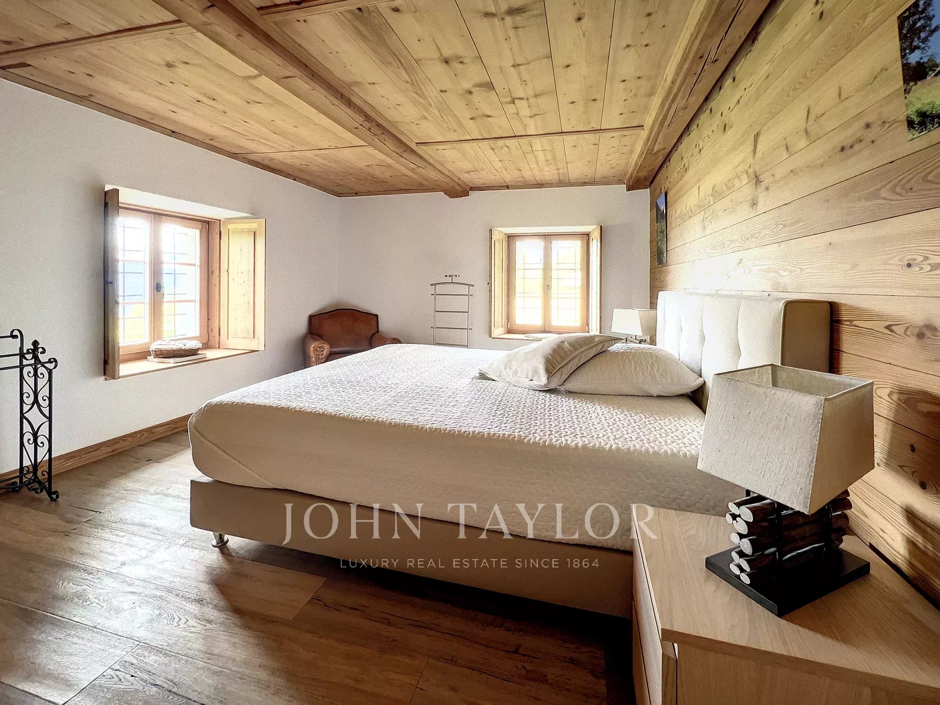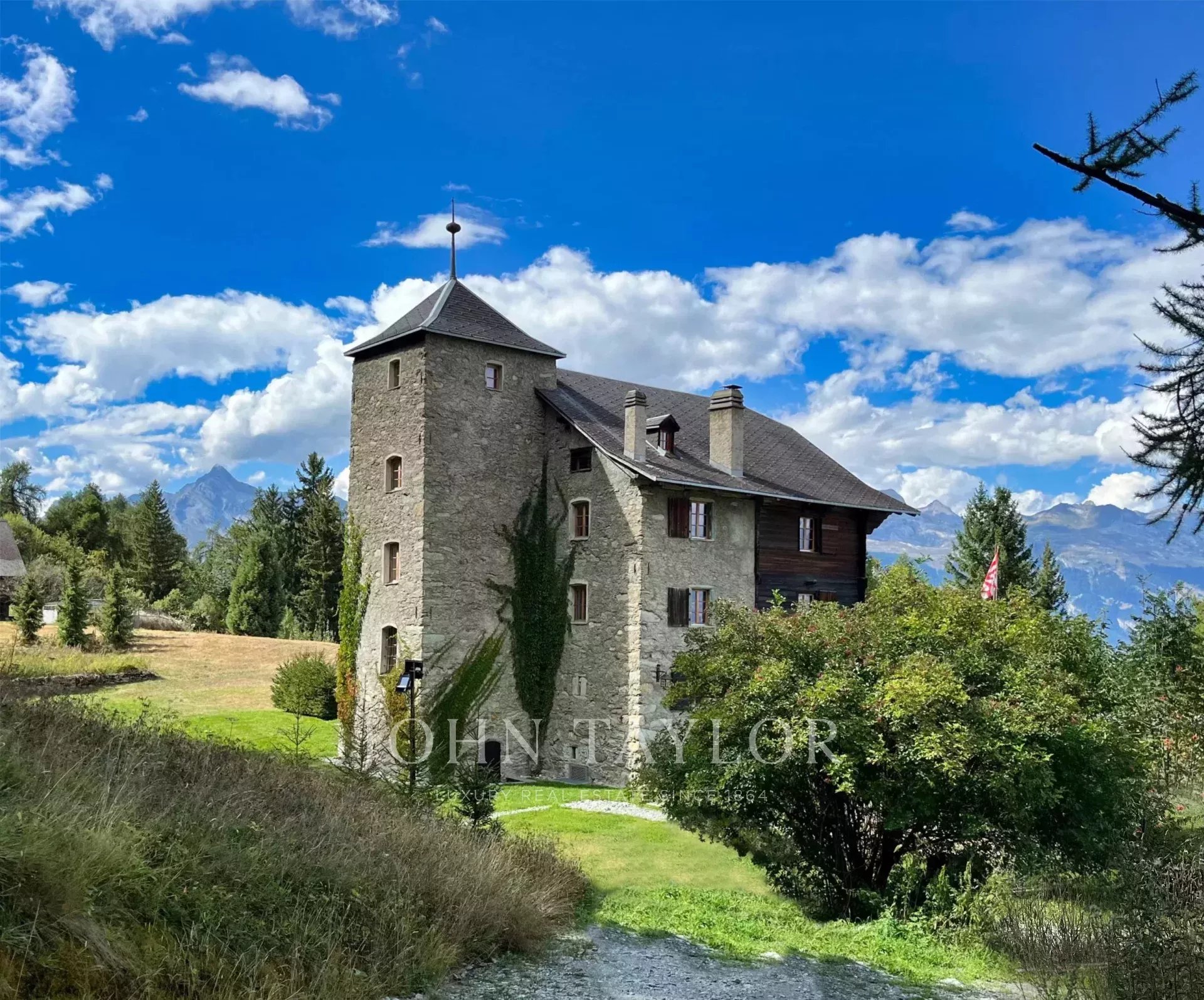 This majestic, historic chalet, built in 1827 and measuring 419 m2 over 4 floors, with its imposing square tower, offers superb views of the mountains and countryside. The forest hides the view of the urbanization in the valley, making it a place out of time.