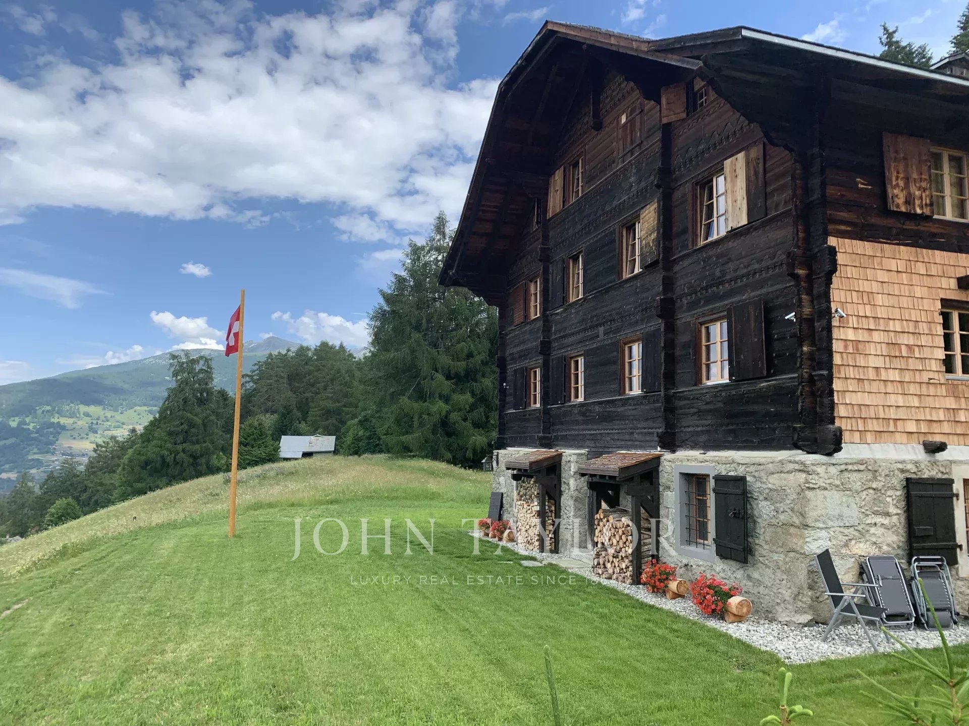 The Domaine de la Barlettaz, at an altitude of 1400m, covers more than 3.5 hectares and includes forests, meadows, a spring with a small pond and the Vex bisse on the edge of the property.