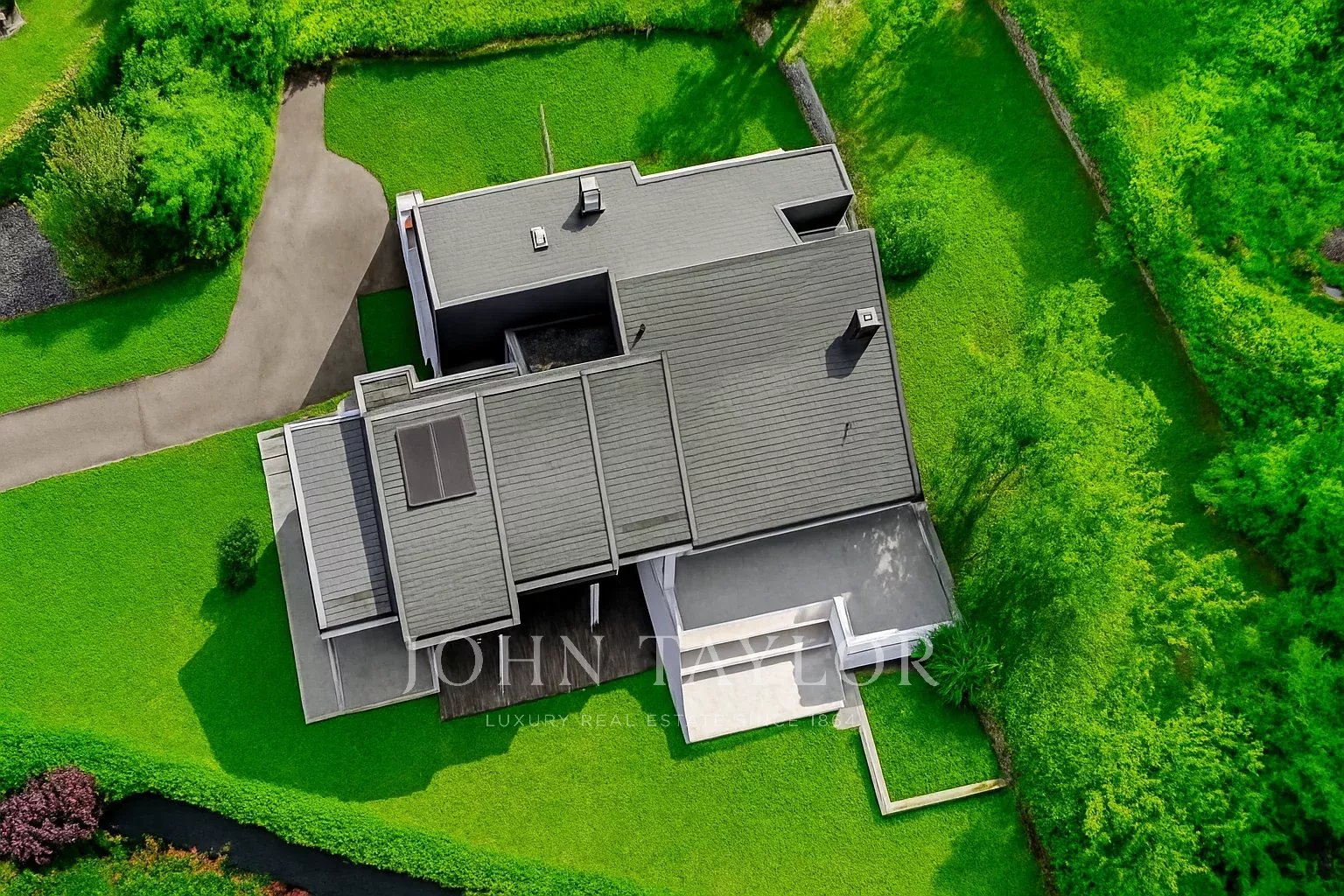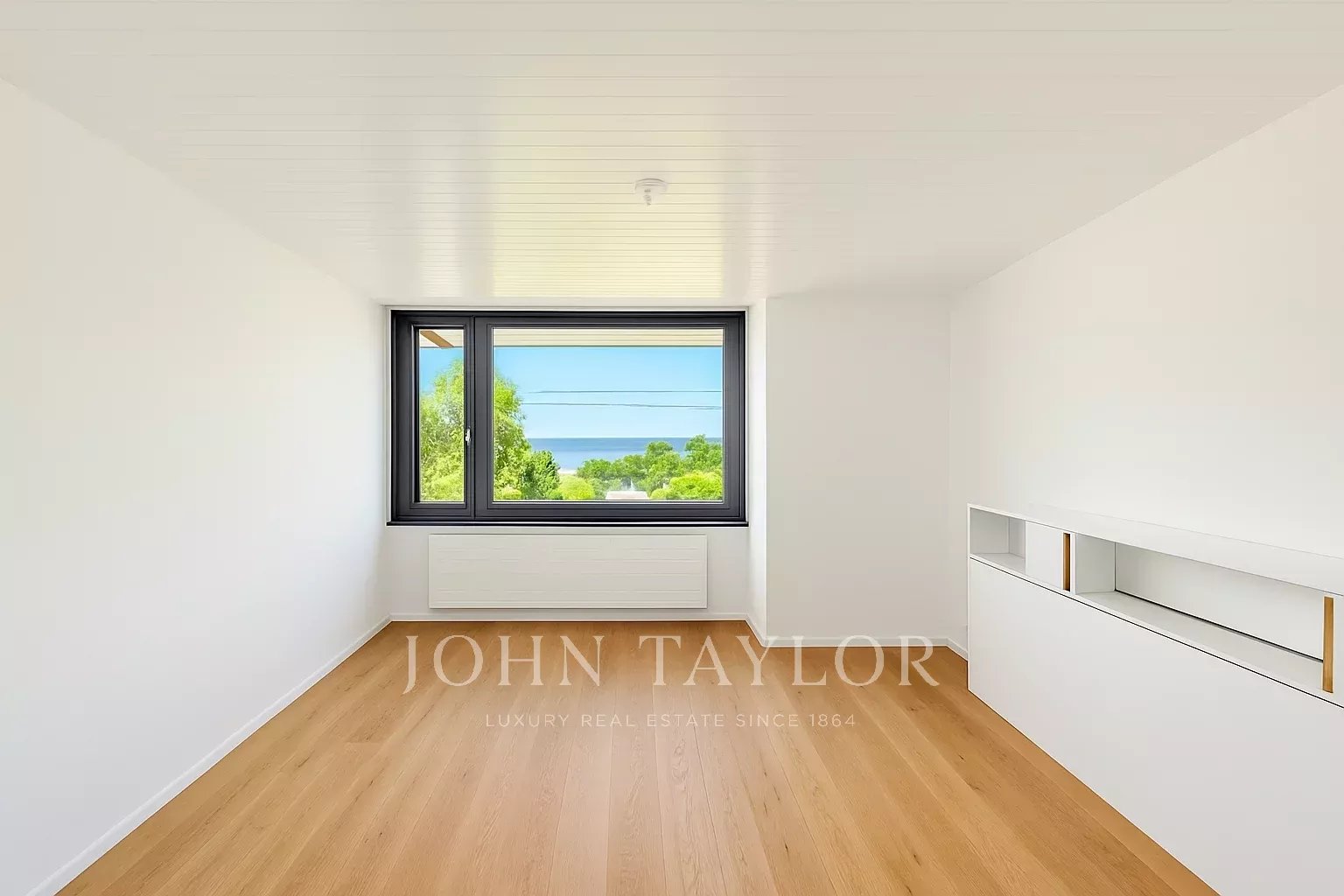 The architecture combines classic charm with modern touches, creating a style that is both refined and understated. Large windows flood the interior with natural light, enhancing the feeling of space and openness to the outdoors.